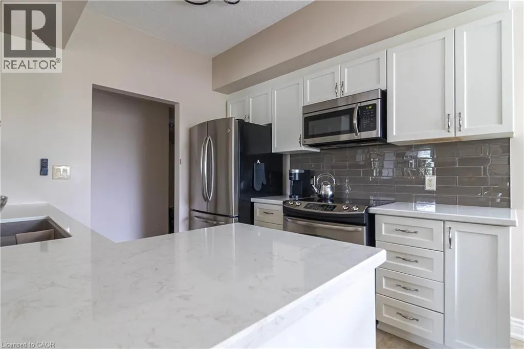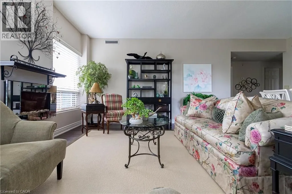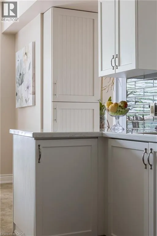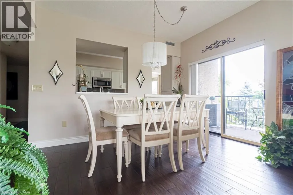 Upper Middle- Between Headon Rd and Walkers Ln Welcome to the sought-after Chelsea Building in Burlingtonâs desirable Headon Forest community. This immaculately maintained, sun-filled 2-bedroom, 2-bath corner unit boasts an impressive 1,317 sq. ft. of living space with a bright southwest exposure. Step inside to discover an inviting, carpet-free open-concept design- illuminated by a wealth of large windows, 9-foot ceilings, quality laminate flooring, and neutral paint throughout. The beautifully updated kitchen features quartz countertops, glass subway tile backsplash, stainless steel appliances, an under-mount sink, crisp white cabinetry, and a pantry. The breakfast nook with an oversized window comfortably seats four. A convenient pass-through with a quartz ledge opens into the dining room, which leads to a curved balcony providing private vistas of mature blue spruce and maple trees. The spacious living room offers 3 large windows and an electric fireplace, creating a warm and airy space. Its primary bedroom retreat includes a 4-piece ensuite and walk-in closet, while its second bedroom is ideal for guests, a home office, or den, complemented by a 3-piece bathroom. This home also features recent mechanical upgrades: AC (2024), dishwasher (2023), and furnace (2022). Enjoy the convenience of 1 underground parking space and a locker on the same level as the unit. The well-managed building has recently refreshed its foyer and hallways, and offers fantastic amenities: a party/meeting room, exercise room, car wash, and ample visitor parking. All this in an unbeatable location- just steps to plazas, schools, and parks, close to Millcroft Golf Course, and with easy highway access. This unit is a true treasure that promises an extraordinary living experience! (id:27476)
