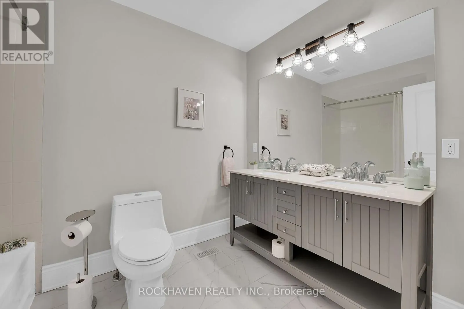 Cross Streets: New St & Longmoor. ** Directions: New St to Longmoor Dr. Beautifully updated 3 bedroom home backing onto Iroquois Park in South Burlington. Welcome to 2-4201 Longmoor Drive, a modern and spacious home nestled in a family friendly community within walking distance to schools, parks, and trails. The stylish entryway accent wall sets the tone for the modern design and thoughtful touches throughout the home. The bright open concept layout features an updated kitchen with a large island, subway tile backsplash, stainless steel appliances, and timeless cabinetry with crown moulding. The spacious living and dining area have a walkout to the fully fenced backyard with no backyard neighbours! A powder room completes the main level. Upstairs, you'll discover the oversized primary bedroom boasting a walk-in closet outfitted with a closet system and a modern 3-piece ensuite. Two additional generously sized bedrooms and an updated main bath with a double vanity complete the upper level. The finished basement adds plenty of additional living space and storage options. Further updates include fences (2021), downspouts and eavestroughs (2023), front door (2023), roof (2024), and air conditioner (2024). Located close to schools, shopping, restaurants, and transit and within close proximity to the 403 and the Appleby Go Station this home has everything you need! (id:27476)