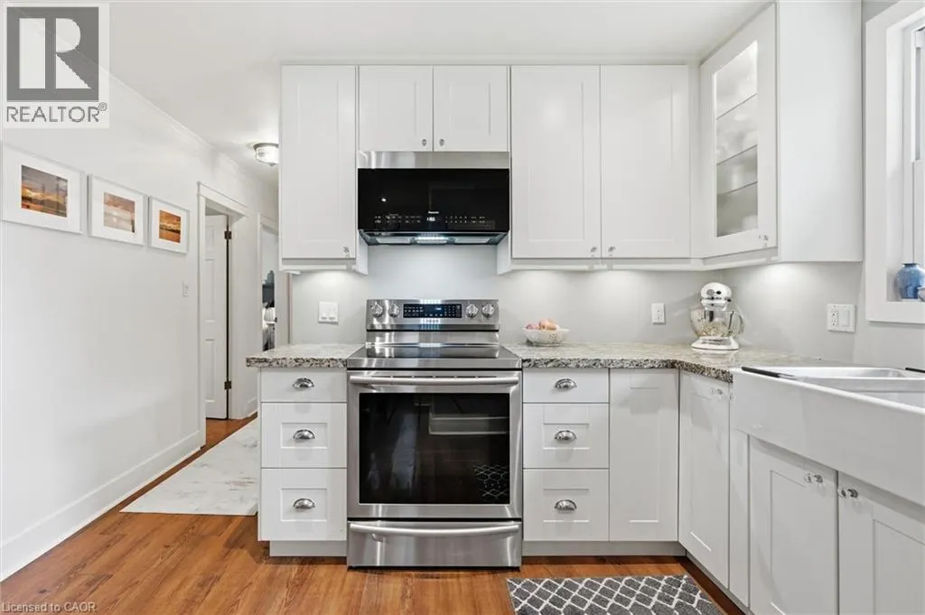 Appleby Line South to New Street, New Street to Henderson Road Well maintained 3+2-bed bungalow with large workshop on huge lot in South Burlingtonâs Shoreacres area. Mature, 200 feet deep lot on a quiet street. Double garage with 220-amp power. This home shows pride of ownership with 5 beds and 2 full baths. The living room features a newer bay window, custom kitchen with granite counters, ss appliances, pot drawers, and glass window cabinets. 3 bedrooms and updated primary bath with stylish tub and quartz counter complete the main level. Well-designed basement has a separate entrance, sound-dampening ceiling insulation, pot lights, pocket doors, and a cozy rec-room area with b/I speakers, fireplace, b/i cabinets and entertainment centre. Beautifully finished laundry room includes more built-ins and a large countertop for folding. Finally, 2 additional bedrooms, a full bath and ample storage complete the basement. Backyard features an interlock patio, large, covered seating area, BBQ, bar fridge and plug & play hot tub for year-round leisure. Deep lot includes a large grassy area surrounded by tall cedars and landscaped with established hydrangeas and hostas and irrigated with a watering system. Go a bit further and enter the 32' x 25' block construction garage/shop with separate workshop area and loft storage. Hidden behind the shop are two car tents, in case there wasn't enough space already! The long driveway is lined by a newer concrete walk with tasteful aggregate finish, and the front porch features sensor-equipped stair lights. (id:27476)