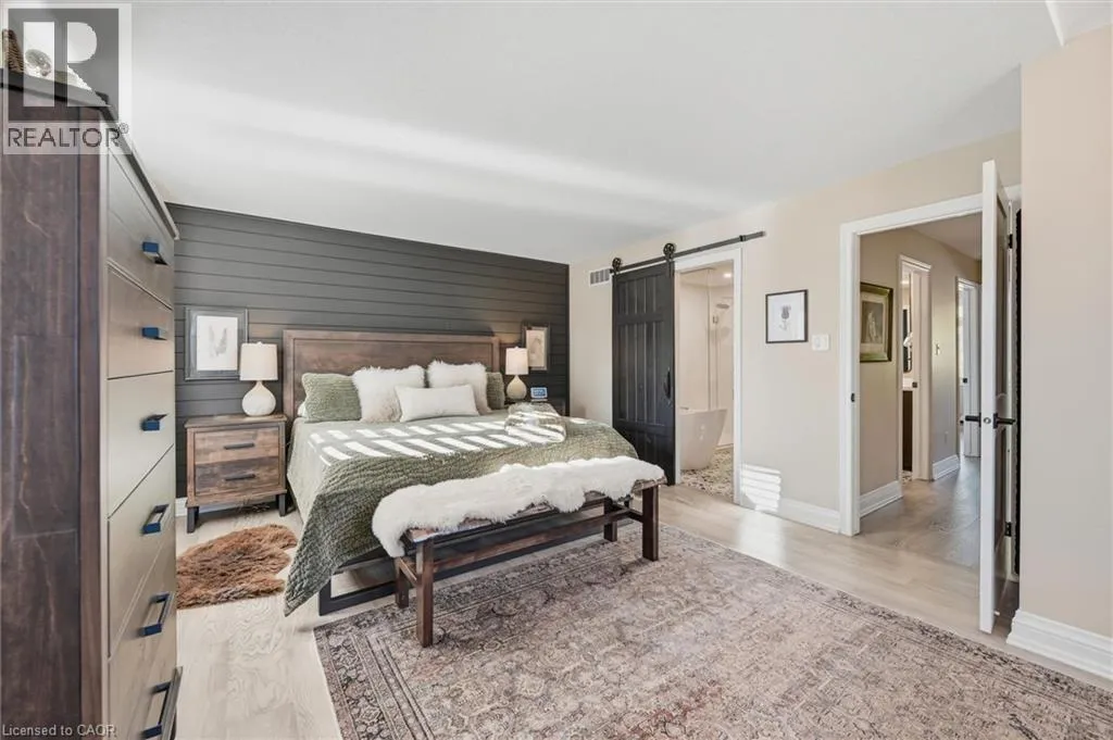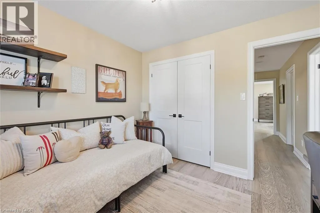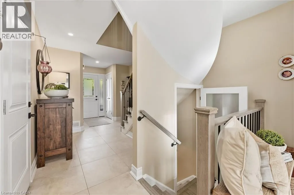 Upper Middle to Headon Rd Welcome to this beautifully updated End-Unit townhome in sought-after Headon Forest. Perfect for the busy professional or those looking to downsize. This home combines timeless style, modern upgrades, and maintenance-free living just minutes from parks, shops, restaurants, and major commuter routes. Step inside to discover a fully renovated kitchen with an elegant extension featuring granite counters, gas cooktop, built-in oven/microwave combo, range hood, bar fridge, and under-cabinet lighting designed for entertaining and everyday ease. The open-concept main floor offers refinished hardwood floors, modern pot lighting, California shutters, and an inviting dining and living area that opens to a private, extended patio with upgraded stonework and a natural gas line for outdoor cooking. Upstairs, youâll find three spacious bedrooms with new hardwood throughout, a spa-inspired main bath with stand-alone soaker tub, and a renovated two-piece powder room on the main level. Attention to every detail, updated interior doors and hardware, upgraded ceramic tile, a custom stair runner, all new exterior windows, doors, eaves and downspouts, plus patio doors with glass-enclosed blinds. Enjoy the convenience of two-car parking in the driveway, ample visitor parking nearby, and the peace of mind that comes with a maintenance-free exterior. This exceptional property delivers style, substance, and a prime Burlington location move right in and start living! (id:27476)