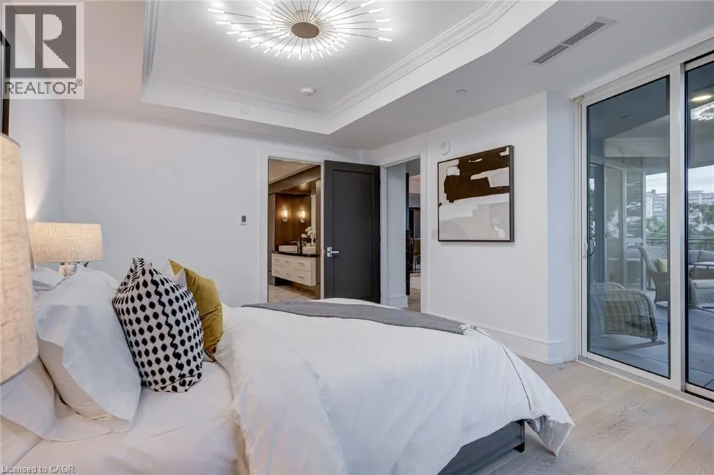 Lakeshore Road to Elizabeth Street Luxury Waterfront Living in the Heart of Downtown Burlington at the prestigious Bridgewater Residences â where timeless elegance meets lakeside tranquility. Spanning 2,200 square feet of refined living space, plus an expansive 725+ square foot private wrap-around terrace, this southeast-facing corner suite offers breathtaking, unobstructed views of Lake Ontario. Designed with meticulous attention to detail, this 2-bedroom plus den, 3-bathroom residence is rich with luxury upgrades and sophisticated design elements. Soaring floor-to-ceiling windows flood the space with natural light, while the open-concept layout features a gas fireplace and a spectacular gourmet kitchen equipped with premium Thermador appliances, a generous granite island, and custom cabinetry â ideal for both everyday living and entertaining. The hotel-inspired primary suite is a true retreat, complete with terrace access, panoramic lake views, a spacious walk-in closet, and a spa-like ensuite featuring an oversized glass shower and elegant finishes. A second bedroom with ensuite and a separate den/home office (easily adaptable as a third bedroom) ensure flexibility and privacy for guests or family. A dedicated laundry room and a stylish powder room round out the suiteâs thoughtful layout. Step outside to your private terrace and take in the serenity of waterfront living â the perfect backdrop for morning coffee, summer dining, or evening relaxation. As a Bridgewater resident, enjoy access to resort-style amenities, including a rooftop terrace, party lounge, fitness centre, piano room, and VIP privileges at The Pearle Hotel & Spa, featuring a second gym and a luxurious indoor pool. This rare offering also includes two premium accessible parking spaces next to the elevator, as well as a private storage locker. Experience the best of Downtown Burlington â just steps to the Waterfront Trail, Spencer Smith Park, the Pier, and a vibrant mix of boutique shopping, fine dining, and cultural attractions. (id:27476)
