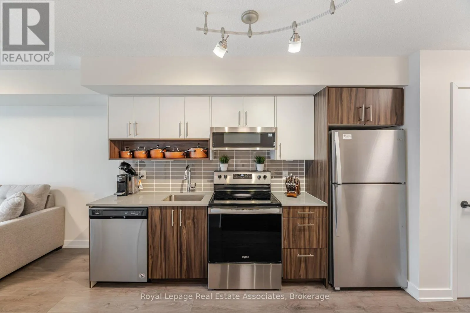 Cross Streets: Waterdown Rd/Plains Rd E. ** Directions: Plains Rd E- Cooke Blvd. Newly Built 1-Bedroom Plus Den Condo Fully Furnished In The Sought-After Aldershot Community. The Open-Concept Layout Features A Modern Kitchen With Quartz Counters, Stainless Steel Appliances, Built-In Microwave, Two-Tone Cabinetry, And A Large Island With Seating. The Versatile Den Is Ideal For A Home Office, Dining Nook, Or Extra Entertaining Space. The Spacious Bedroom Offers Full-Size Windows, Generous Closet Space, And Views To A Private Covered Balcony That Offers A Quiet Outdoor Space For Relaxing. Enjoy Building Amenities Including A Fitness Room, Party Space, And Rooftop Deck. All This Just A Short Walk To Aldershot GO Station, With Quick Access To Highways, Shopping, And Parks. PARKING AND LOCKER INCLUDED (id:27476)