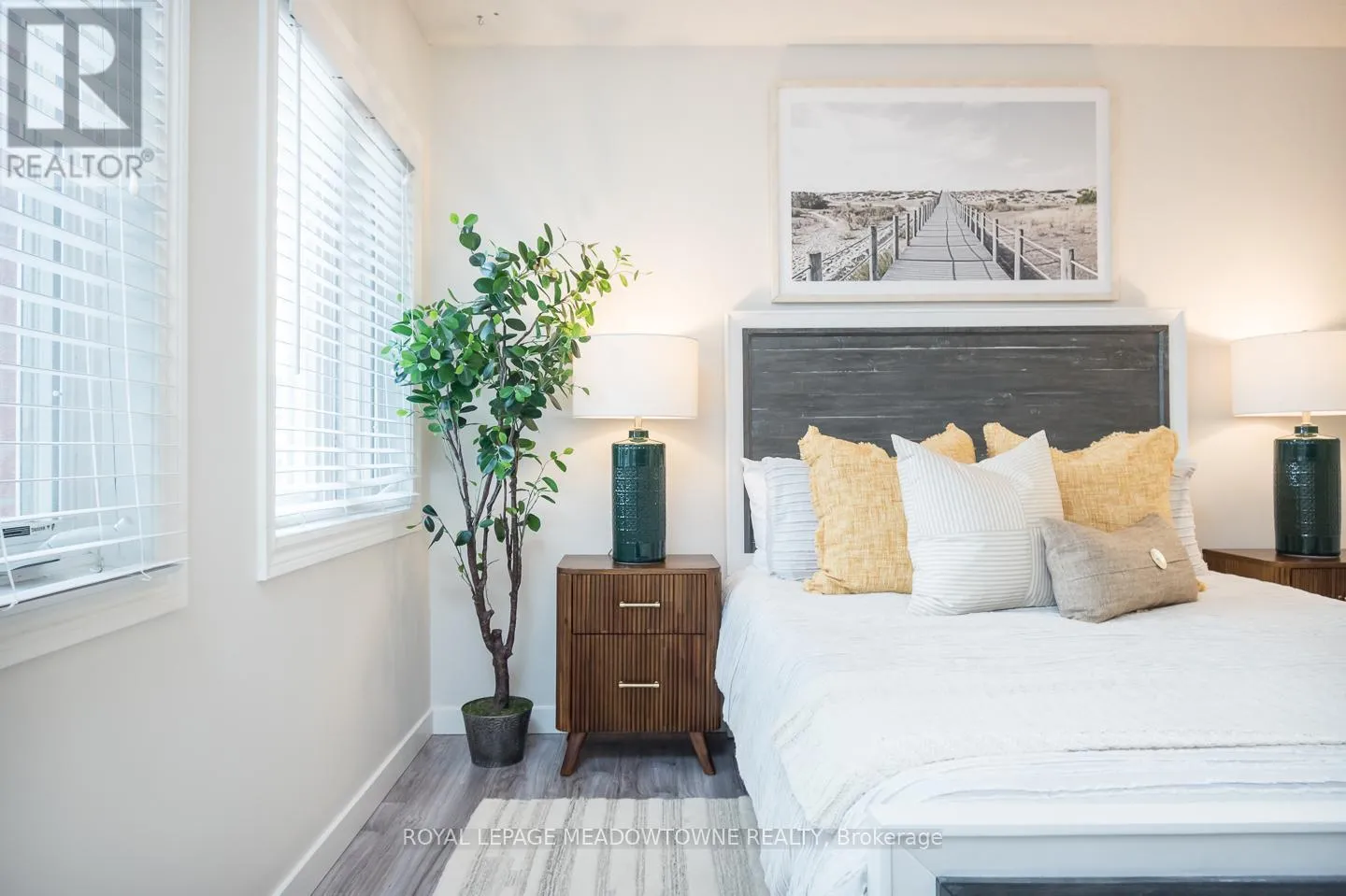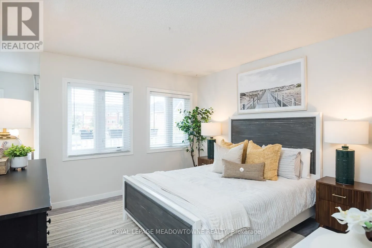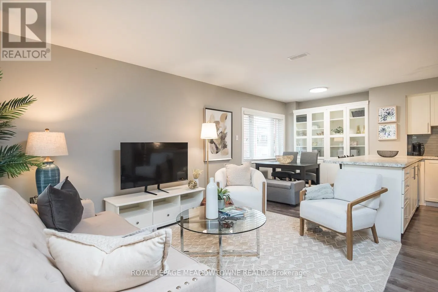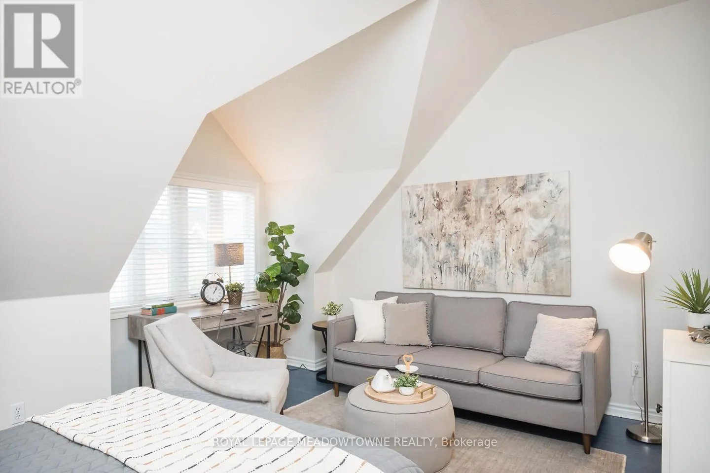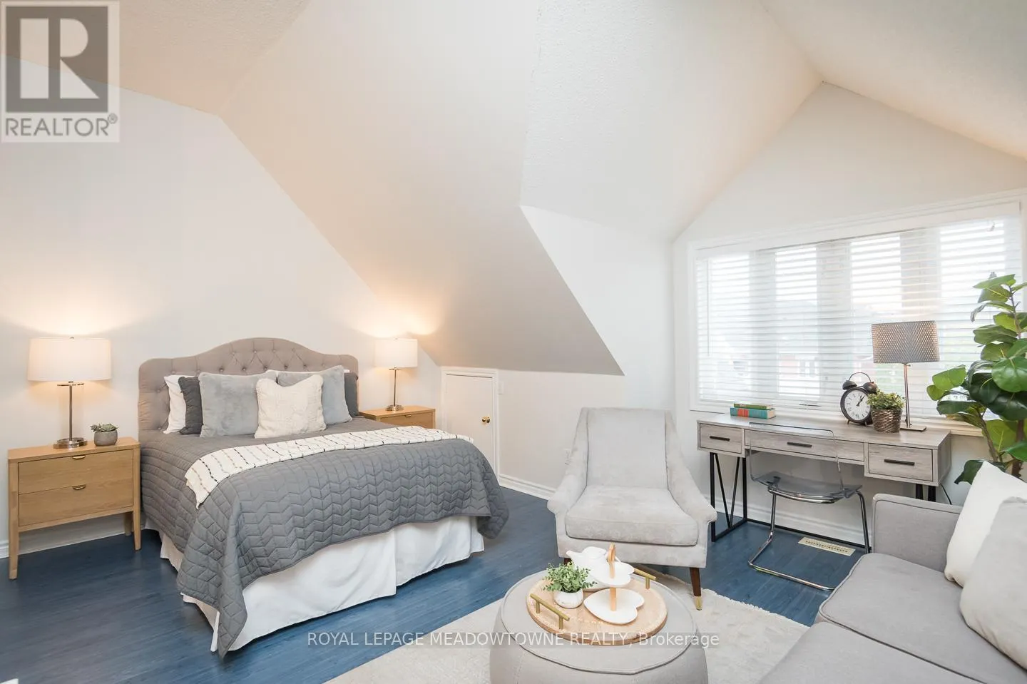 Appleby & Mainway Stylish Uptown Burlington Townhome! Welcome to this beautifully updated 2-bedroom, 2-bathroom townhome offering 1,344 sq. ft. of bright, modern living in one of Burlington's most desirable neighbourhoods. Perfectly located near highways, golf courses, parks, and everyday conveniences, this home combines comfort and style in an unbeatable setting. Enjoy two parking spaces right at your doorstep, a convenient upper-level laundry room, and large windows that fill the space with natural light. The fresh white kitchen features sleek stainless steel appliances, a chic tile backsplash, breakfast bar seating, and a cozy eat-in nook. The open-concept living and dining area extends to the front patio - ideal for morning coffee or evening gatherings. Upstairs, a spacious bedroom with a handy office nook and private balcony pairs perfectly with a full bath, while the top-floor loft impresses with vaulted ceilings, its own ensuite, and plenty of space to unwind. A perfect blend of modern design and easy living! (id:27476)