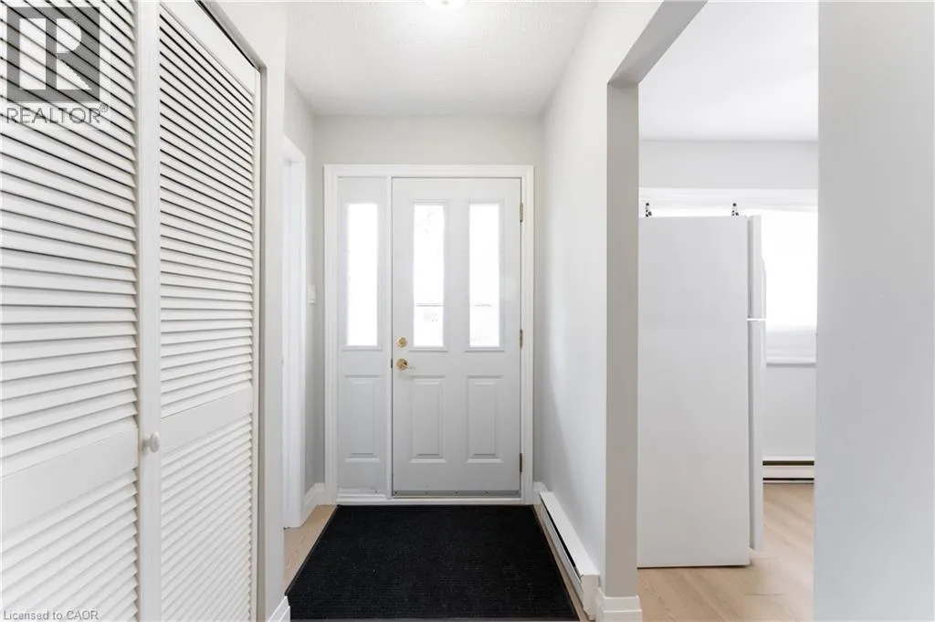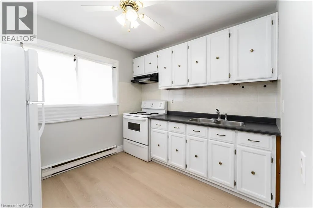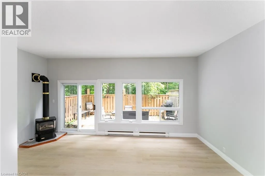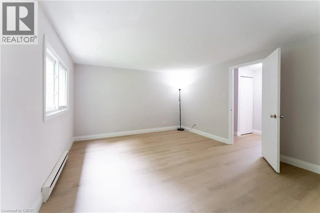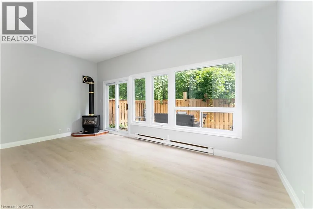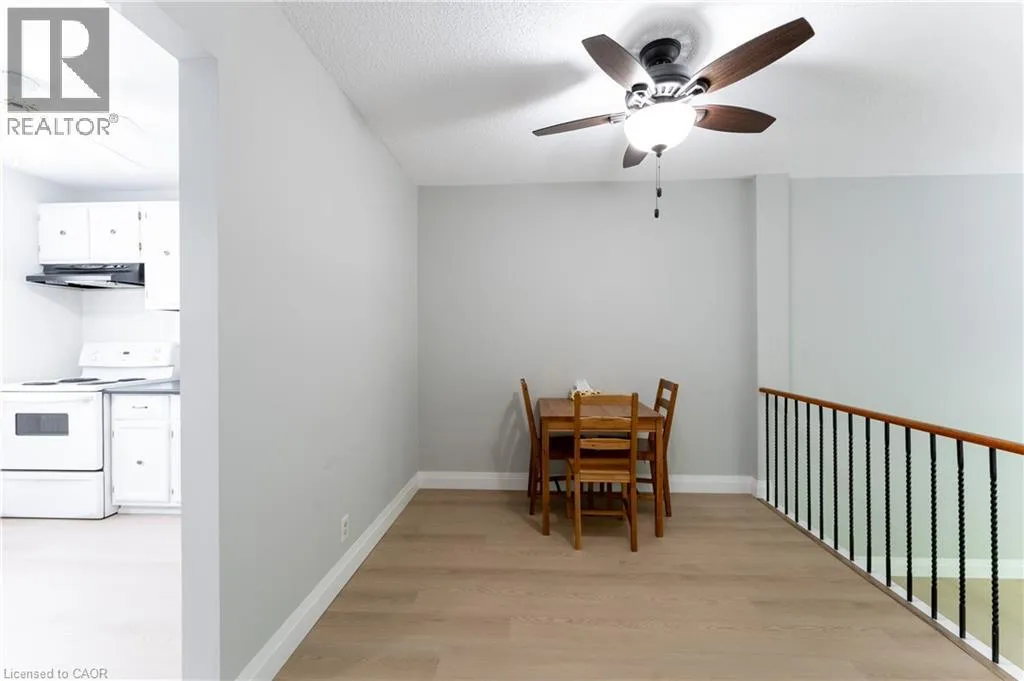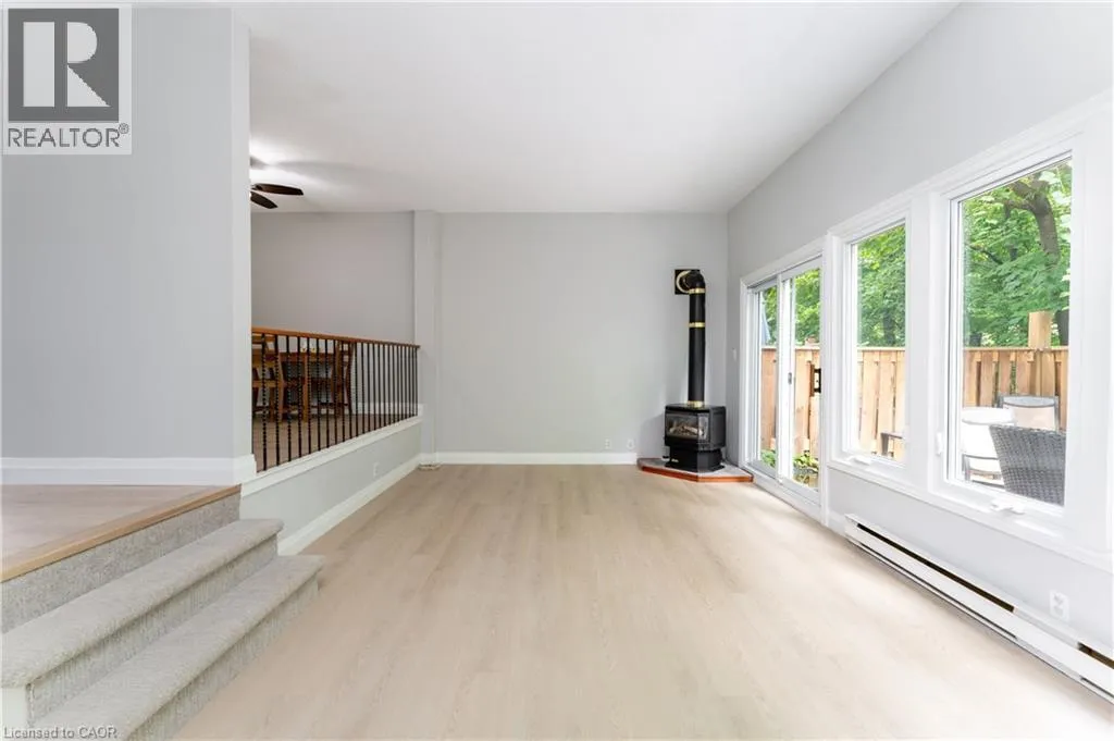 Brant and Upper Middle Rd **Ravine Lot** 2 Parking** 3+1 Bedrooms. Fenced in Yard. This Townhome has a great floor plan! With an open concept dining room and an oversized sunken family room. This is a rare floor plan and Lot, that does not come up often! This home features a Beautiful Family room with high ceilings and nothing but windows overlooking your private backyard, backing onto the ravine, your private oasis, nothing but trees and the sound of nature. 3 great size bedrooms, new flooring throughout, freshly painted, Primary source of heating is gas fireplace. 2 underground parking spots are included. A wonderful family neighbourhood. Walking distance to schools, parks, trails, transit, grocery/shopping, banks, min to the community centre and min to major highways. (id:27476)
