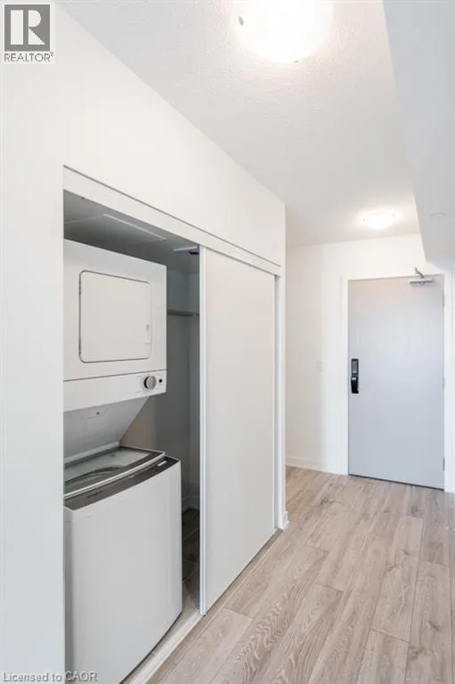 Appleby Line to Thomas Alton Blvd and Left on Dakota Common. Welcome to contemporary living at Valera Condos in Burlington! This bright and stylish 1-bedroom, 1-bath suite offers a functional open-concept layout with 9-ft ceilings and floor-to-ceiling windows that flood the space with natural light. The sleek kitchen features quartz countertops, stainless steel appliances, and ample cabinet space. Enjoy the spacious balcony with views. Thoughtfully designed for comfort and convenience, this unit includes in-suite laundry, 1 underground parking spot, and a storage locker. Valera offers resort-style amenities including a fitness centre, rooftop terrace, outdoor pool, party room and 24/7 concierge. Located just minutes from shopping, restaurants, parks, highways, and the GO Station. (id:27476)