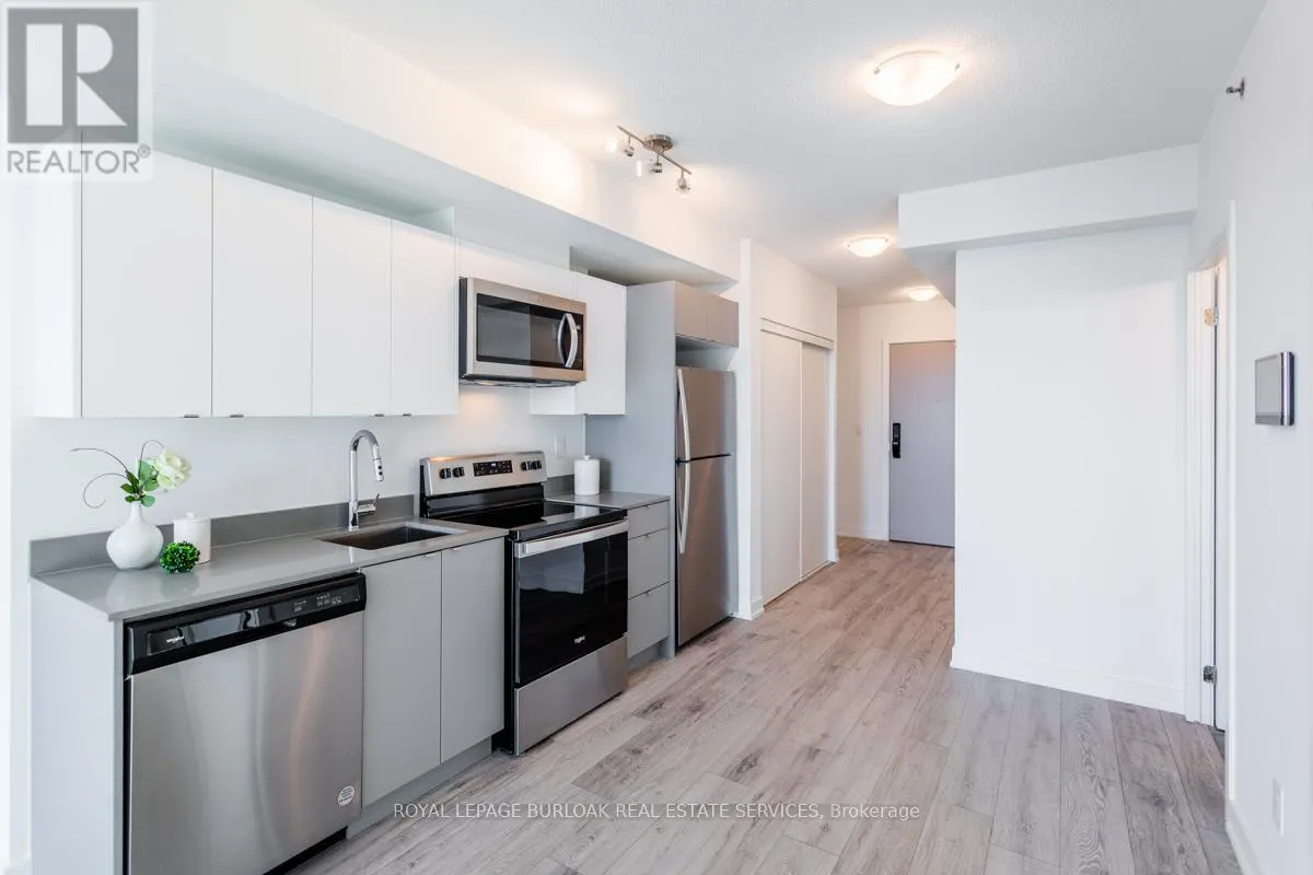 Cross Streets: Thomas Alton Blvd and Appleby Line. ** Directions: Appleby Line to Thomas Alton Blvd and Left on Dakota Common. Welcome to contemporary living at Valera Condos in Burlington! This bright and stylish 1-bedroom, 1-bath suite offers a functional open-concept layout with 9-ft ceilings and floor-to-ceiling windows that flood the space with natural light. The sleek kitchen features quartz countertops, stainless steel appliances, and ample cabinet space. Enjoy the spacious balcony with views. Thoughtfully designed for comfort and convenience, this unit includes in-suite laundry, 1 underground parking spot, and a storage locker. Valera offers resort-style amenities including a fitness centre, rooftop terrace, outdoor pool, party room and 24/7 concierge. Located just minutes from shopping, restaurants, parks, highways, and the GO Station. (id:27476)