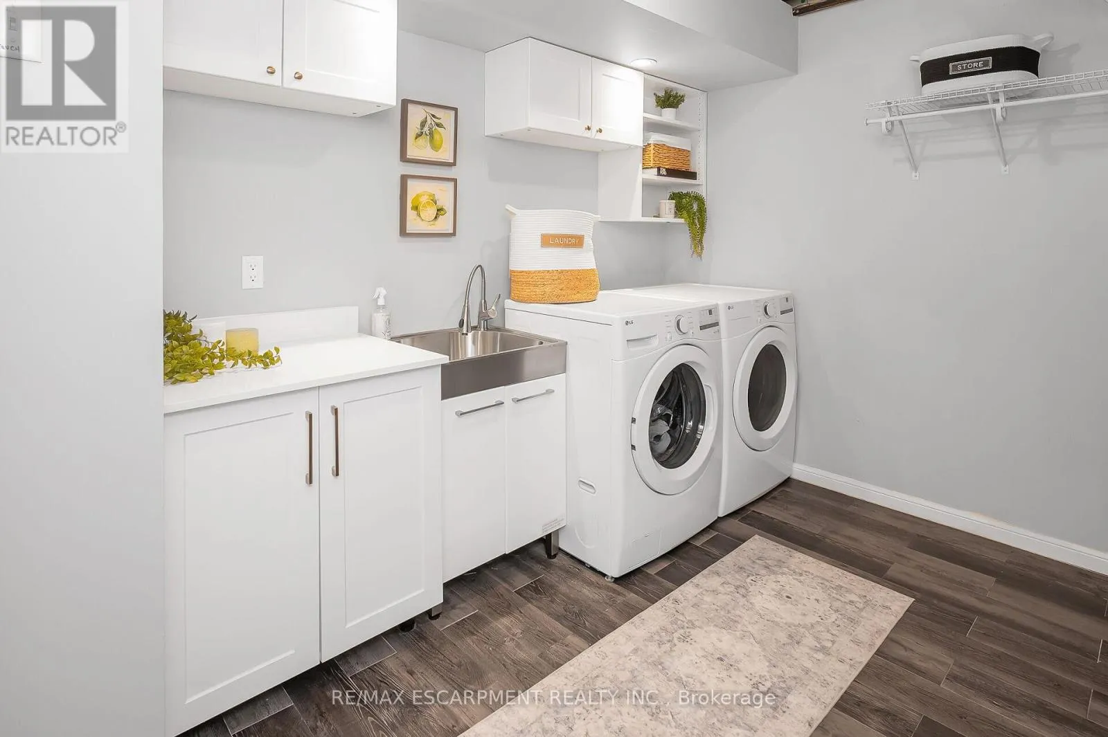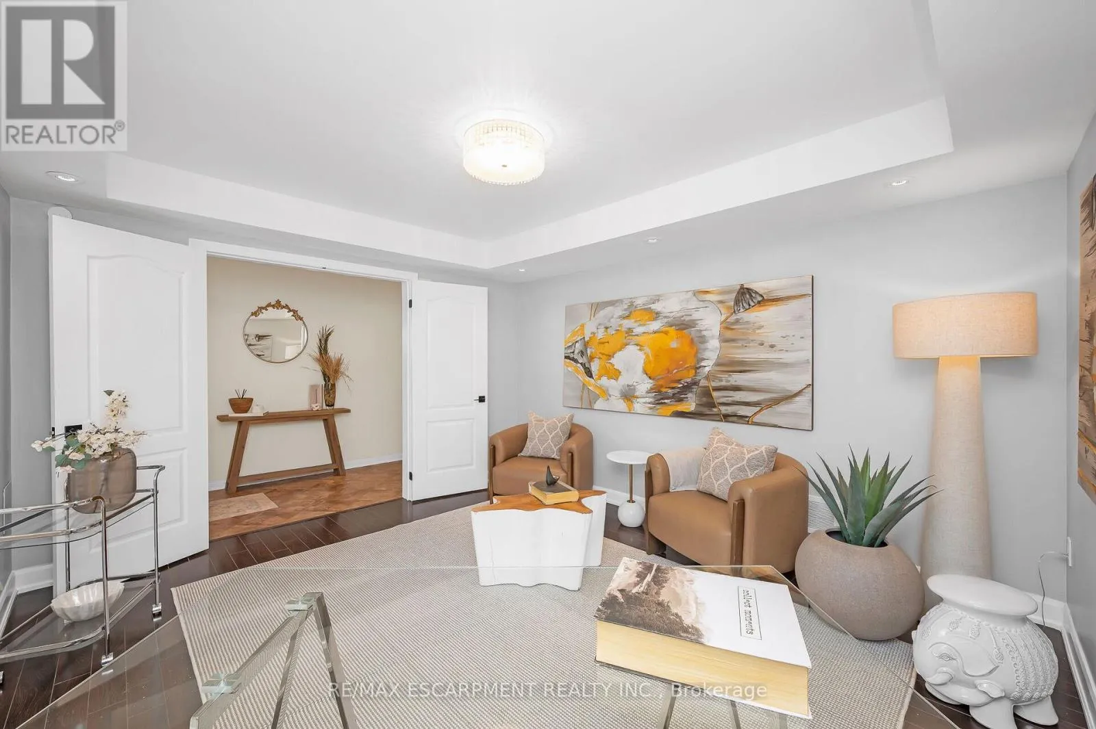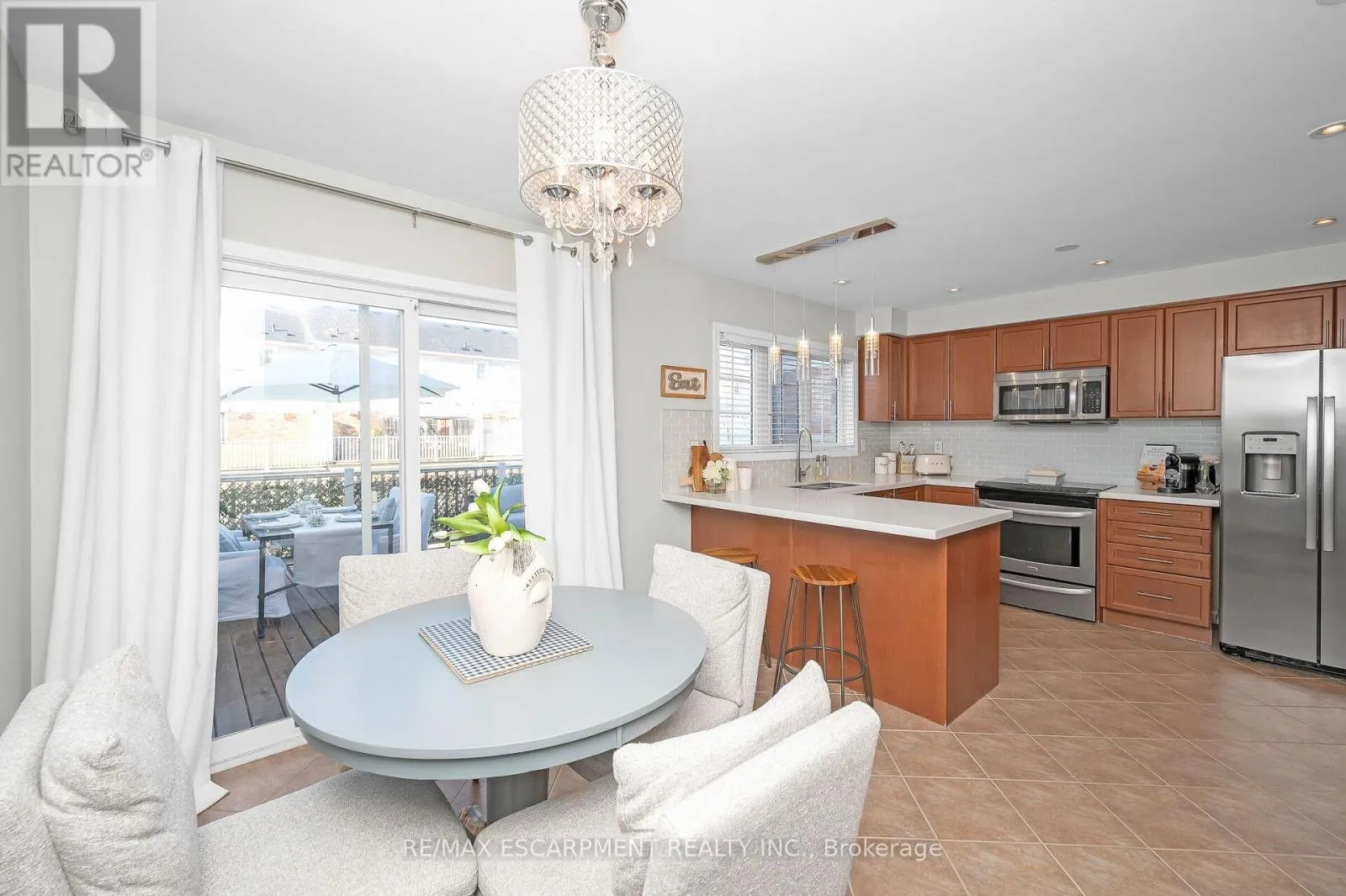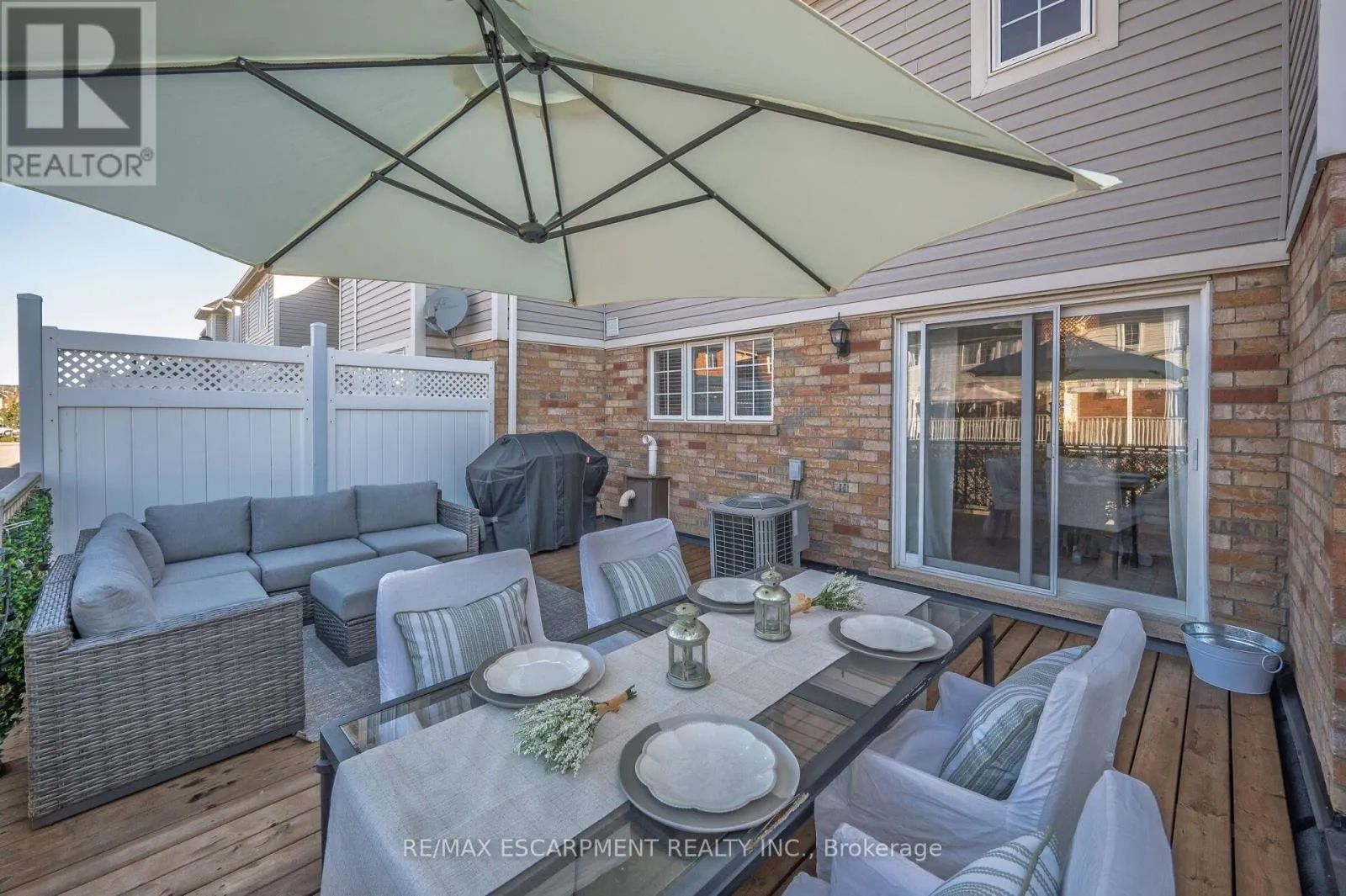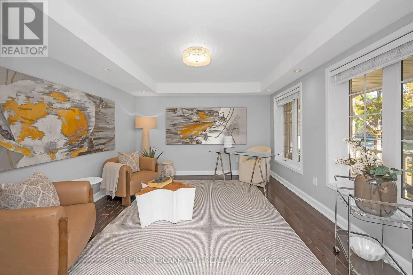 Cross Streets: Walkers Line & Dundas St. ** Directions: Walkers Line to Donnic Dr to Edgar Ave. Gorgeous move-in ready FREEHOLD Townhome w/Double Garage walkable to shops & restaurants. Beautifully designed & upgraded with numerous recent updates, the pride of ownership shows from the moment you step into the spacious entry Foyer. Engineered Hardwood floors, smooth ceilings, solid oak staircase w/tread lighting, pot lights, trim & fresh finishes through-out. Gourmet's Kitchen w/Breakfast Bar, Quartz counters, S/S appliances, Custom Cabinets to the ceiling, Pantry, Dining & Walk-Out to huge 17' x 20' Deck. Bright, spacious Living Room/Great Room with eng. hardwood, pot lights & oversized windows is the perfect space for entertaining. Private Primary Suite with spacious 4 pc Ensuite w/soaker Tub and Walk-In closet. Beautifully updated in 2025, the 2nd Bedroom features charming Wainscoting, Wallpaper & Designer Lighting. And enjoys, just next door, a spacious 4pc Main Bath with built-in Vanity. Large, bright main floor Family Room off the Foyer offers multiple flex options: Office, Bedroom, Gym & more! Main floor Laundry with new side by side Washer, Dryer & Laundry sink. Huge Double Car Garage w/inside entry. Numerous updates, Roof '21, Garage Door '21, Deck '23, Smooth Ceilings '21, Carpet, Paint, Trim & more!! Just steps away from shopping, groceries, parks, and schools, with easy access to highways for a seamless commute. (id:27476)