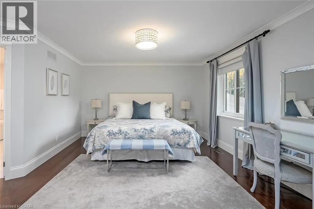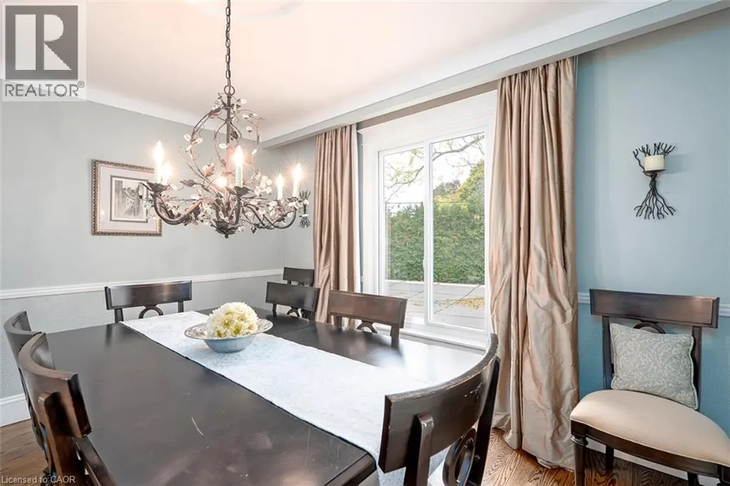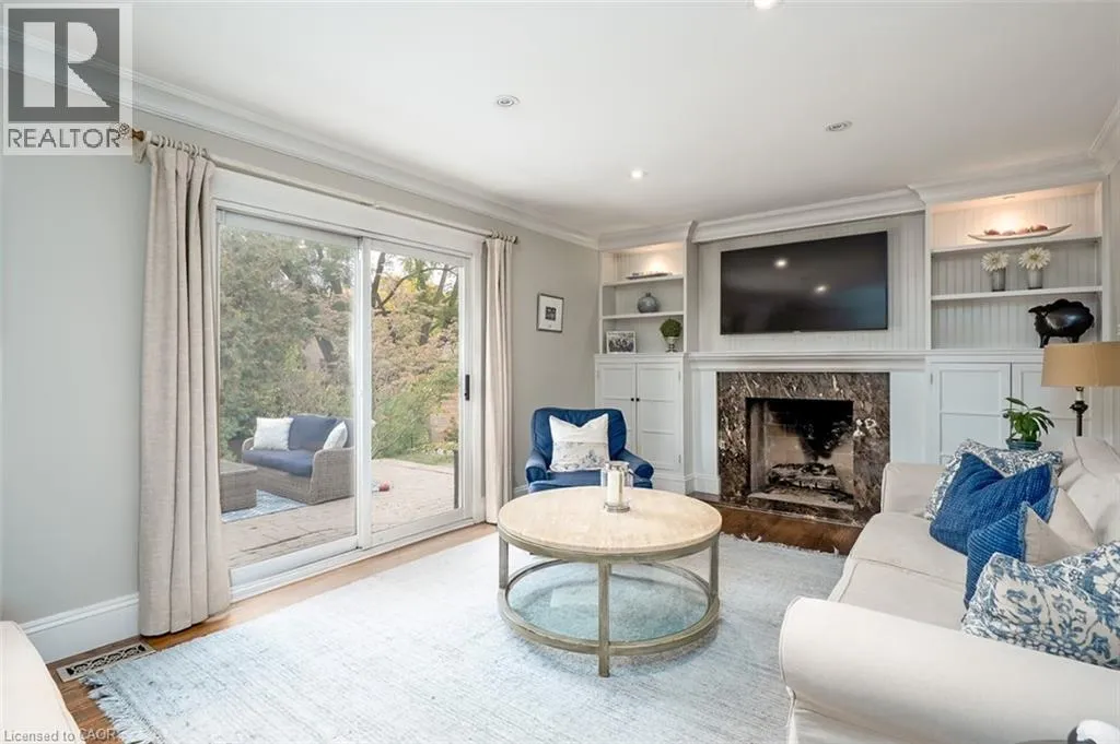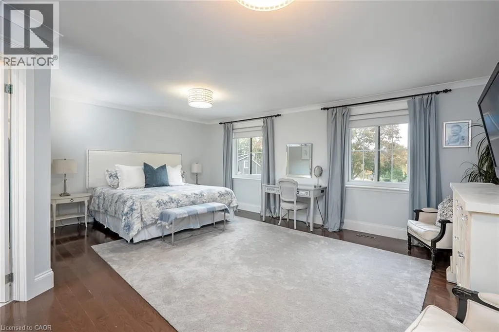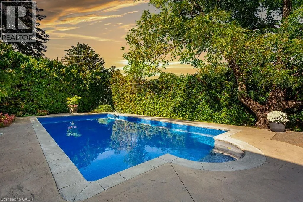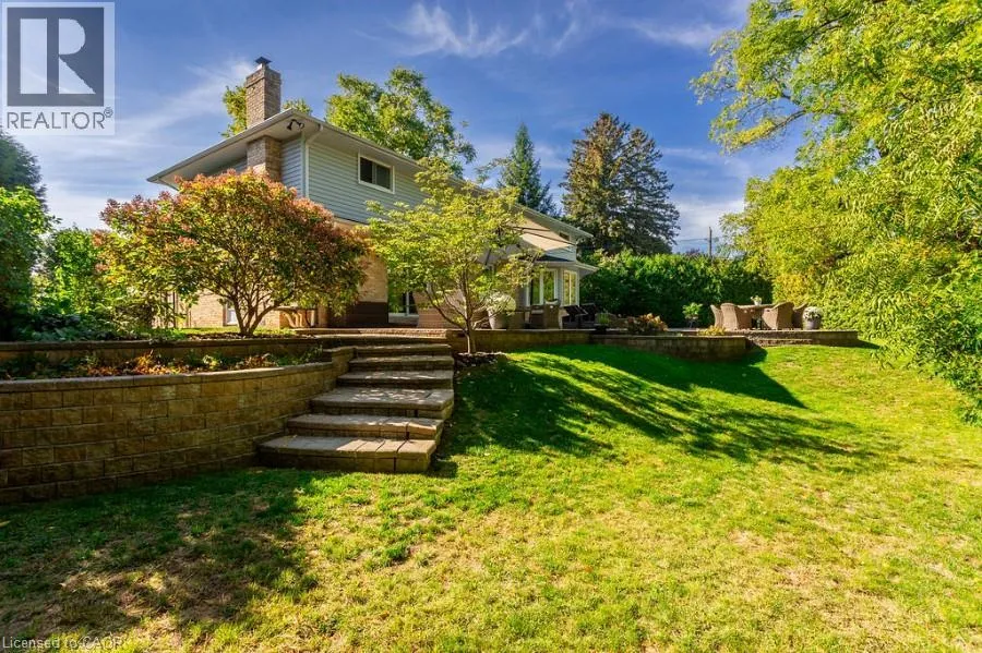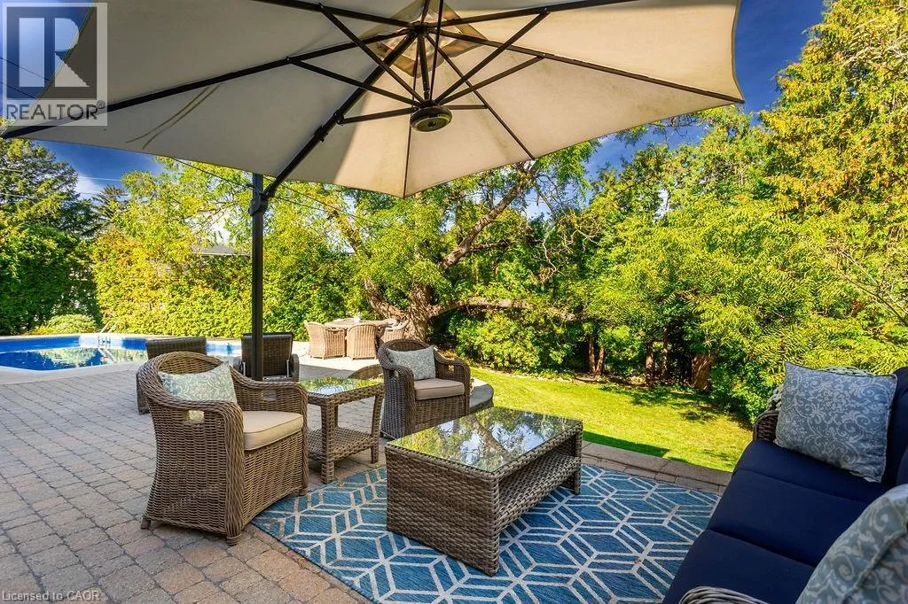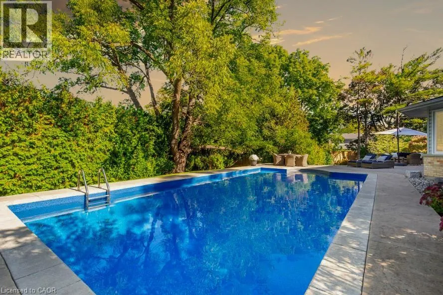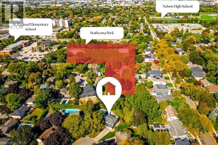 Lakeshore Road to Belvenia Rd to Spruce Avenue to Camelot Court Welcome to a rare opportunity to own a spacious 4+1 bedroom, 5 bathroom home backing directly onto Strathcona Park in Burlingtonâs highly desirable Shoreacres neighbourhood. Nestled on a quiet court within the Tuck/Nelson/St. Raphael School District, this property offers the perfect blend of comfort, function, and location. Set on one of the largest and most private pie-shaped lots in the area, this home is designed for family living and effortless entertaining. The backyard is a true retreat, featuring a saltwater pool, multiple patio spaces, and direct access to the park with playgrounds, trails, and a baseball diamond steps away. Inside, youâll find over 3,300 sq. ft. of total finished space thoughtfully laid out for everyday living. The main floor includes bright, spacious principal rooms - a welcoming living and dining area, a private office, and a cozy family room with a gas fireplace. The updated kitchen boasts a large island, ample storage, and a breakfast area with peaceful views of the backyard. Upstairs, the primary suite offers a beautiful 5-piece ensuite with a soaker tub, glass shower, and double vanity. Three additional bedrooms and two full bathrooms provide flexibility for growing families, while the second-floor laundry adds everyday convenience. The fully finished lower level includes a generous recreation room with a fireplace, an additional bedroom, a 2-piece bath, and a utility/workshop space - perfect for a guest suite, teen retreat, or home gym. Recent updates include windows, roof, furnace, air conditioner, and pool liner, allowing you to move in with confidence. Located close to top-rated schools, shopping, parks, and major highways, this home offers a rare combination of space, privacy, and an unbeatable setting. Backing onto green space and tucked away on a quiet street, this is the family lifestyle youâve been waiting for. (id:27476)