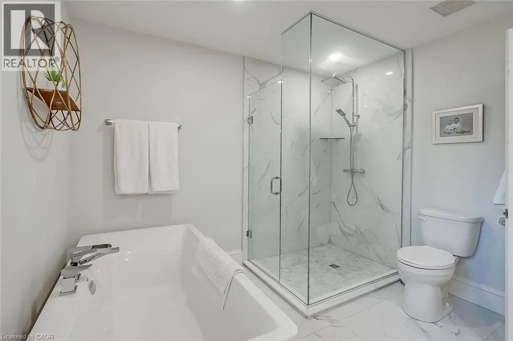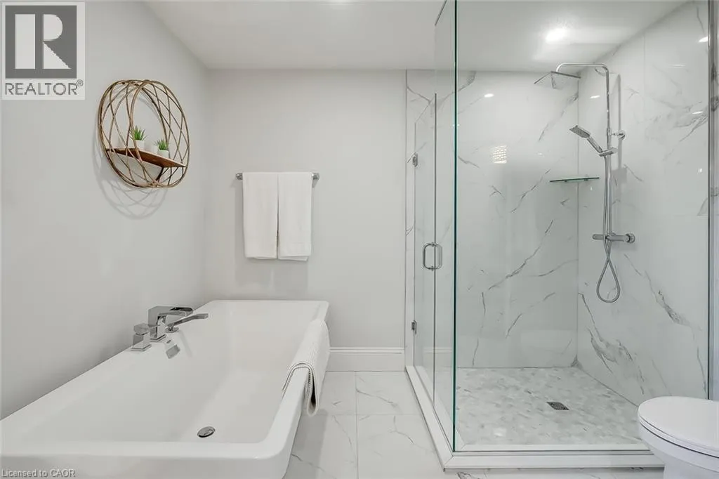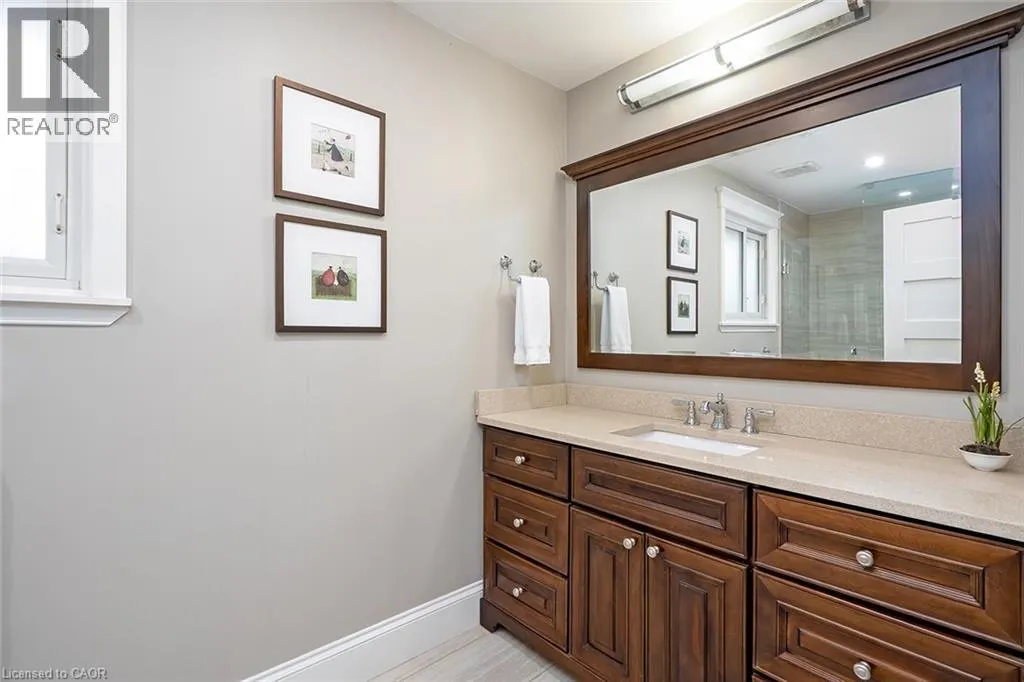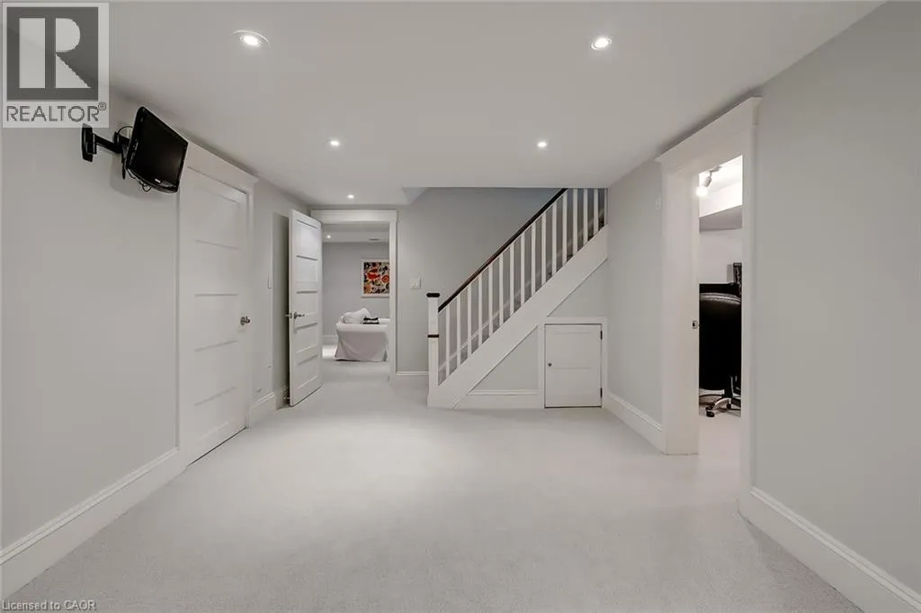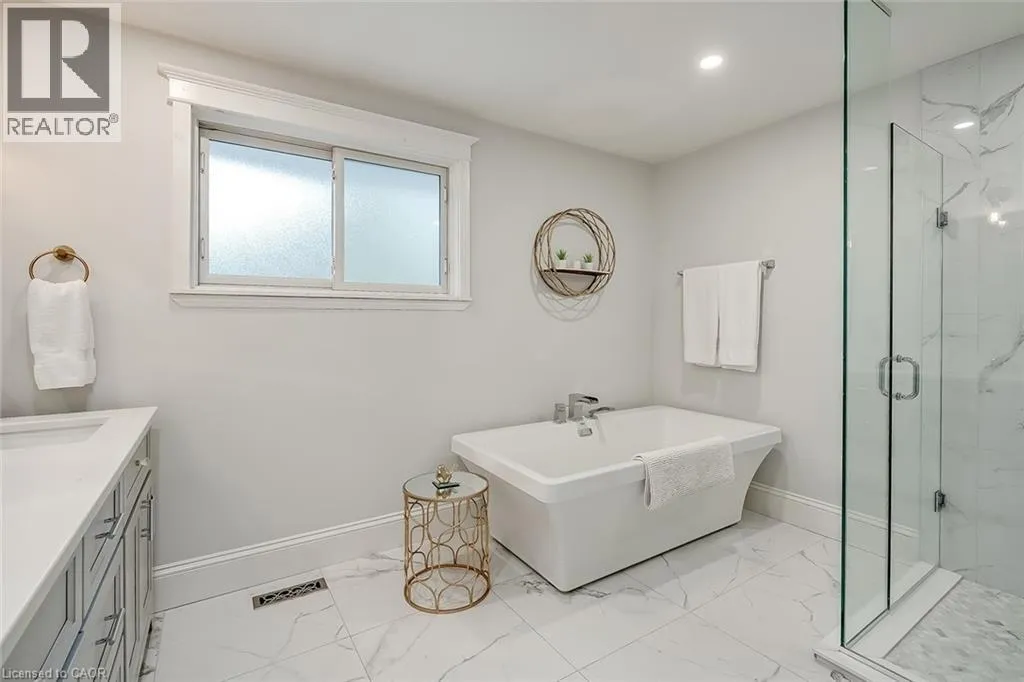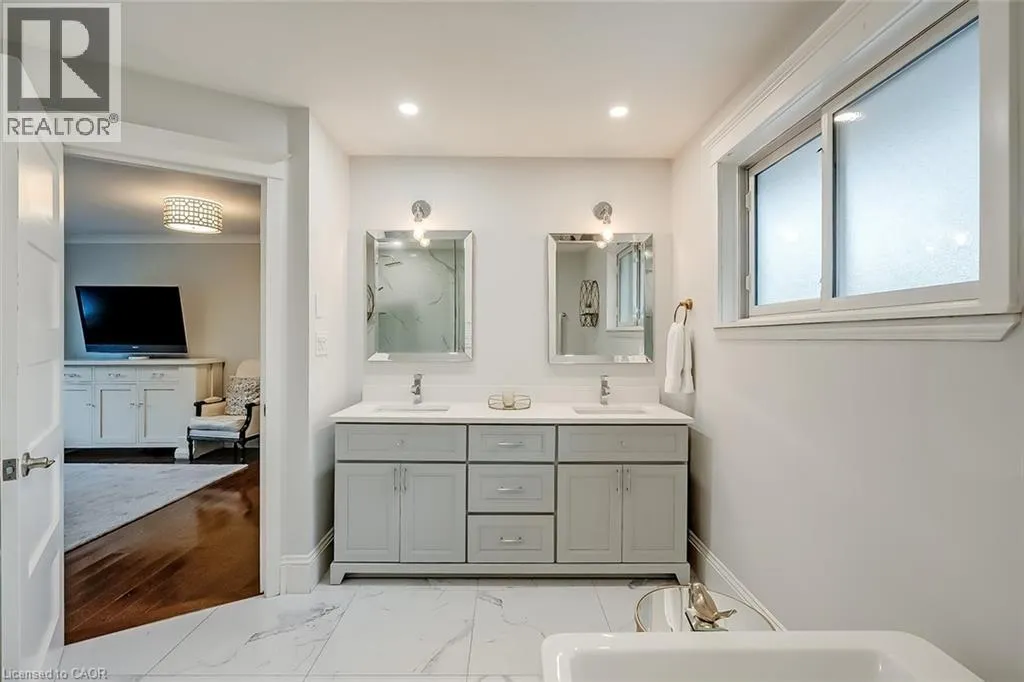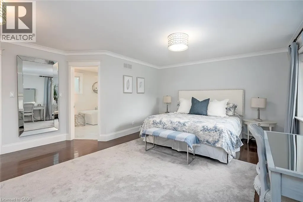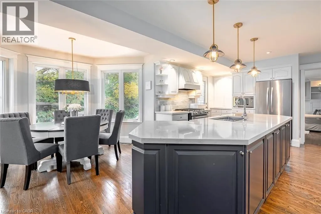 Lakeshore Road to Belvenia Rd to Spruce Avenue to Camelot Court Welcome to a rare opportunity to own a spacious 4+1 bedroom, 5 bathroom home backing directly onto Strathcona Park in Burlingtonâs highly desirable Shoreacres neighbourhood. Nestled on a quiet court within the Tuck/Nelson/St. Raphael School District, this property offers the perfect blend of comfort, function, and location. Set on one of the largest and most private pie-shaped lots in the area, this home is designed for family living and effortless entertaining. The backyard is a true retreat, featuring a saltwater pool, multiple patio spaces, and direct access to the park with playgrounds, trails, and a baseball diamond steps away. Inside, youâll find over 3,300 sq. ft. of total finished space thoughtfully laid out for everyday living. The main floor includes bright, spacious principal rooms - a welcoming living and dining area, a private office, and a cozy family room with a gas fireplace. The updated kitchen boasts a large island, ample storage, and a breakfast area with peaceful views of the backyard. Upstairs, the primary suite offers a beautiful 5-piece ensuite with a soaker tub, glass shower, and double vanity. Three additional bedrooms and two full bathrooms provide flexibility for growing families, while the second-floor laundry adds everyday convenience. The fully finished lower level includes a generous recreation room with a fireplace, an additional bedroom, a 2-piece bath, and a utility/workshop space - perfect for a guest suite, teen retreat, or home gym. Recent updates include windows, roof, furnace, air conditioner, and pool liner, allowing you to move in with confidence. Located close to top-rated schools, shopping, parks, and major highways, this home offers a rare combination of space, privacy, and an unbeatable setting. Backing onto green space and tucked away on a quiet street, this is the family lifestyle youâve been waiting for. (id:27476)