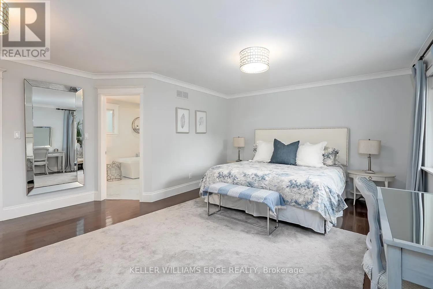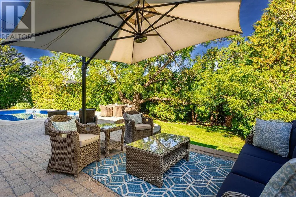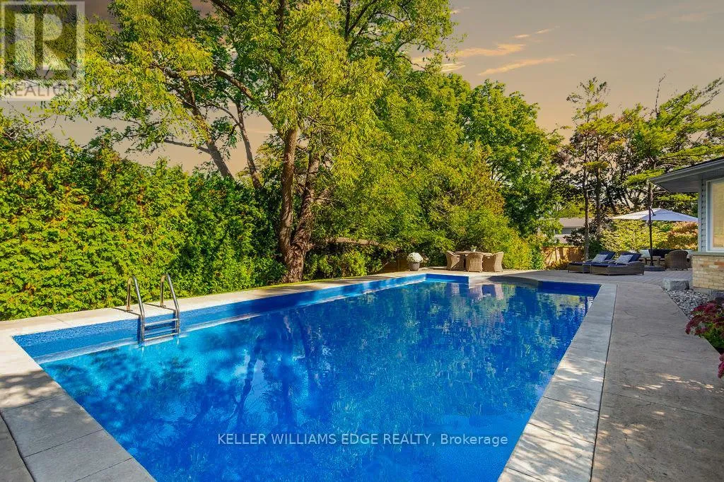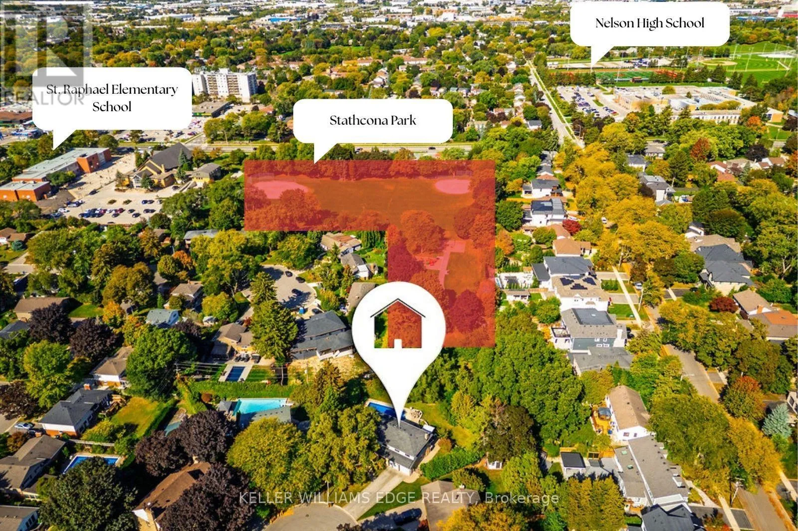 Cross Streets: Spruce Avenue. ** Directions: Lakeshore Road to Belvenia Rd to Spruce Avenue to Camelot Court. Welcome to a rare opportunity to own a spacious 4+1 bedroom, 5 bathroom home backing directly onto Strathcona Park in Burlington's highly desirable Shoreacres neighbourhood. Nestled on a quiet court within the Tuck/Nelson/St. Raphael School District, this property offers the perfect blend of comfort, function, and location.Set on one of the largest and most private pie-shaped lots in the area, this home is designed for family living and effortless entertaining. The backyard is a true retreat, featuring a saltwater pool, multiple patio spaces, and direct access to the park with playgrounds, trails, and a baseball diamond steps away.Inside, you'll find over 3,300 sq. ft. of total finished space thoughtfully laid out for everyday living. The main floor includes bright, spacious principal rooms - a welcoming living and dining area, a private office, and a cozy family room with a gas fireplace. The updated kitchen boasts a large island, ample storage, and a breakfast area with peaceful views of the backyard.Upstairs, the primary suite offers a beautiful 5-piece ensuite with a soaker tub, glass shower, and double vanity. Three additional bedrooms and two full bathrooms provide flexibility for growing families, while the second-floor laundry adds everyday convenience.The fully finished lower level includes a generous recreation room with a fireplace, an additional bedroom, a 2-piece bath, and a utility/workshop space - perfect for a guest suite, teen retreat, or home gym.Recent updates include windows, roof, furnace, air conditioner, and pool liner, allowing you to move in with confidence.Located close to top-rated schools, shopping, parks, and major highways, this home offers a rare combination of space, privacy, and an unbeatable setting. Backing onto green space and tucked away on a quiet street, this is the family lifestyle you've been waiting for. (id:27476)