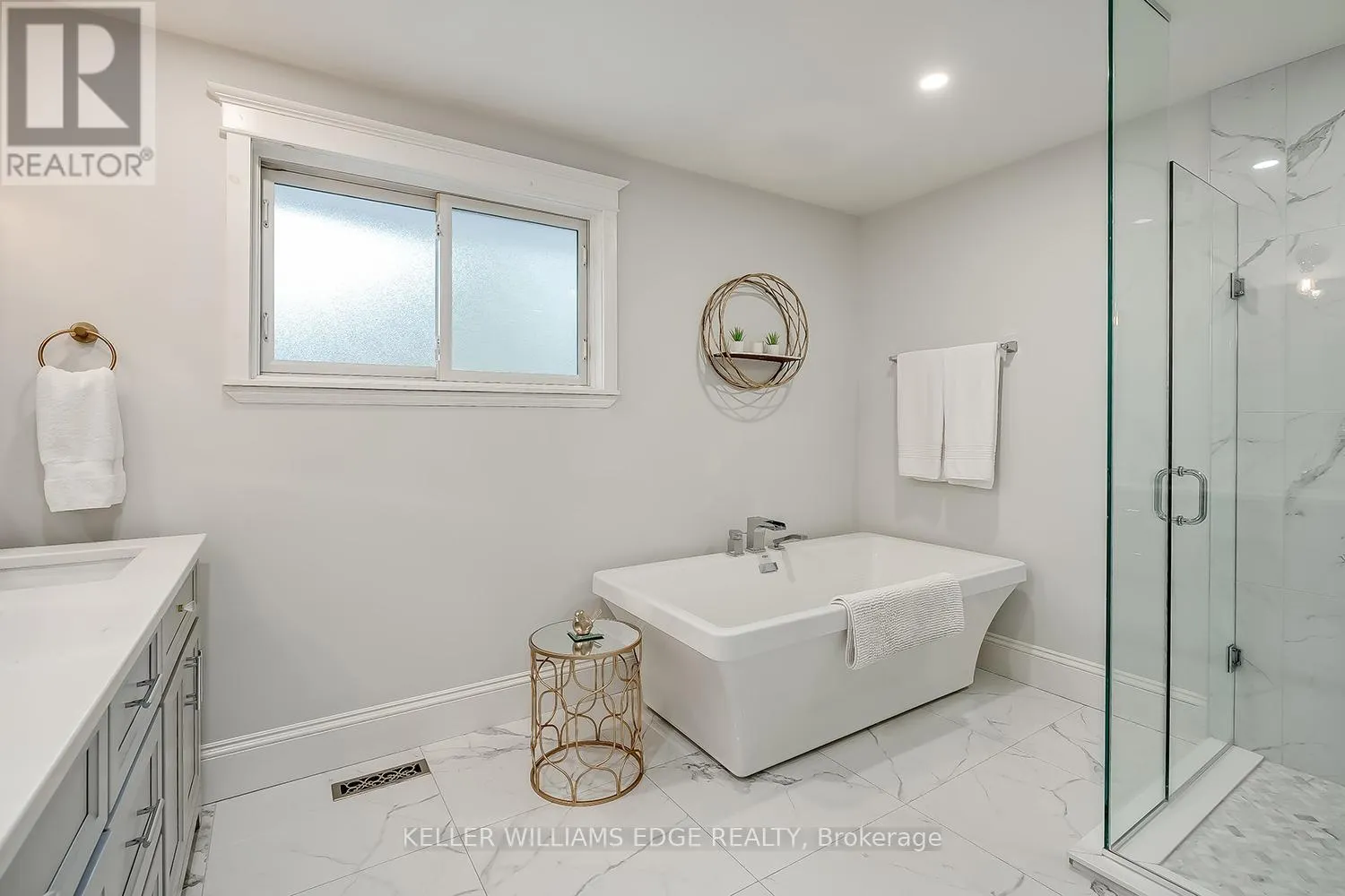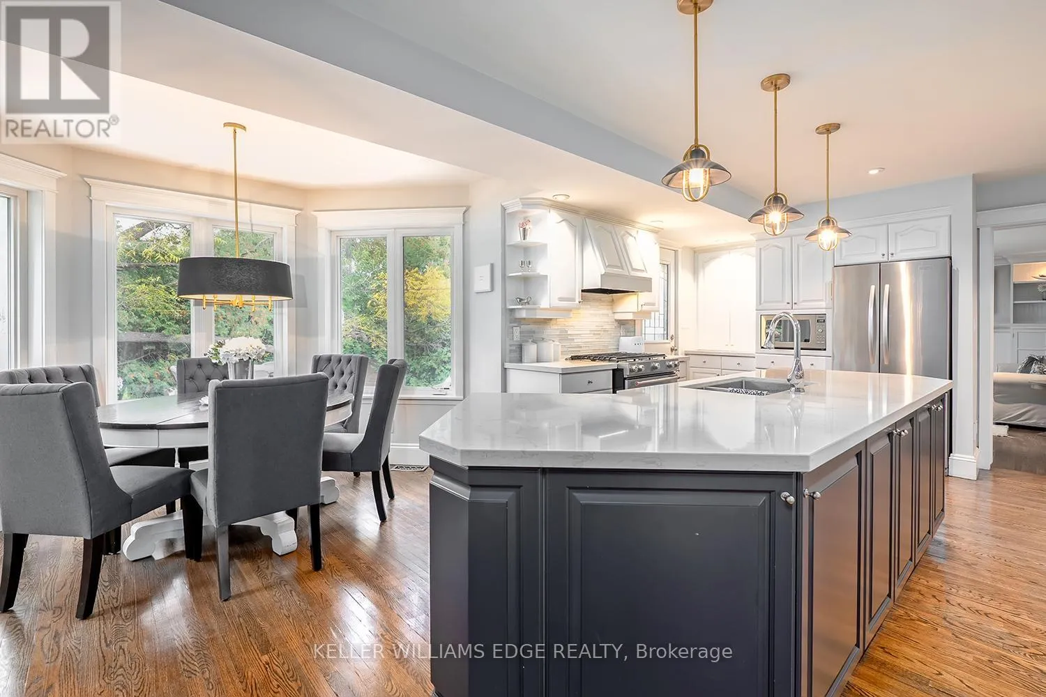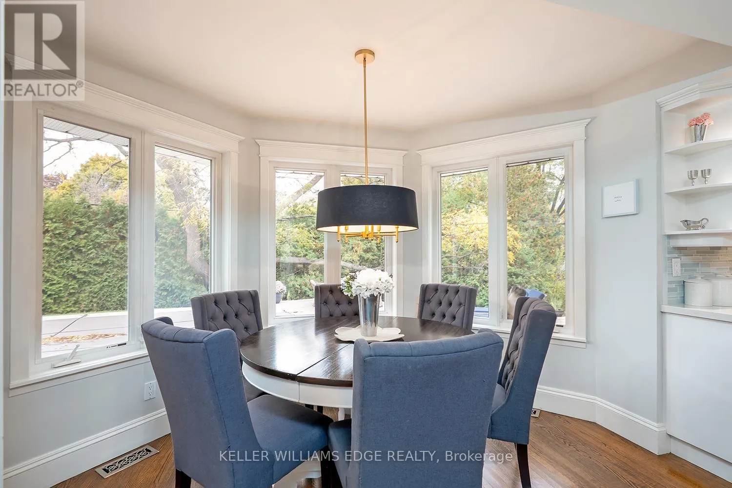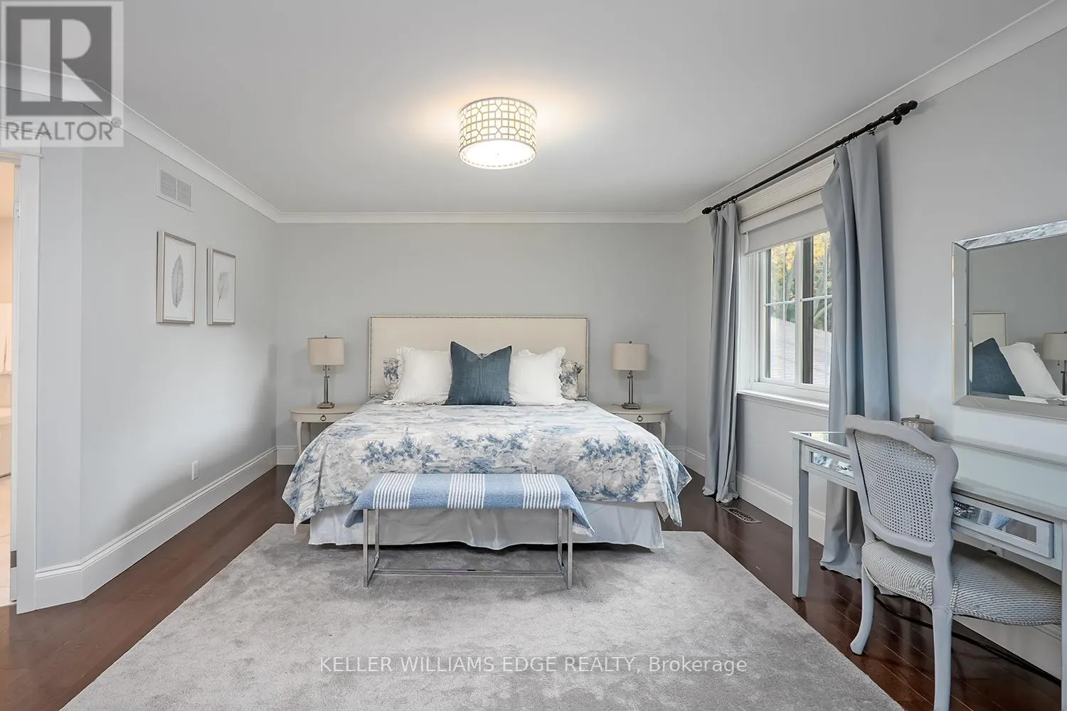 Cross Streets: Spruce Avenue. ** Directions: Lakeshore Road to Belvenia Rd to Spruce Avenue to Camelot Court. Welcome to a rare opportunity to own a spacious 4+1 bedroom, 5 bathroom home backing directly onto Strathcona Park in Burlington's highly desirable Shoreacres neighbourhood. Nestled on a quiet court within the Tuck/Nelson/St. Raphael School District, this property offers the perfect blend of comfort, function, and location.Set on one of the largest and most private pie-shaped lots in the area, this home is designed for family living and effortless entertaining. The backyard is a true retreat, featuring a saltwater pool, multiple patio spaces, and direct access to the park with playgrounds, trails, and a baseball diamond steps away.Inside, you'll find over 3,300 sq. ft. of total finished space thoughtfully laid out for everyday living. The main floor includes bright, spacious principal rooms - a welcoming living and dining area, a private office, and a cozy family room with a gas fireplace. The updated kitchen boasts a large island, ample storage, and a breakfast area with peaceful views of the backyard.Upstairs, the primary suite offers a beautiful 5-piece ensuite with a soaker tub, glass shower, and double vanity. Three additional bedrooms and two full bathrooms provide flexibility for growing families, while the second-floor laundry adds everyday convenience.The fully finished lower level includes a generous recreation room with a fireplace, an additional bedroom, a 2-piece bath, and a utility/workshop space - perfect for a guest suite, teen retreat, or home gym.Recent updates include windows, roof, furnace, air conditioner, and pool liner, allowing you to move in with confidence.Located close to top-rated schools, shopping, parks, and major highways, this home offers a rare combination of space, privacy, and an unbeatable setting. Backing onto green space and tucked away on a quiet street, this is the family lifestyle you've been waiting for. (id:27476)