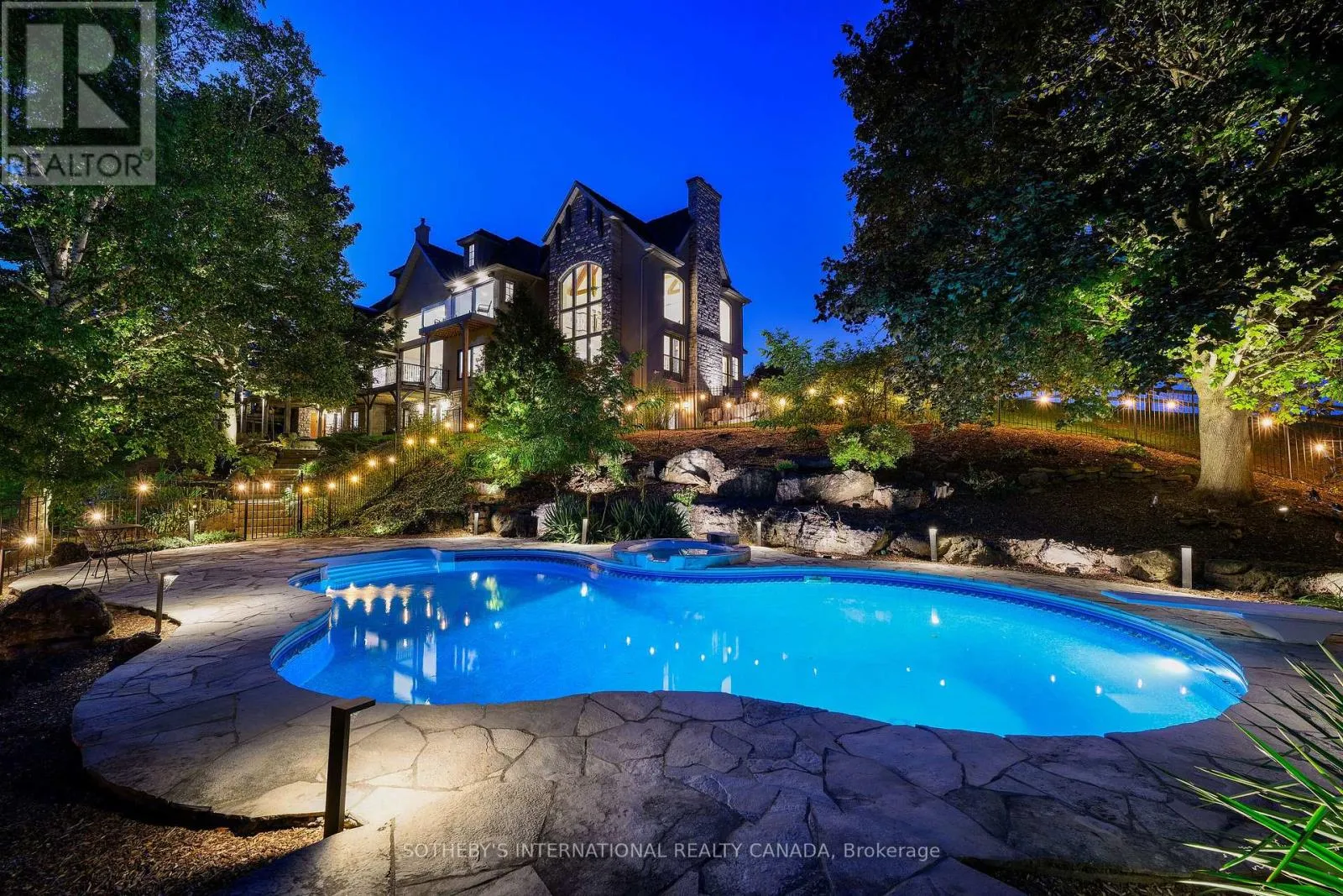 Cross Streets: Guelph Line to 8 Side Road, below Twiss Road. ** Directions: 8 Side Road & Twiss Road. **A true architectural tour de force!** This Burlington countryside estate redefines luxury living - where timeless craftsmanship meets breathtaking modern design. Set amid the rolling hills of rural Burlington, this beyond-spectacular residence blends rustic artistry with sophisticated refinement. Reimagined by Baeumler Quality Construction, the home features Mortise and Tenon joinery throughout, including the major framing - a rare and costly technique mastered by only a select few tradespeople. This traditional method delivers remarkable strength, precision, and enduring beauty, visible in every beam and joint. Inside, an airy Scandinavian-inspired interior unfolds beneath 30-foot vaulted ceilings, with exposed wood beams, expansive glass walls and doors, and a striking Indiana Limestone fireplace mantel that anchors the great room in warmth and grandeur. Luxury abounds in every detail: Richard & Levesque custom cabinetry, gourmet appliances, designer finishes, heated floors, a home theatre, two laundry rooms, and a walk-out lower level. Enhanced with Smart Home automation and a Generac 24 kW natural gas backup generator, this home offers seamless comfort and peace of mind. Outdoors, discover a private backyard sanctuary with a sprawling entertaining deck, meticulous landscaping, a pool, pond, and a floodlit hill for tobogganing. Enjoy unobstructed panoramic views of the Toronto skyline, Niagara Escarpment, and Rattlesnake Point - a breathtaking canvas. Nestled in prestigious Kilbride, this remarkable property offers the tranquility of country living with quick city access - just 45 minutes to Toronto and minutes from Lowville Golf Club. North Burlington Tennis Club, and renowned hiking trails. A residence of unparalleled artistry and integrity, this estate stands as a true masterpiece, not simply built, but artfully created. (id:27476)