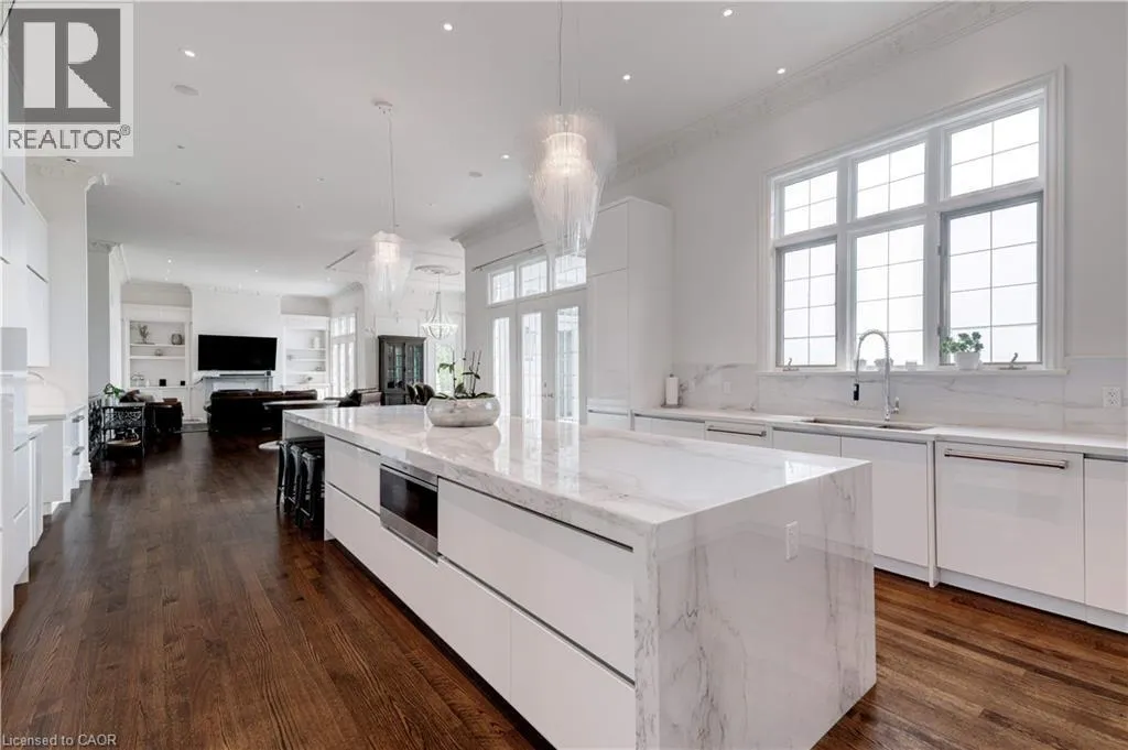 South on Appleby to Lakeshore rd. Right on Lakeshore. Welcome to 4410 Lakeshore Road, a stunning 1.2-acre lakefront estate in Burlingtonâs sought-after Shoreacres neighbourhood. This custom-built bungalow offers 5 bedrooms (3 on the main level, 2 on the lower level) and 4 bathrooms, with 4,365 sq. ft. of living space on the main floor alone. Inside, you'll find 12-foot ceilings, detailed crown mouldings, and an elegant yet inviting layout. The expansive great room and chefâs kitchen are perfect for entertaining, while the main-floor primary suite provides stunning lake views. The walk-up lower level features a second kitchen, spacious recreation room, and additional bedroomsâideal for guests or multigenerational living. Step outside to your private oasis: a sparkling inground pool, lush landscaping, and direct access to Lake Ontario, perfect for serene mornings and captivating sunsets. With a detached 2-car garage and parking for 30+, this property offers the ultimate in both luxury and practicality. Located near top-rated schools, parks, and upscale amenities, this exclusive estate combines privacy with convenience in one of Burlington's finest communities. (id:27476)