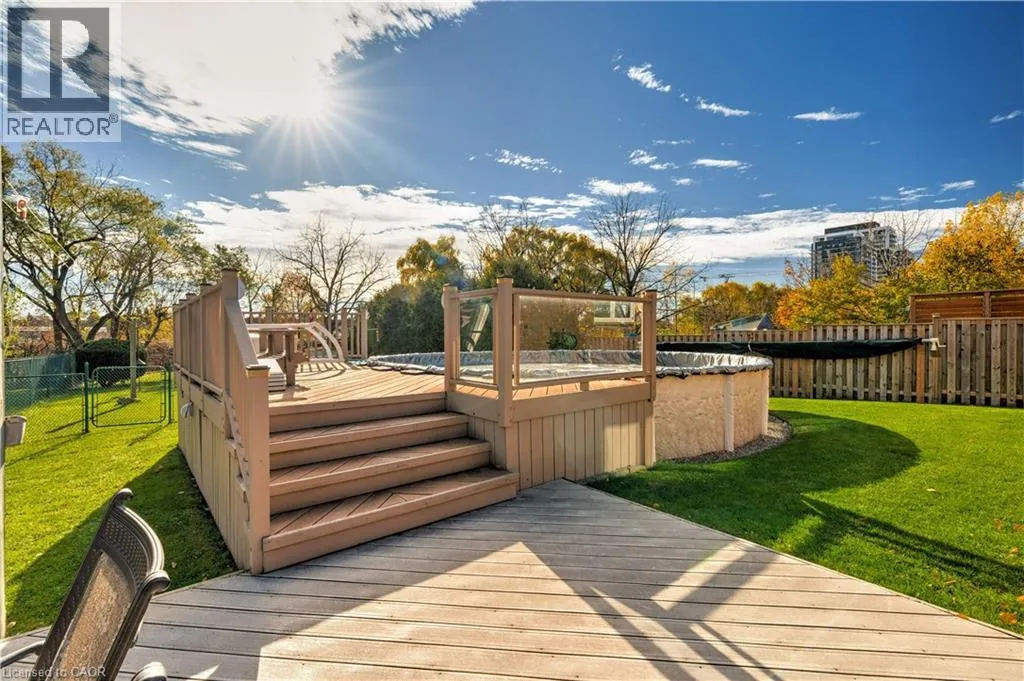 Glenwood School Dr. to Phyllis to Fassel Welcome to a truly move-in ready and meticulously maintained detached bungalow in desirable Burlington, offering ultimate convenience and exceptional quality with fantastic curb appeal, great landscaping, attached garage and an above ground heated salt water pool. Step inside the spacious 1356 sq.ft. (just main level), featuring three good-sized bedrooms and a layout designed for effortless living. The heart of the home is a gourmet kitchen, beautifully updated with custom KitchenCraft cabinets, stunning Cambria quartz countertops, and a suite of high-end Bosch appliances. The main floor is completed by an updated 4-piece bathroom, featuring Corian vanity and elegant porcelain shower and floors. The practical layout continues on the lower level, which was fully renovated in 2025. This versatile space offers a bright recreation room, a large family room, a dedicated office space, a modern 3-piece bathroom, and spacious cold room or storage, all designed with the potential for an in-law suite with an optional side entrance. Set on an expansive 215-foot deep lot, the backyard with above-ground, salt water pool, composite decking, covered patio and gas BBQ hook-up is perfect for family fun and entertaining. This home is featuring major mechanical and structural upgrades for the new ownerâs peace of mind: Aluminum roof (no rust) with a transferable warranty, all new mechanicals in 2025, including furnace with an ERV/HRV system, modern heat pump, and an owned water heater. Triple-pane windows throughout for superior noise reduction and energy efficiency. Other important updates include an all new eavestrough (2021), concrete driveway, front porch and walkway around the back, new pool filtration unit, main floor doors and handles, water shutoff valves and more. With just a short walk to the Fairview GO station, shopping and countless amenities, this property truly defines smart and convenient quality living. (id:27476)