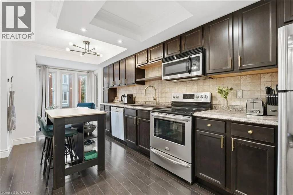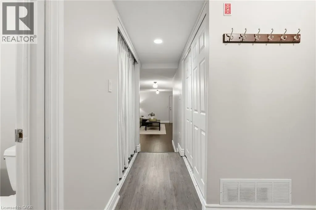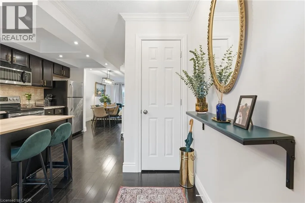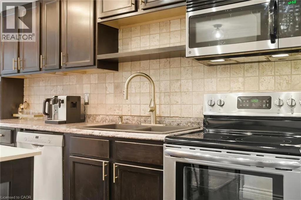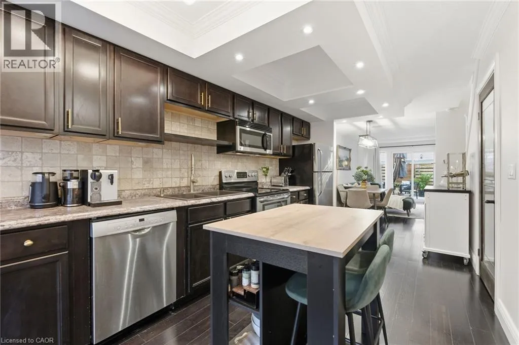 Fairview Street to Maple Ave Welcome to 895 Maple Avenue Unit 614, tucked away in one of Burlingtonâs most desirable pockets, this bright and airy Brownstone townhome strikes the essence of easy, connected living. Set back within the complex for added privacy, it offers spacious bedrooms, abundant natural light, and a thoughtful, carpet-free design that feels fresh and modern. The open-concept main floor is bright and inviting, anchored by a cozy wood-burning fireplace. The kitchen impresses with ample counter space, stainless steel appliances, and updated hardware. The living room opens onto a brand new private, fenced patio, perfect for your morning coffee or weekends surrounded by family and friends. Inside, a neutral palette and updated finishes create an easy sense of calm; all thatâs left to do is move in and make it your own. Upstairs, youâll find two generous bedrooms filled with natural light and a 4-piece bathroom. On the lower level: a large full-sized recreation room offers incredible flexibility - not every unit in the complex has this expansive lower level. Whether you imagine a home office, gym, or cozy family space, this room adds exceptional value and versatility. Perfectly positioned across from Mapleview Mall and moments from downtown Burlington, Spencer Smith Park, and the waterfront, this location offers everything you love about Burlington living: walkable amenities, access to transit and the GO Station, and a sense of community thatâs hard to replicate. If youâve been waiting to make a move into this neighbourhood - and into one of its most sought-after layouts; this is the one. (id:27476)