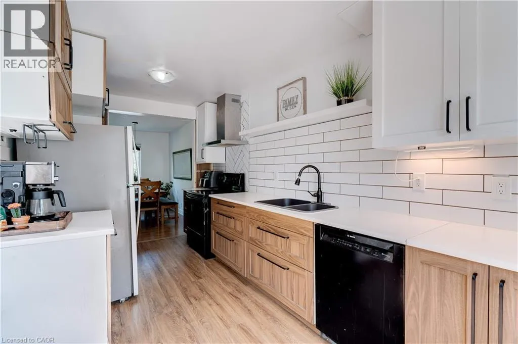 Duncaster - Coldstream - Leominster NEW PRICE! Welcome to this wonderful detached family home, offering a comfortable layout, practical features, thoughtful modern updates with an IN-LAW SUITE! The main level includes an updated kitchen with plenty of cabinetry and counter space-great for everyday cooking or hosting guests. Upstairs, you'll find three spacious bedrooms, including a large primary suite with ensuite privileges, designed to support easy family living.The finished lower level is a standout, offering flexible space complete with a second full kitchen, a 3-piece bathroom, and a cozy electric fireplace framed by a striking stone feature wall. With a walkout to the private backyard, this level is ideal for extended family, in-laws, or guests.Outside, enjoy a rare triple-car driveway, a generous side yard, and a private patio perfect for outdoor dining and summer gatherings. The attached garage with inside entry adds everyday convenience.Set in a highly desirable, family-friendly neighbourhood, this home is just a short walk to Brant Hills Elementary School and close to parks, shopping, and community amenities. A great opportunity in an ideal location! (id:27476)