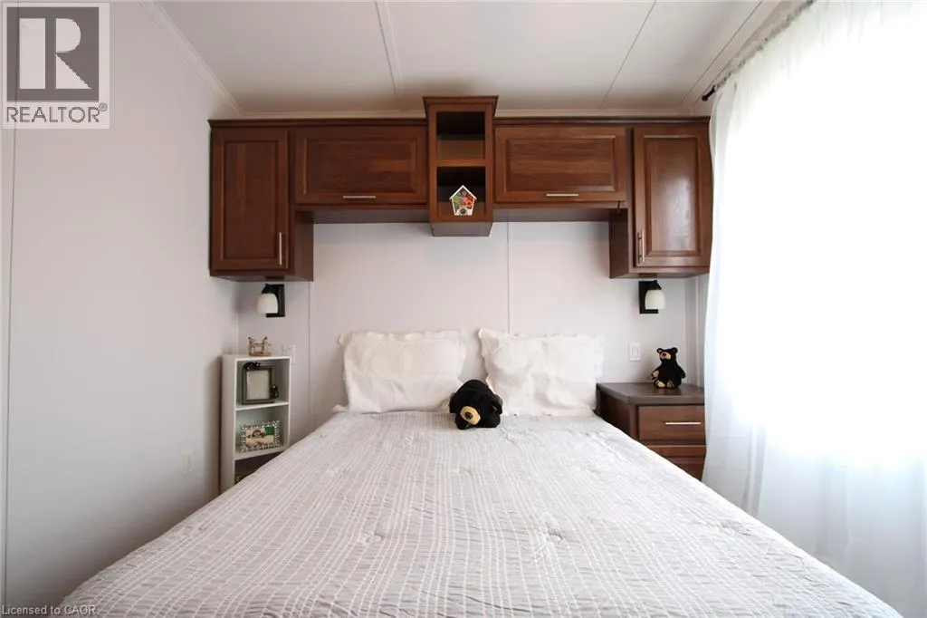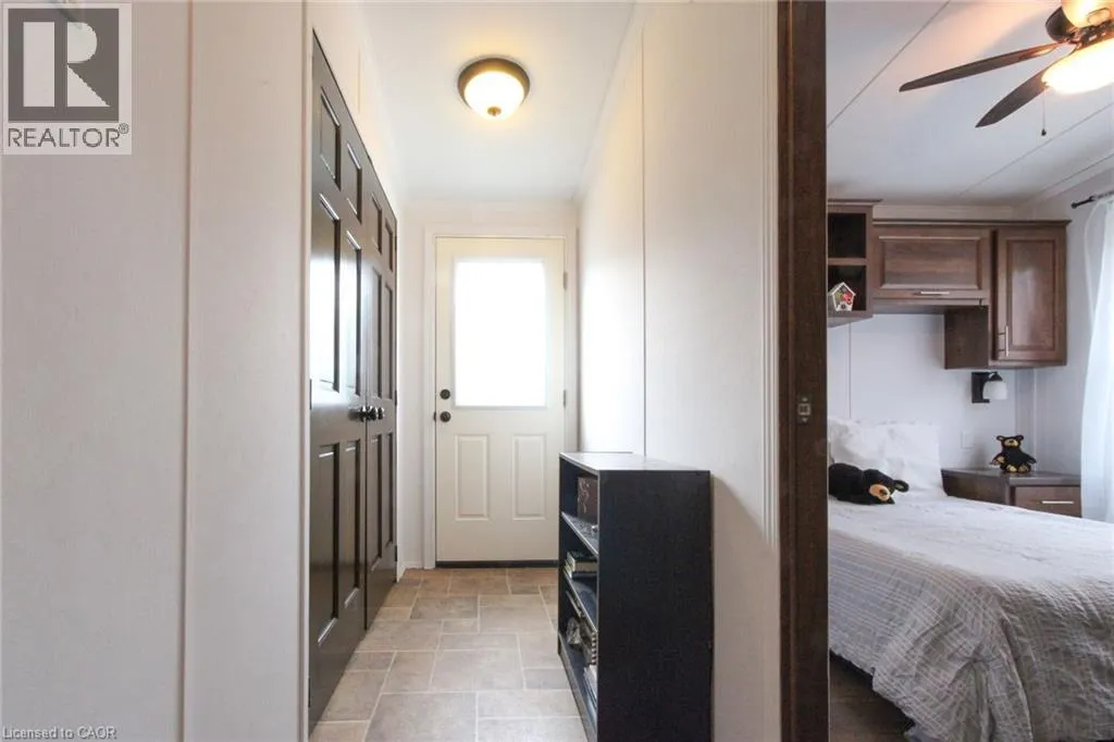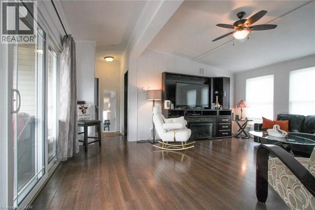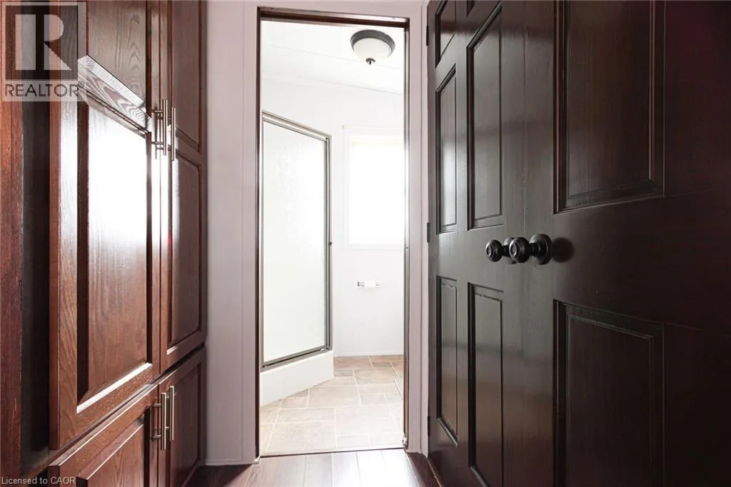 from concession 6, go east to the end. T/R on Milburough Line. OR from Britannia, go west & T/L on Milborough Line. Ccontinue straight into trees. Enter gate (must have code). Keep right as you enter, 4th street on left is Tamarack w/ Visitor parking Welcome to Lost Forest! Discover a low-maintenance lifestyle in this stunning custom designed 2 bedroom, 2-bath modular home with cathedral ceilings and stunning family sized kitchen with warm decor and a flowing layout. Located in the desirable gated community of Lost Forest Park and built just 12 years ago, it offers 1,046 sq. ft. of bright, open-concept living space. This home combines modern comfort with a welcoming design in a gorgeous setting that far exceeds other types of ownership at an affordable price. The spacious kitchen features plenty of cabinetry including pull out drawers in the pantry, a large dining area and opening to a cozy living room complete with an entertainment wall unit with electric fireplace. Enjoy your morning coffee or relax at sunset on the large deck with 3 access doors to the your home including sliding doors that lets the natural light brighten your home. There is ample storage within plus a handy oversized garden shed to utilize as well. Additional highlights include a built in desk in the 2nd br, tall toilets, solid wood doors, a generator and parking for 2 vehicles on a concrete pad. Lost Forest Park residents enjoy outstanding amenities including an inground pool, community centre/pavilion, pickle ball court, an area to enjoy horse shoes, a play area for the kids and walking trails. The low monthly fee conveniently covers the land lease, water, septic, property taxes and year-round maintenance. Located just minutes from shopping in Waterdown and nearby Carlisle, dining, golf courses and major highways. This is the perfect blend of comfort, convenience, and community. Make the move today and start living the lifestyle you deserve! (id:27476)