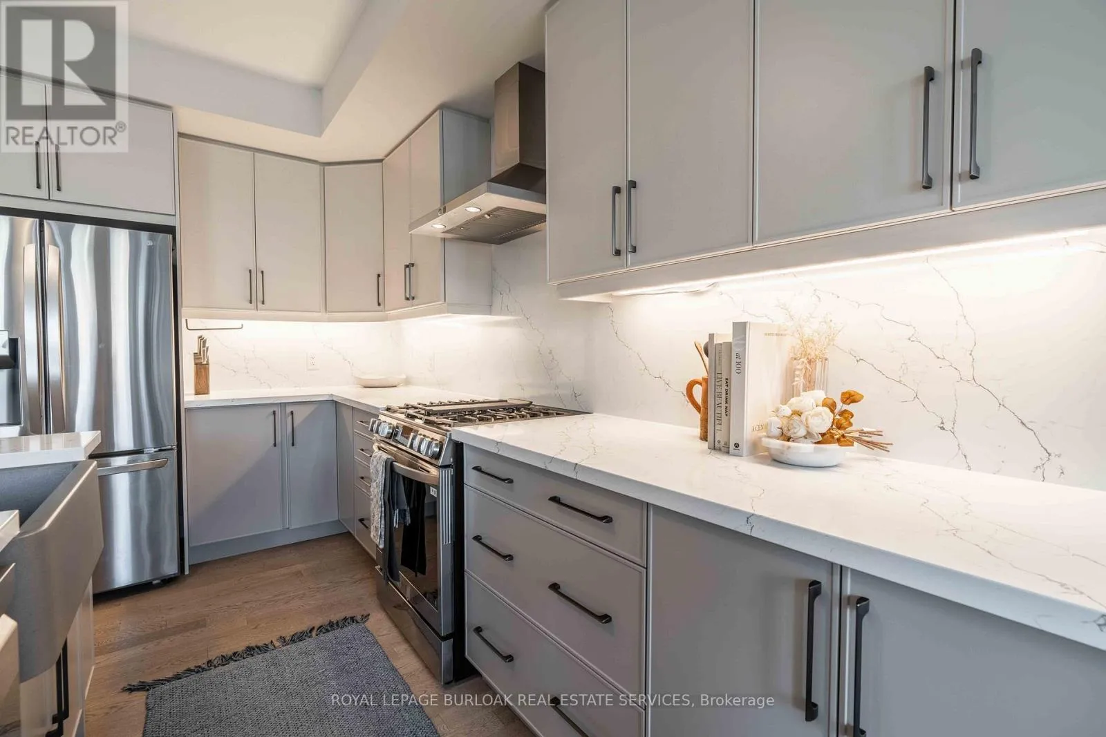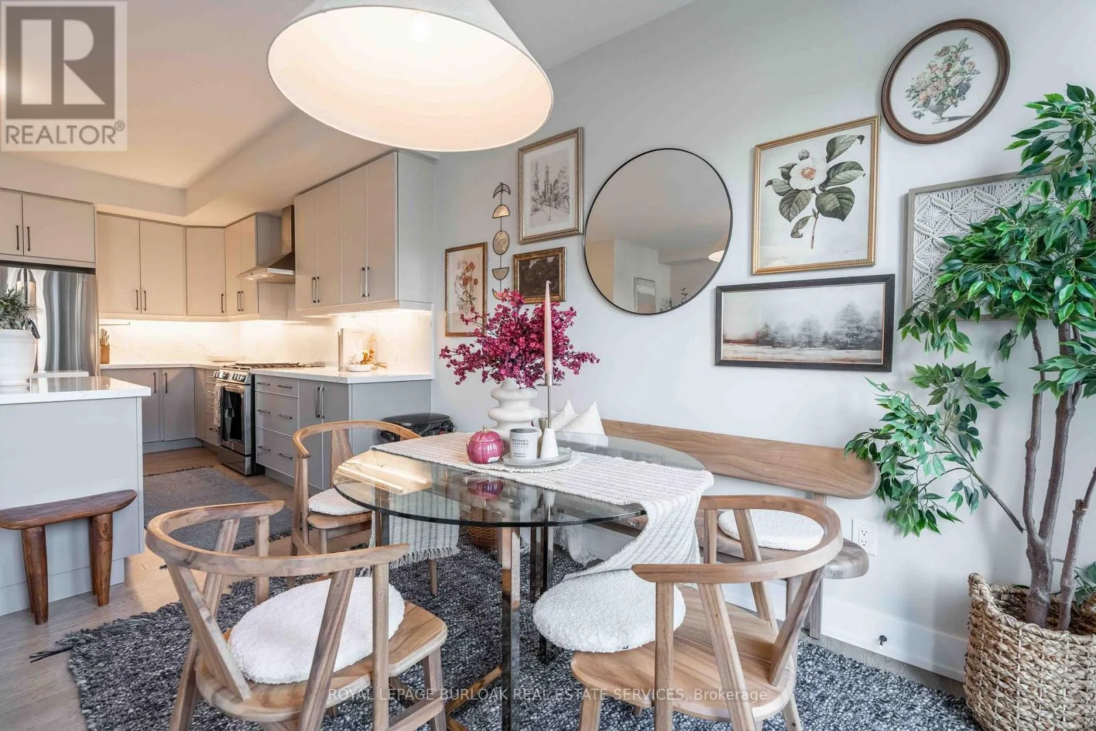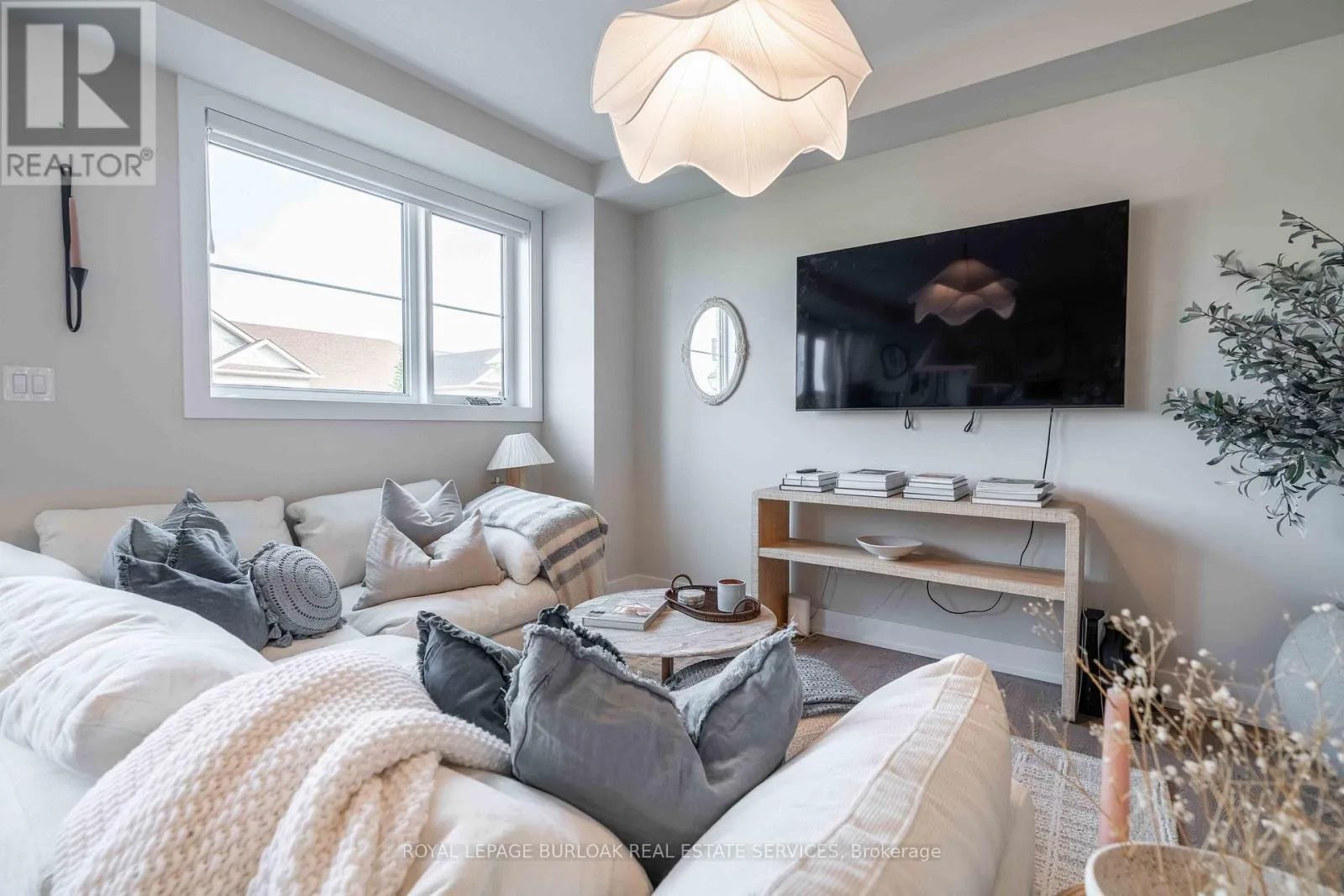 Cross Streets: Appleby Line / Taywood Dr. ** Directions: Appleby Line to Taywood Dr to Turnberry Rd. Discover refined living in this beautifully updated 3+1 bedroom townhome, nestled on a quiet street in Burlington's prestigious Millcroft golf community. The sun-drenched, open-concept main floor features wide-plank engineered hardwood that flows seamlessly throughout. The designer kitchen is a showstopper, boasting quartz countertops, an impressive 8-ft island with seating, a sleek subway tile backsplash, and premium stainless steel appliances. A dedicated dining area provides the perfect setting for family meals or entertaining guests. Step out to the private backyard, ideal for summer BBQs and quiet relaxation. Upstairs, the spacious primary retreat is a true haven with a large picture window, walk-in closet, and a luxurious 4-piece ensuite complete with quartz vanity, a soaker tub, and a glass shower. Two additional bedrooms share a stylish 4-piece bath, while the second-floor laundry area accommodates full-size side-by-side machines for added convenience. The fully finished lower level adds versatility with a cozy rec room, 3-piece bath, and a true guest bedroom- perfect for visitors, a teen retreat, or home office. Additional highlights include inside garage entry, smart thermostat, rough-in for an EV charger, and snow removal and landscaping in all common areas taken care of for you. Enjoy a premium location just minutes from Millcroft Golf Club, top-rated schools, beautiful parks, shopping, and quick access to HWY 407 & 403. Move-in ready and thoughtfully upgraded, this home is the perfect blend of elegance and function. Welcome to Millcroft living. (id:27476)