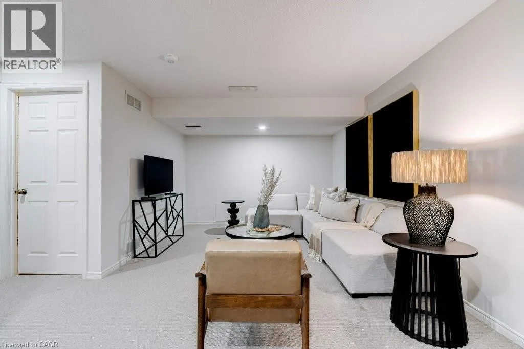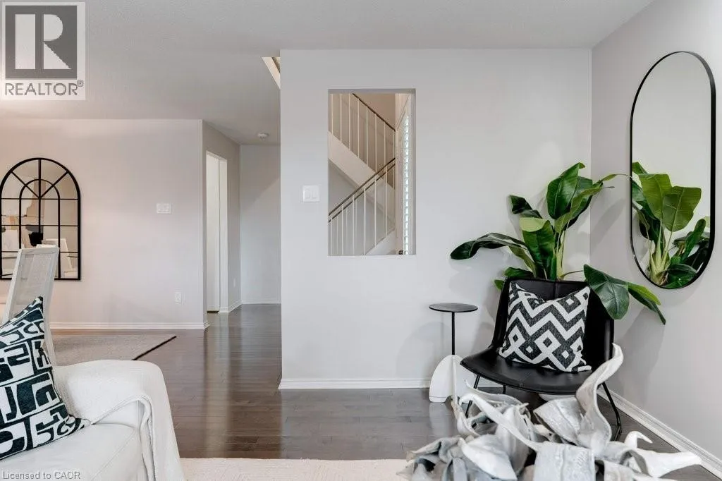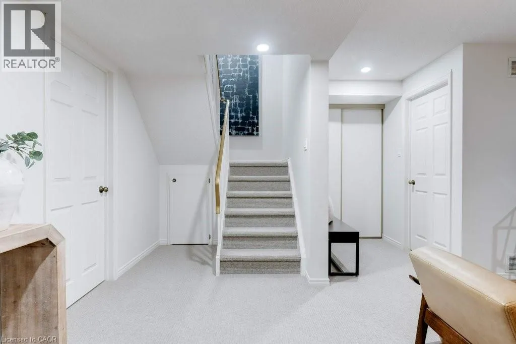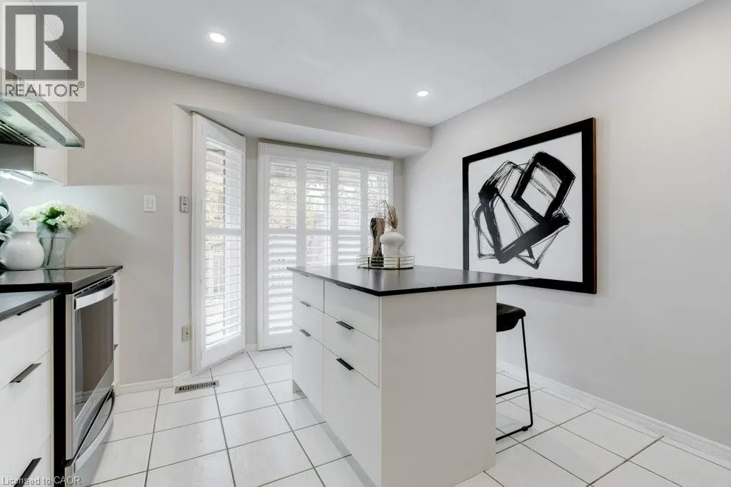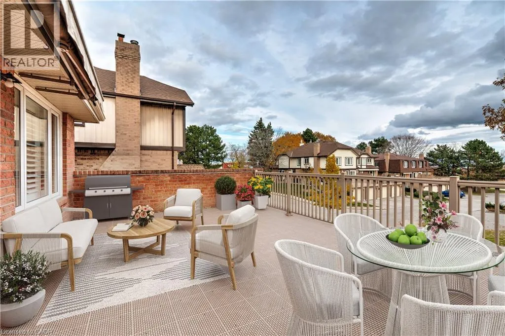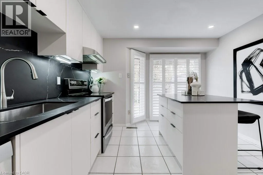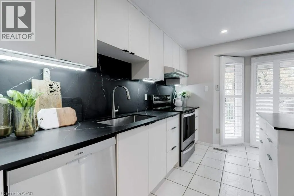 Upper middle & Brant Welcome to this beautifully updated end-unit condo townhouse in one of Burlington's most desirable pockets - offering over 1,400 sq. ft. of finished living space with lake views including a fully finished lower level. Perfectly positioned for comfort and convenience, this home blends modern updates with an inviting layout ideal for entertaining and everyday living.The bright and airy main floor showcases a spacious living area with large windows and a walkout to your massive private terrace. With a hard gas line for BBQ and lake views, this outdoor space feels like an extension of your living area - perfect for morning coffee, summer gatherings, or a morning sunrise. The kitchen has been fully renovated, featuring sleek two-tone cabinetry, black stone countertops, stainless steel appliances, under-cabinet lighting, and a clean, modern design that ties seamlessly into the rest of the home. A stylish powder room completes the main level.Upstairs, discover two spacious bedrooms including a primary retreat with a walk-in closet and a full bathroom. The second bedroom offers generous space, natural light perfect for guests or a home office.The finished lower level adds valuable bonus living space with a cozy recreation room, laundry area, and direct access to the garage.This home's end-unit positioning provides extra privacy and natural light throughout. Located in a quiet, well-maintained complex surrounded by mature trees, just minutes from the lake, go train, parks, trails, top-rated schools, shopping, and highway access - this is Burlington living at its best. Whether you're a first-time buyer, down-sizer, or young professional, this stylish and spacious home offers the perfect balance of comfort, convenience, and lifestyle. (id:27476)