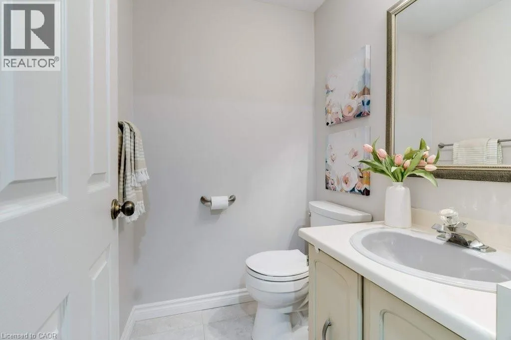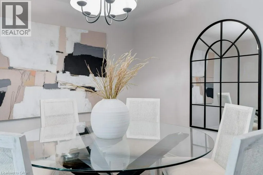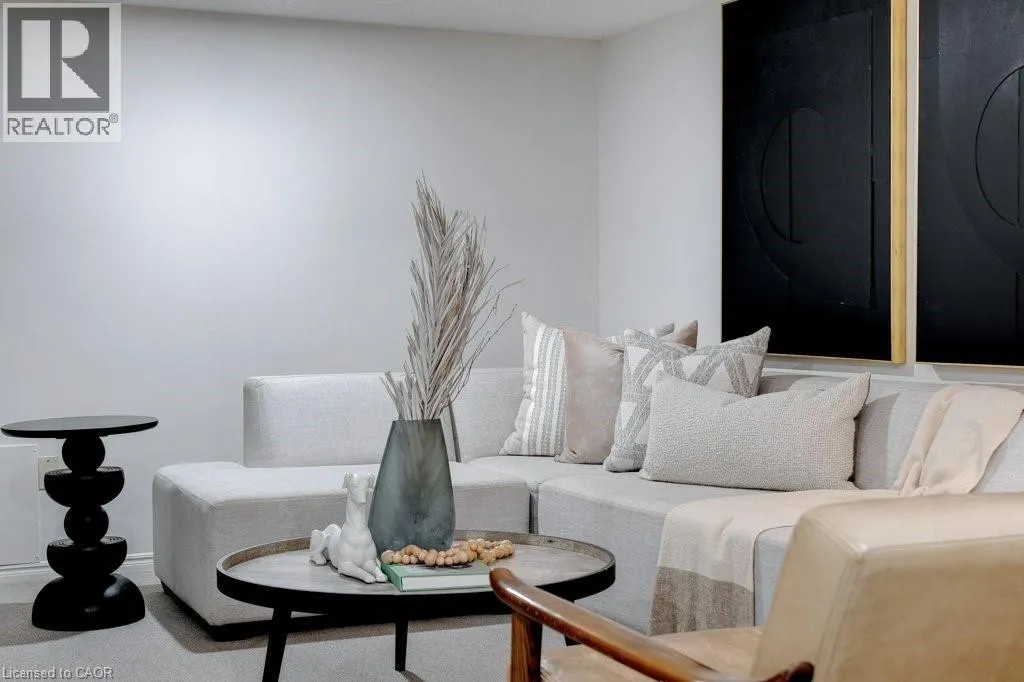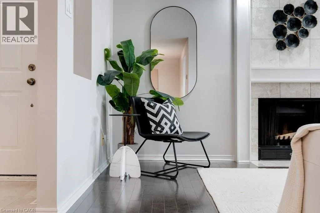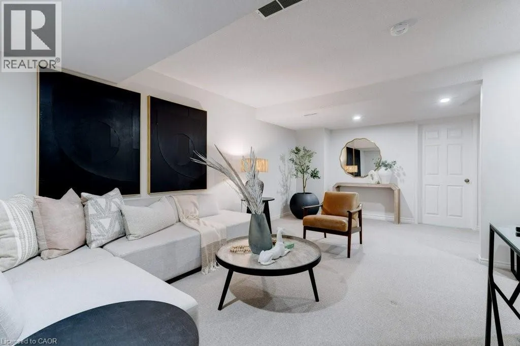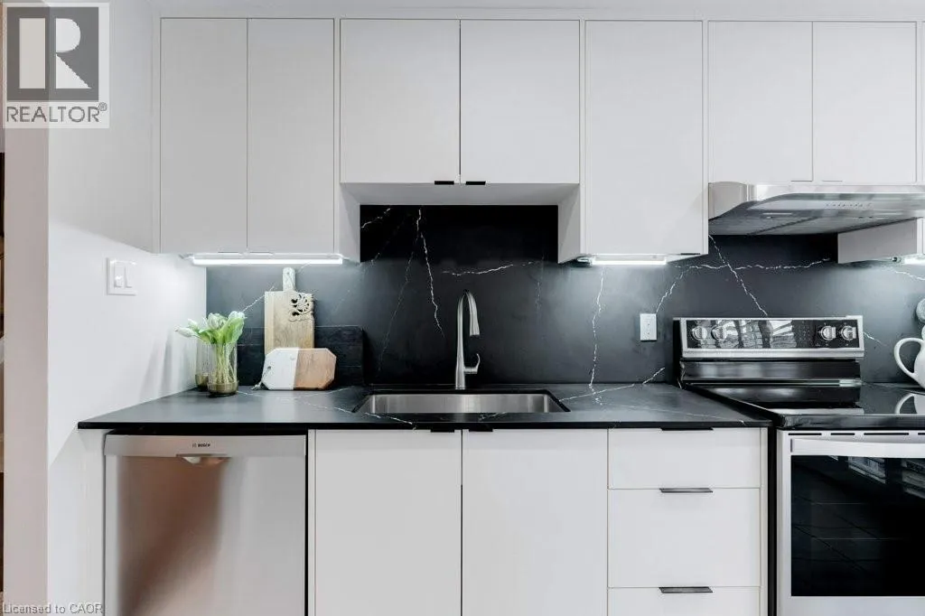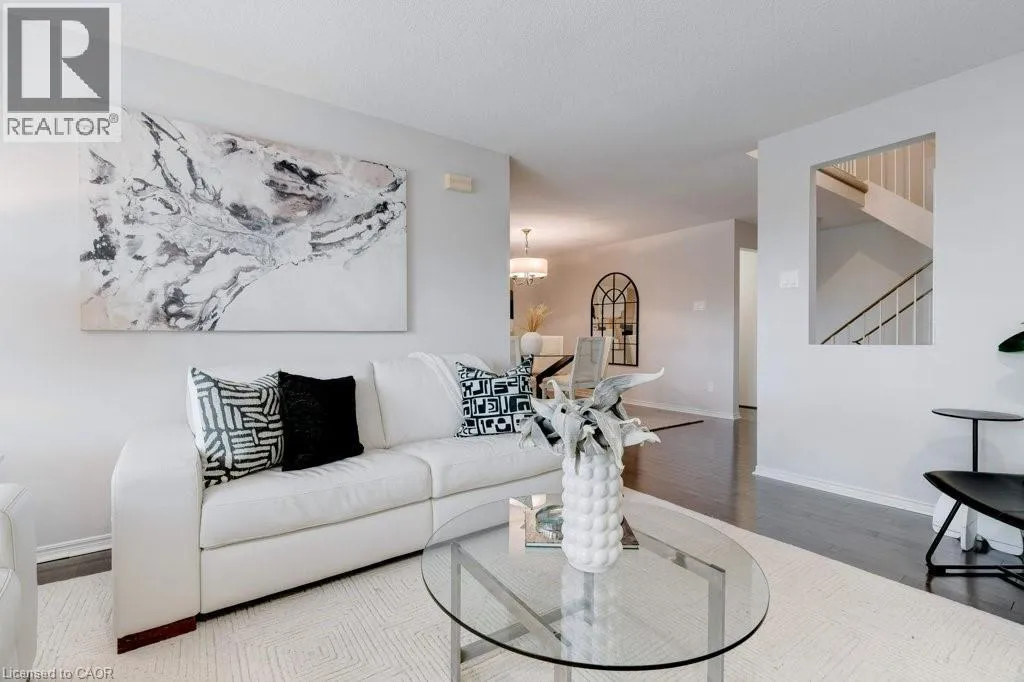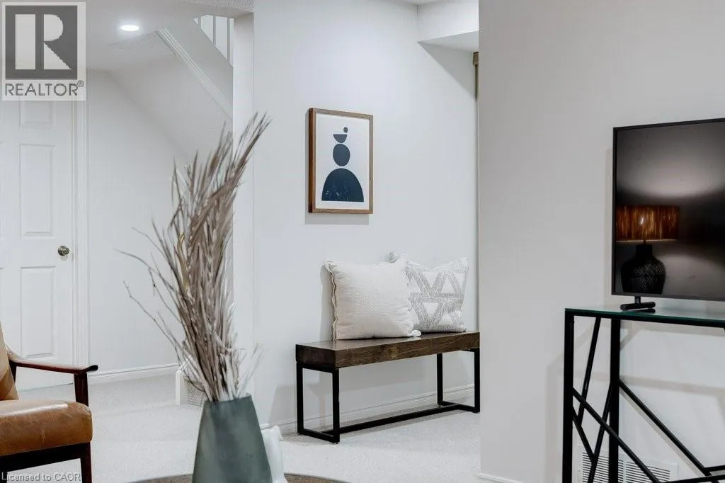 Upper middle & Brant Welcome to this beautifully updated end-unit condo townhouse in one of Burlington's most desirable pockets - offering over 1,400 sq. ft. of finished living space with lake views including a fully finished lower level. Perfectly positioned for comfort and convenience, this home blends modern updates with an inviting layout ideal for entertaining and everyday living.The bright and airy main floor showcases a spacious living area with large windows and a walkout to your massive private terrace. With a hard gas line for BBQ and lake views, this outdoor space feels like an extension of your living area - perfect for morning coffee, summer gatherings, or a morning sunrise. The kitchen has been fully renovated, featuring sleek two-tone cabinetry, black stone countertops, stainless steel appliances, under-cabinet lighting, and a clean, modern design that ties seamlessly into the rest of the home. A stylish powder room completes the main level.Upstairs, discover two spacious bedrooms including a primary retreat with a walk-in closet and a full bathroom. The second bedroom offers generous space, natural light perfect for guests or a home office.The finished lower level adds valuable bonus living space with a cozy recreation room, laundry area, and direct access to the garage.This home's end-unit positioning provides extra privacy and natural light throughout. Located in a quiet, well-maintained complex surrounded by mature trees, just minutes from the lake, go train, parks, trails, top-rated schools, shopping, and highway access - this is Burlington living at its best. Whether you're a first-time buyer, down-sizer, or young professional, this stylish and spacious home offers the perfect balance of comfort, convenience, and lifestyle. (id:27476)
