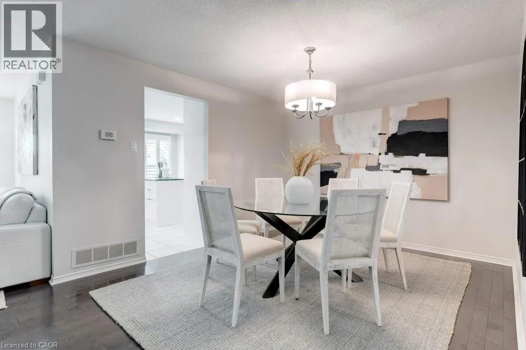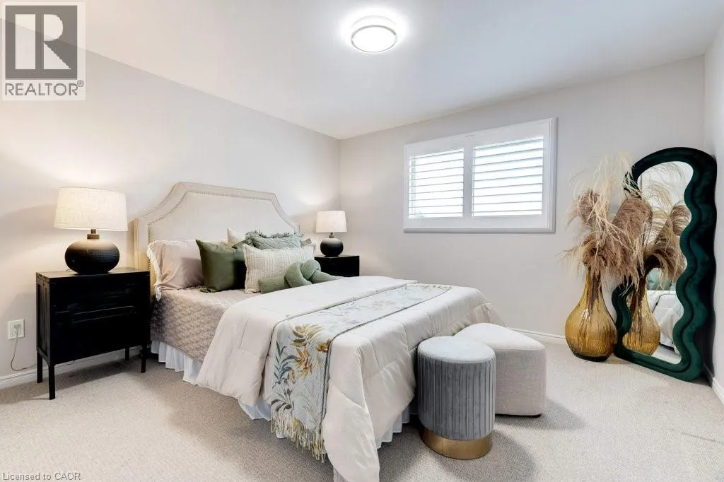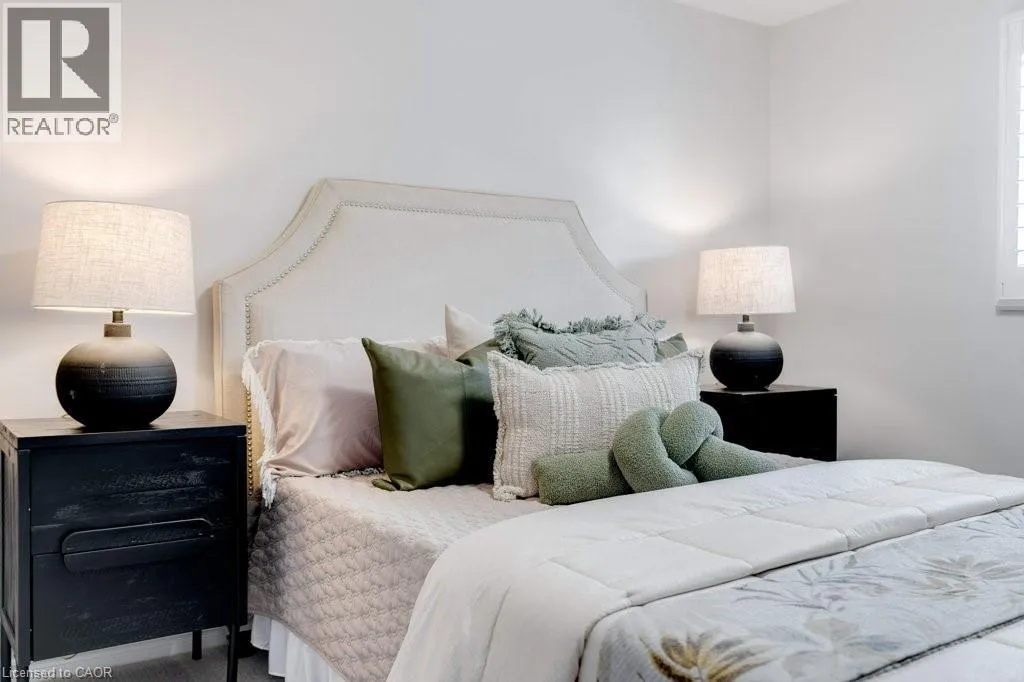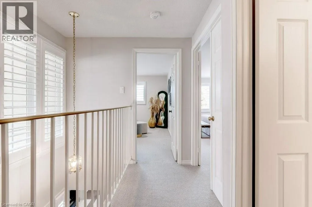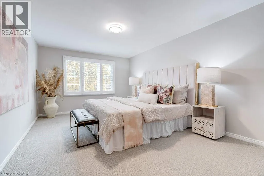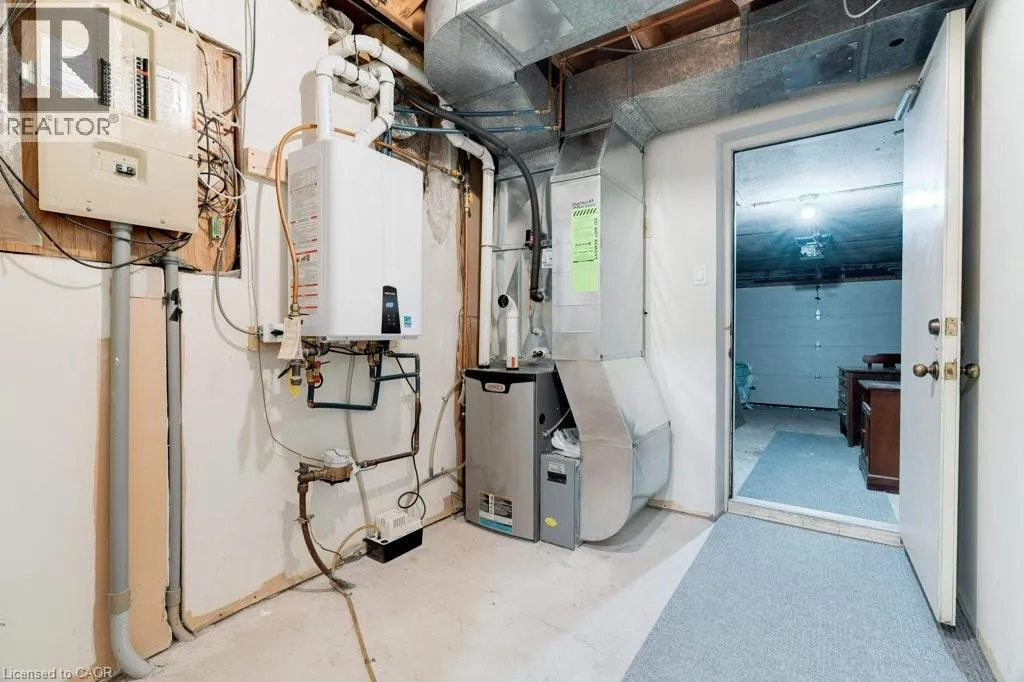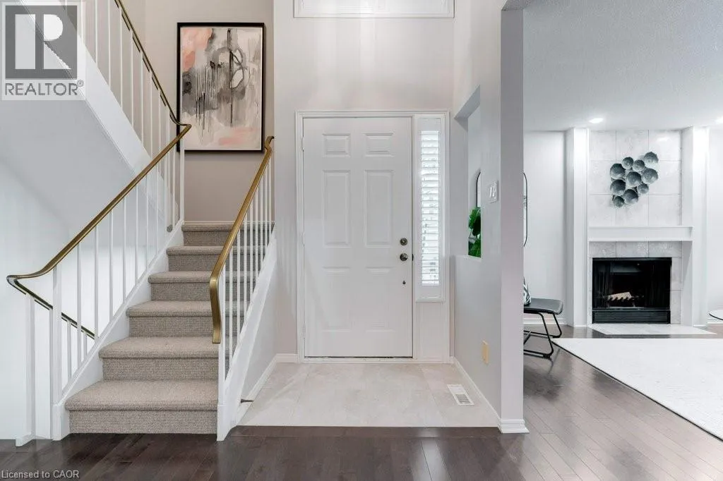 Upper middle & Brant Welcome to this beautifully updated end-unit condo townhouse in one of Burlington's most desirable pockets - offering over 1,400 sq. ft. of finished living space with lake views including a fully finished lower level. Perfectly positioned for comfort and convenience, this home blends modern updates with an inviting layout ideal for entertaining and everyday living.The bright and airy main floor showcases a spacious living area with large windows and a walkout to your massive private terrace. With a hard gas line for BBQ and lake views, this outdoor space feels like an extension of your living area - perfect for morning coffee, summer gatherings, or a morning sunrise. The kitchen has been fully renovated, featuring sleek two-tone cabinetry, black stone countertops, stainless steel appliances, under-cabinet lighting, and a clean, modern design that ties seamlessly into the rest of the home. A stylish powder room completes the main level.Upstairs, discover two spacious bedrooms including a primary retreat with a walk-in closet and a full bathroom. The second bedroom offers generous space, natural light perfect for guests or a home office.The finished lower level adds valuable bonus living space with a cozy recreation room, laundry area, and direct access to the garage.This home's end-unit positioning provides extra privacy and natural light throughout. Located in a quiet, well-maintained complex surrounded by mature trees, just minutes from the lake, go train, parks, trails, top-rated schools, shopping, and highway access - this is Burlington living at its best. Whether you're a first-time buyer, down-sizer, or young professional, this stylish and spacious home offers the perfect balance of comfort, convenience, and lifestyle. (id:27476)