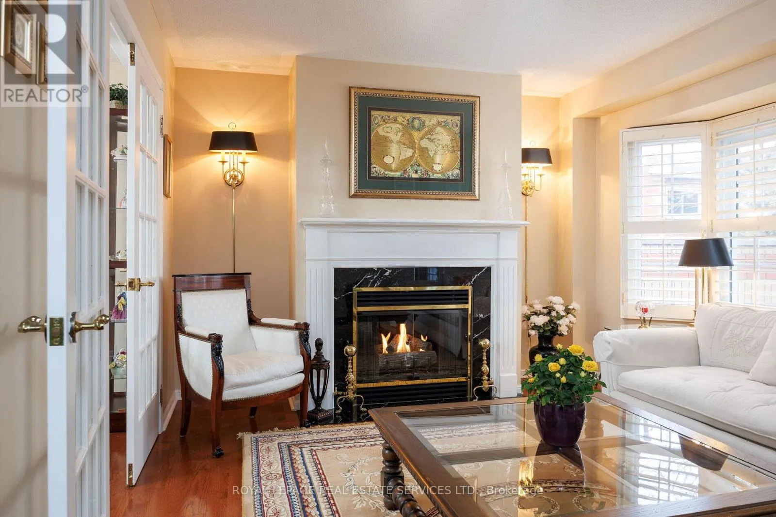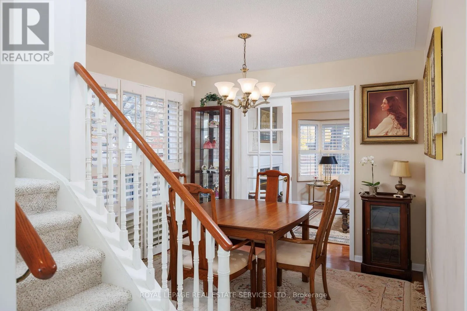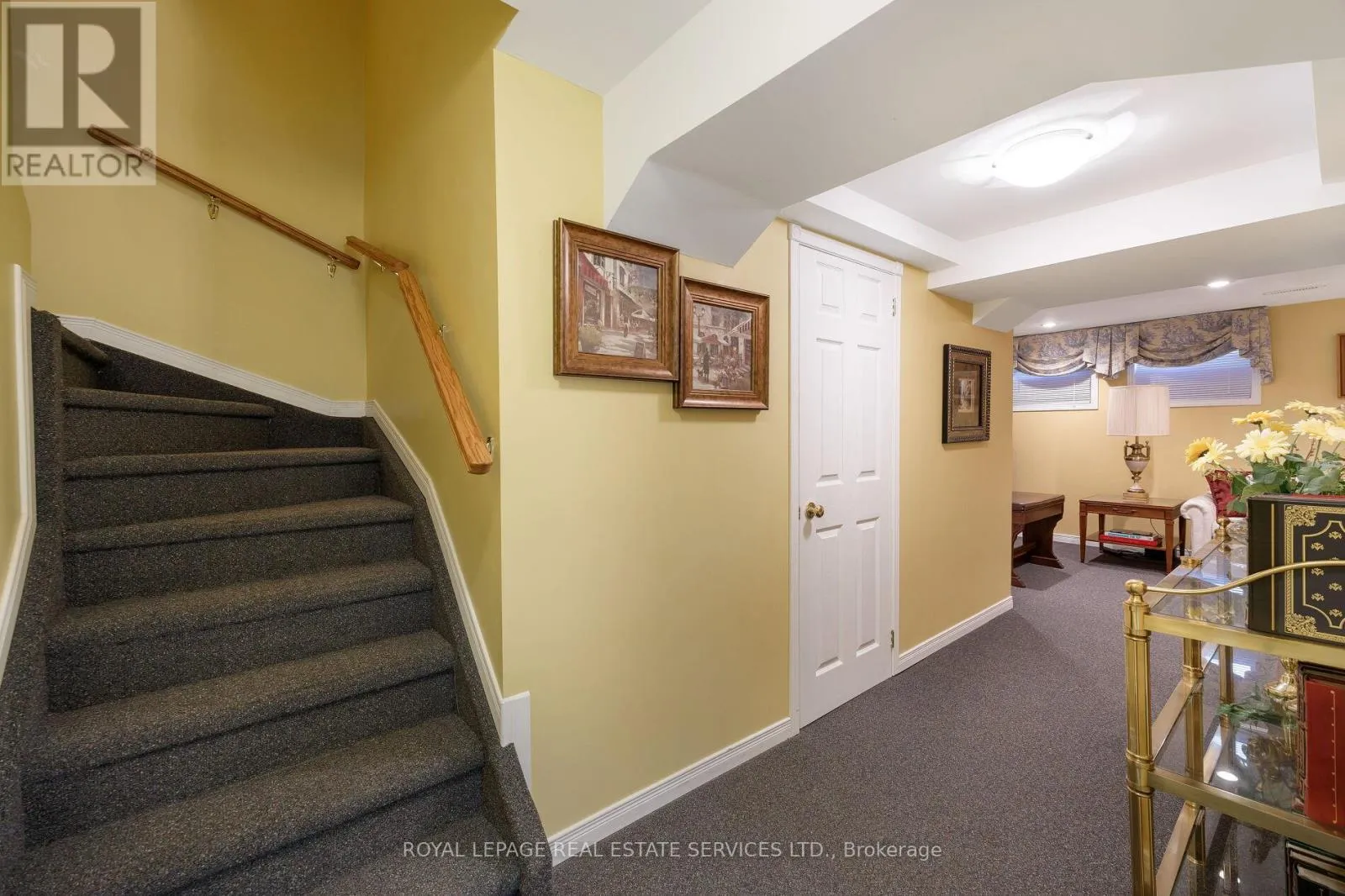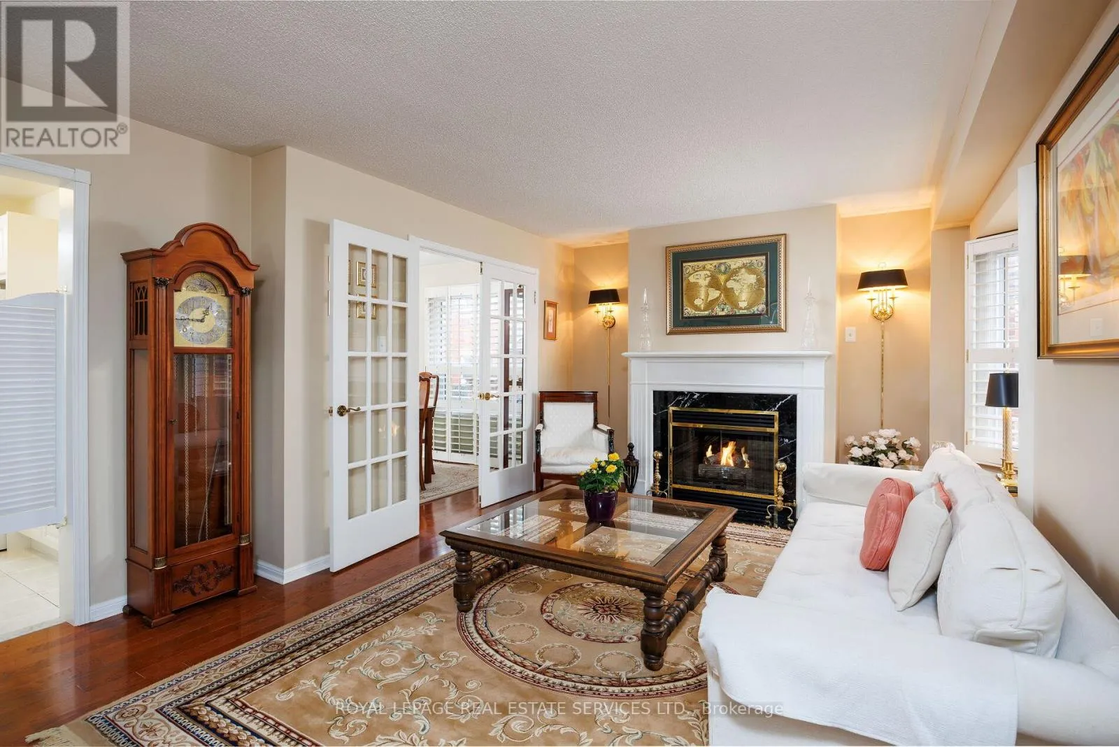 Cross Streets: Brant & Hazelton. ** Directions: Dundas- Brant- Hazelton. Welcome to Tyandanga - a serene Burlington neighbourhood known for mature trees, green space, wooded ravines, huge parks & the prestigious Tyandaga Golf Course. Nature lovers will appreciate the nearby Niagara Escarpment, Bruce Trail & conservation areas offering endless outdoor adventure. Enjoy this quiet, established community that feels tucked away in nature, yet is close to shopping, restaurants, & services, & offers quick access to the QEW & 407 ETR for commuters. This highly desirable end-unit townhome is part of a small, beautifully maintained enclave of only 34 homes. Set on a premium private lot, it features a rarely offered attached double garage with inside entry, 3 bedrooms, 2.5 bathrooms, extra windows, & approx. 1,629 sq. ft. of light-filled living space plus a professionally finished basement. Hardwood floors on 2 levels, French doors, 2 gas fireplaces, & California shutters contribute to timeless elegance & there is fresh paint in the entrance, kitchen, & 2 bedrooms. The spacious living room, centred around a gas fireplace, opens to a private patio surrounded by lush gardens, brick privacy walls, a mature tree, & metal fencing with a gate access to green space. French doors connect the living & dining room - perfect for formal entertaining. The bright white kitchen offers ample cabinetry, an upper china cabinet, Corian counters, white appliances (including a new stove), & a breakfast area. The second bedroom with a gas fireplace is located on the mid-upper level; 2 more bedrooms & 2 full baths are on the upper level. The freshly painted primary suite features large windows with California shutters, a walk-in closet & a 4-piece ensuite with a soaker tub & separate shower. The finished lower level includes a spacious recreation room with pot lights & a large laundry room with extensive cabinetry & a new Maytag washer & dryer. (id:27476)