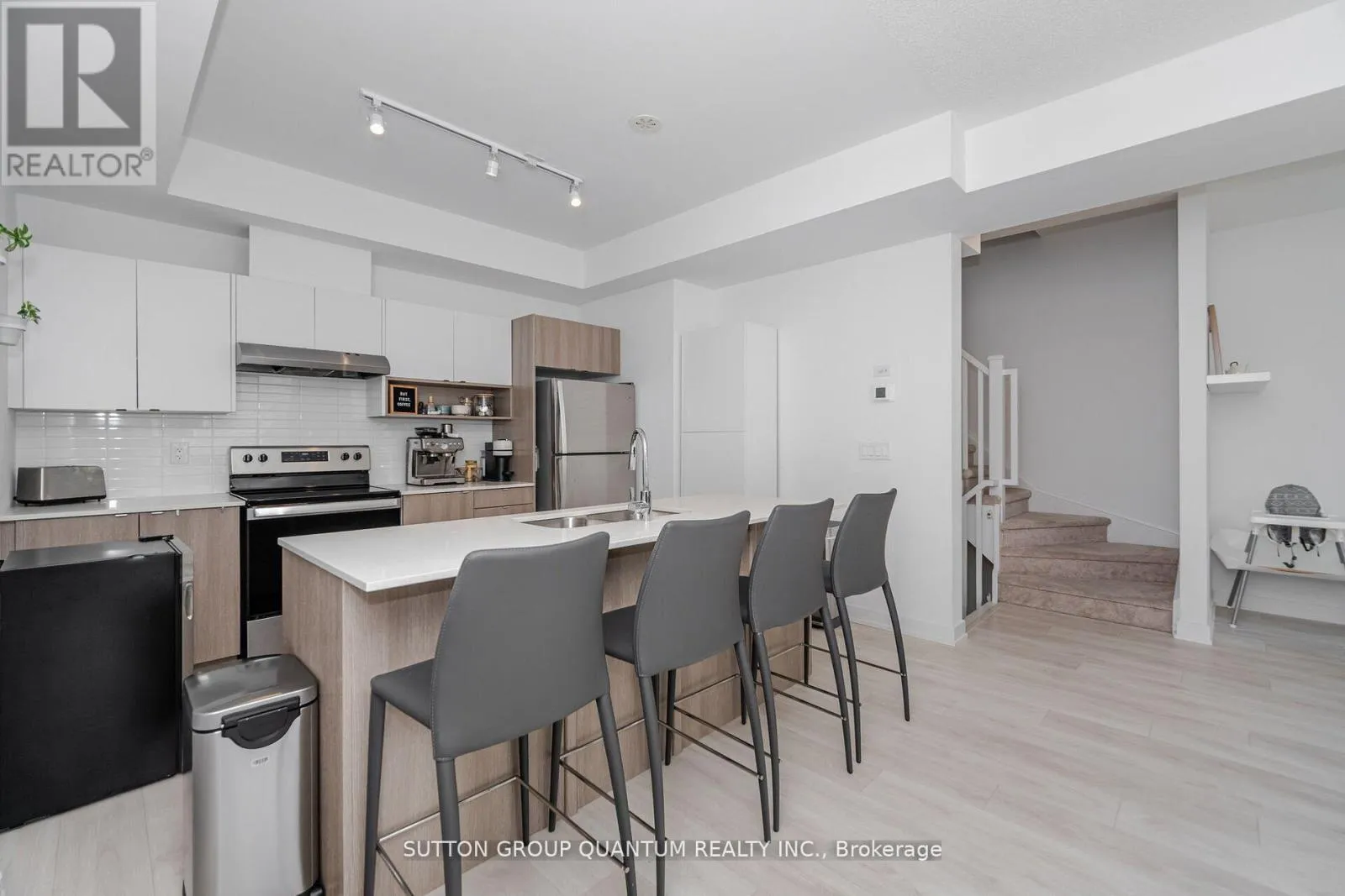 Waterdown Rd/Masonry Crt Modern 3-Storey Townhome in Prime Aldershot Location! Welcome to this beautifully designed 2-bedroom, 2.5-bathroom townhome offering modern finishes and a thoughtful layout across three levels. The home features plank laminate flooring throughout, with broadloom only on the stairs, adding both comfort and style. Enjoy 9-footceilings on the open-concept main floor, front foyer, an eat-in kitchen with quartz countertops, stainless steel appliances, a centre island, and a walk-out balcony from the dining area perfect for morning coffee or evening relaxation.The spacious primary bedroom includes a private ensuite, while the rooftop terrace offers anideal space for outdoor entertaining. Additional features include inside access to the garage and low-maintenance living. Located just minutes from the lake, downtown Burlington, Aldershot GO Station, great schools, major highways, parks, shopping, and more. A perfect blend of comfort, convenience, and contemporary living! (id:27476)