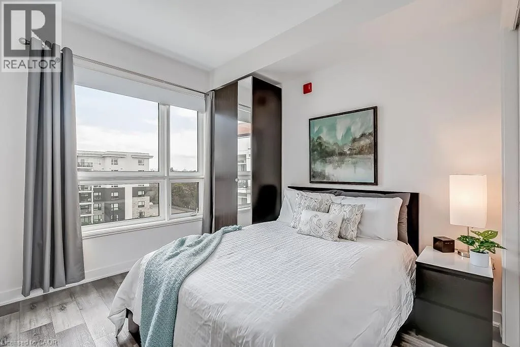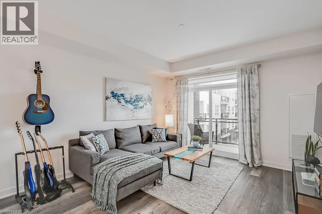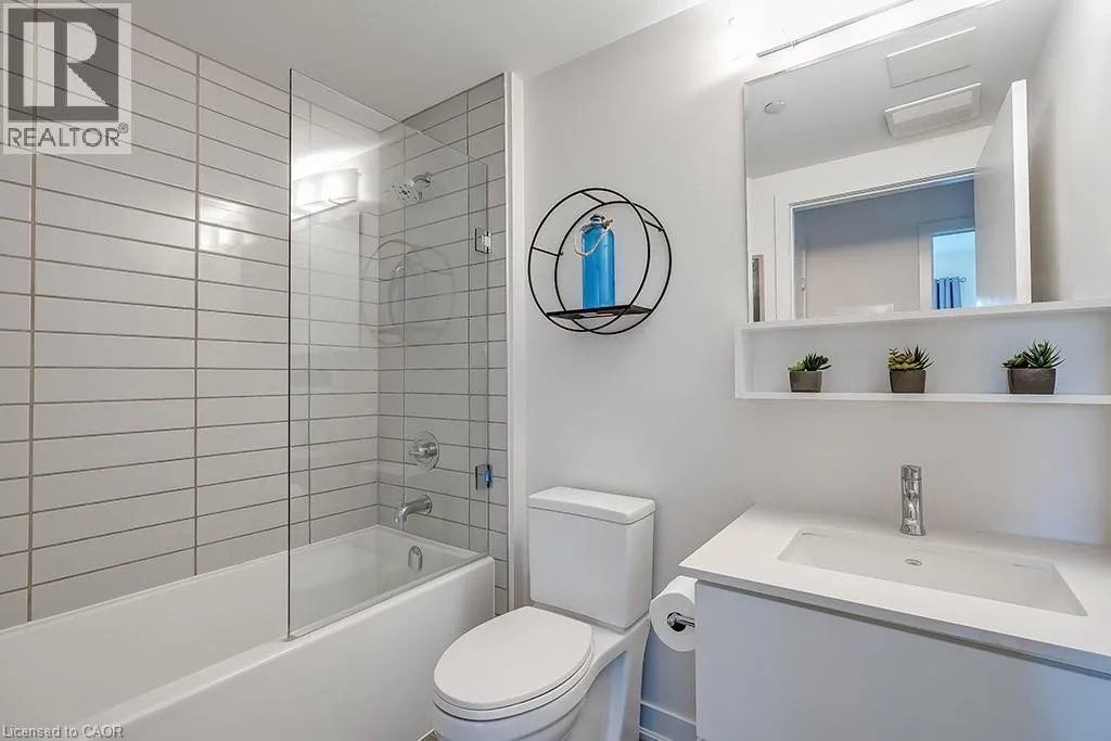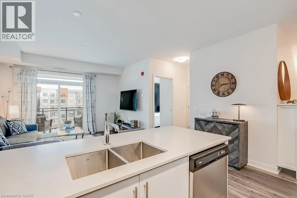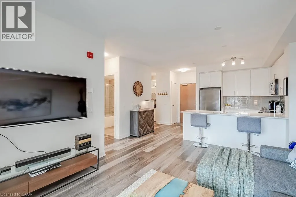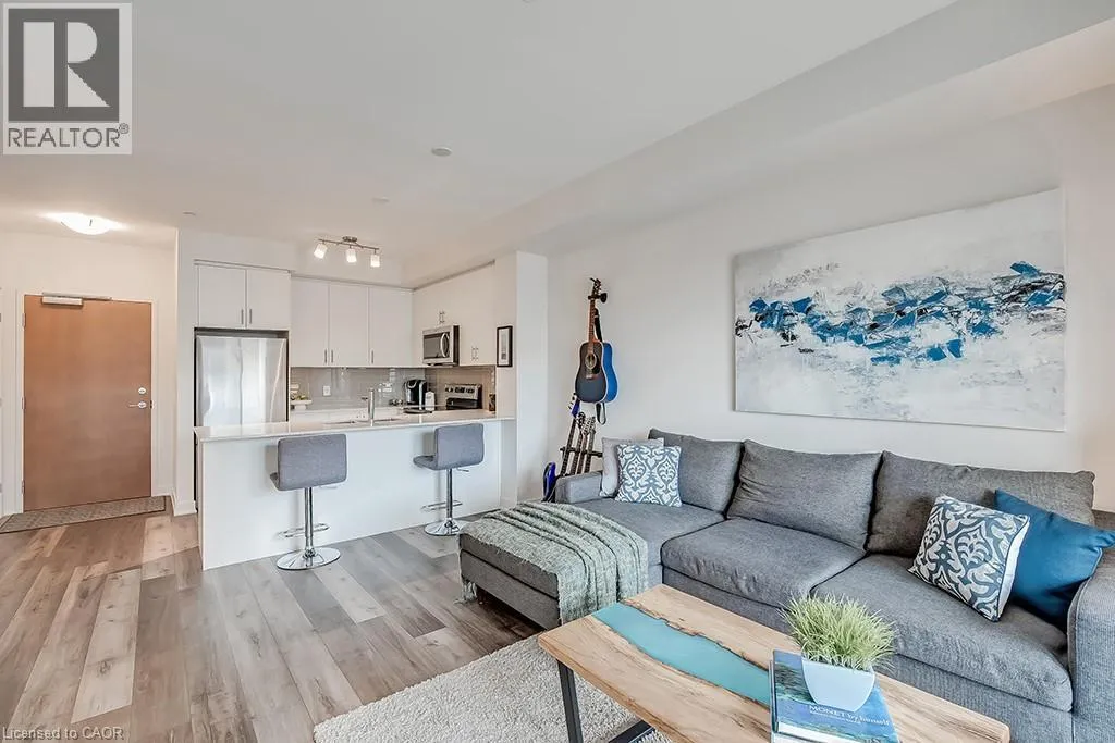 Plains Road E/Filmandale Road Stunning one bedroom + den suite at Affinity in Aldershot! Custom kitchen with quartz, stainless steel appliances, breakfast bar and glass subway tile backsplash. Open concept living with 9' ceilings, in-suite laundry, 4-piece bathroom and spacious private balcony. Steps to the GO station, RBG, marina, library, schools and Burlington Golf & Country Club. One underground parking space and one storage locker on unit level. Building amenities include loads of visitor parking, electric car charging station, rooftop terrace with BBQs, gym, yoga room and party room! (id:27476)