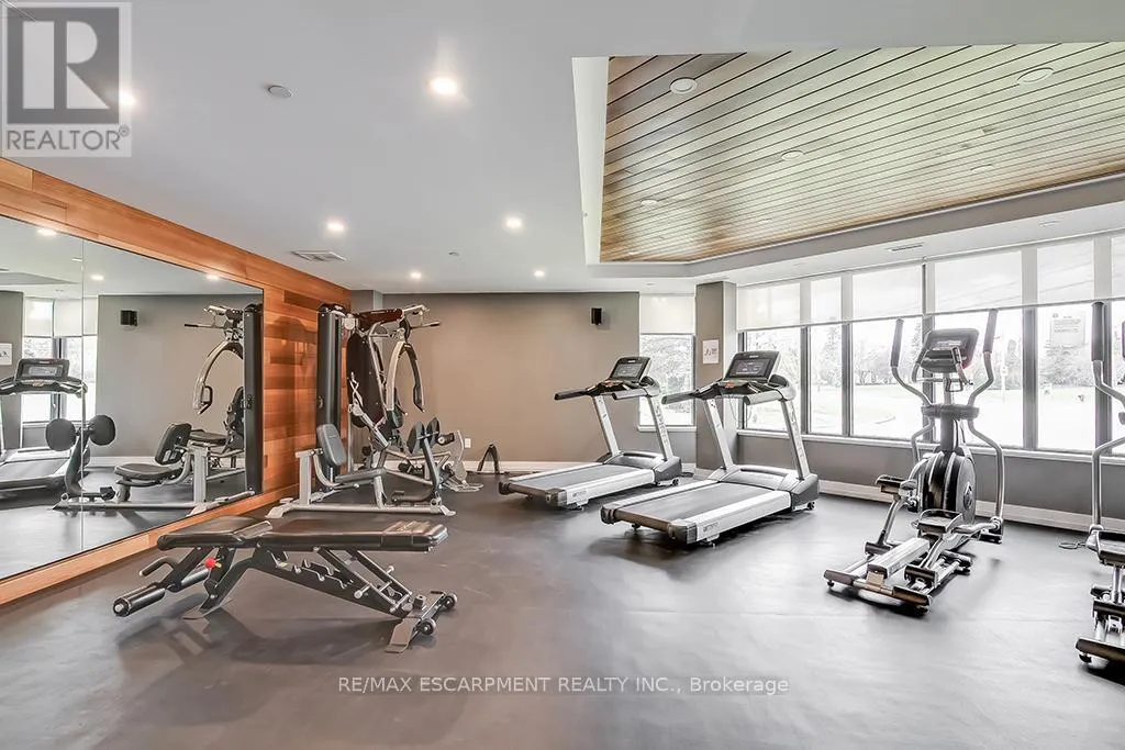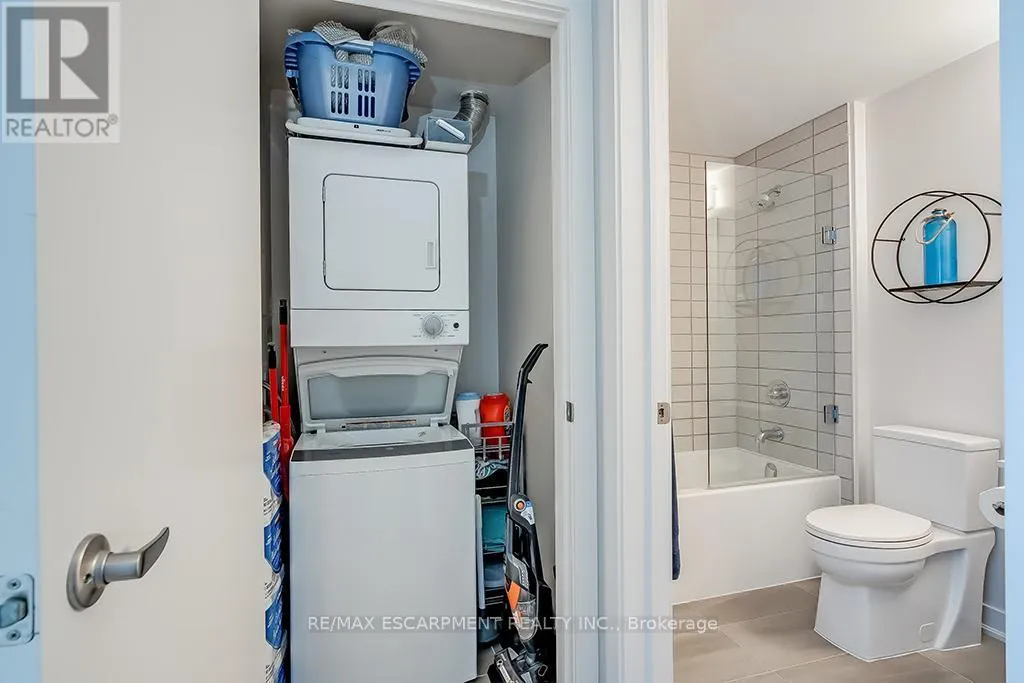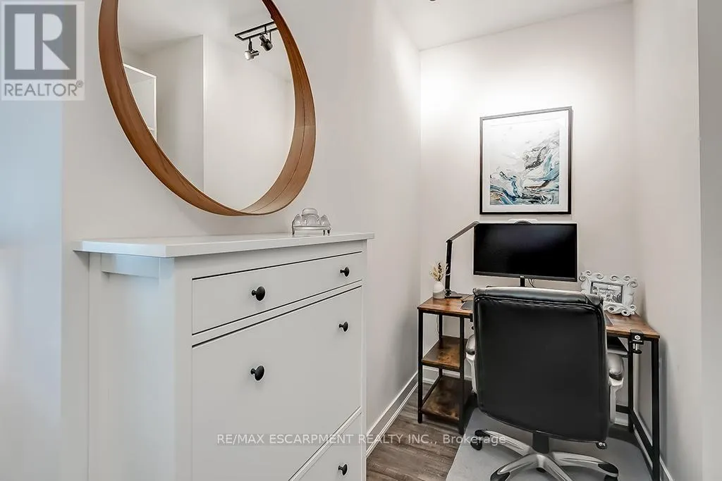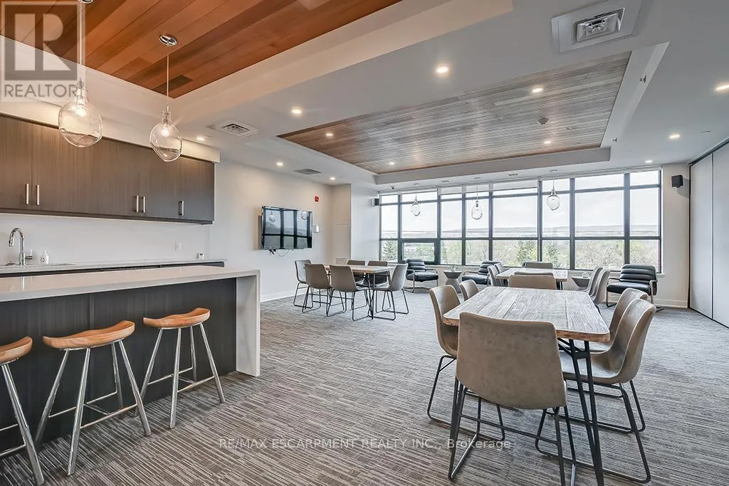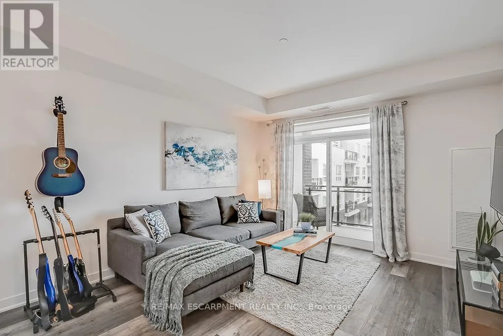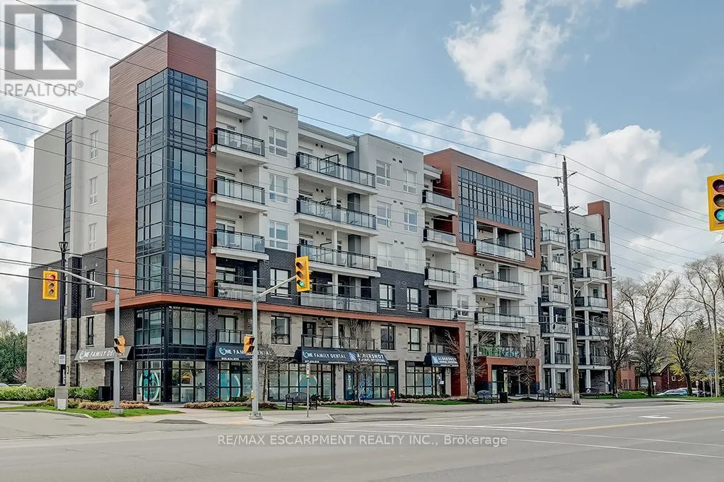Cross Streets: Filmandale Road. ** Directions: Plains Road E/Filmandale Road. Stunning one bedroom + den suite at Affinity in Aldershot! Custom kitchen with quartz, stainless steel appliances, breakfast bar and glass subway tile backsplash. Open concept living with 9' ceilings, in-suite laundry, 4-piece bathroom and spacious private balcony. Steps to the GO station, RBG, marina, library, schools and Burlington Golf & Country Club. One underground parking space and one storage locker on unit level. Building amenities include loads of visitor parking, electric car charging station, rooftop terrace with BBQs, gym, yoga room and party room! (id:27476)