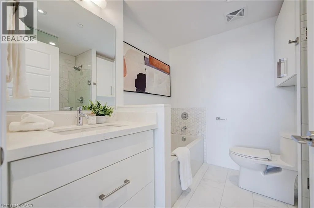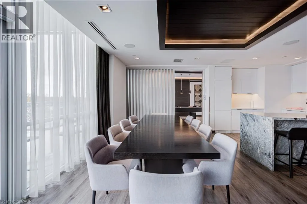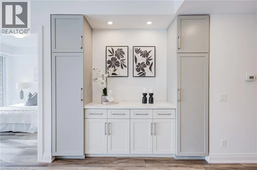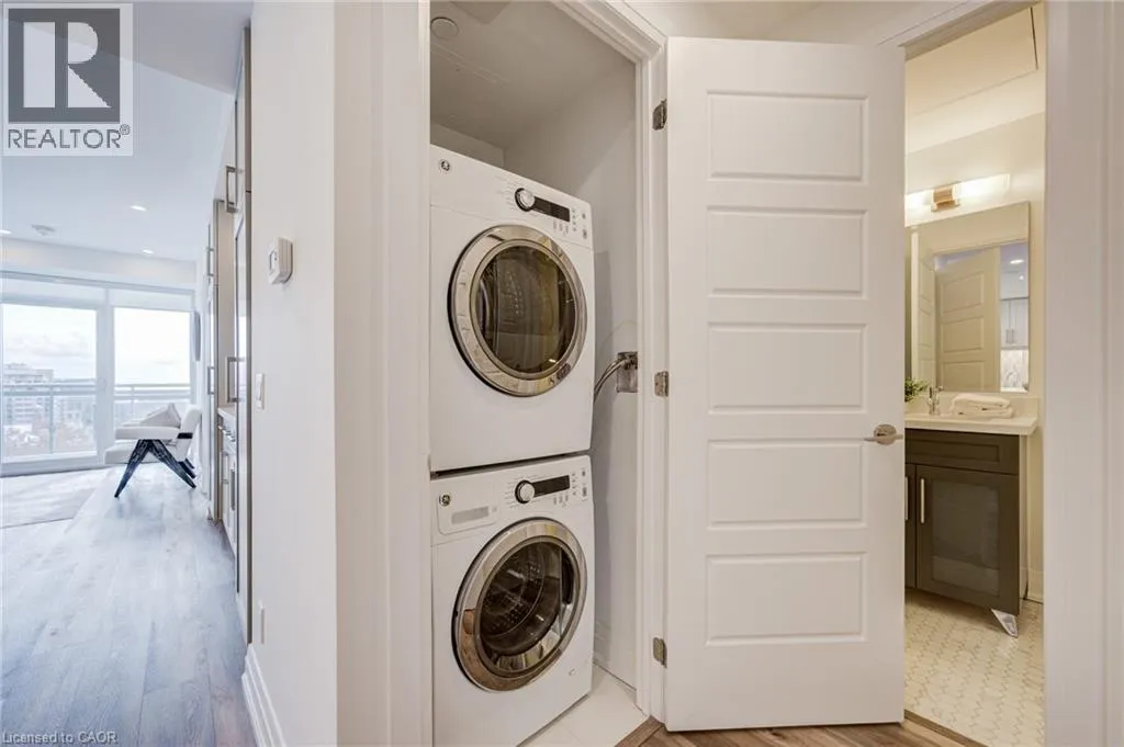 Lakeshore to John to Maria Welcome to The Berkeley, one of Burlington's finest downtown condo buildings; a luxury project by Carriage Gate Homes! Loaded with upgrades at time of construction in 2019, you will be amazed at what this 1 Bedroom, 2 Bath unit has to give! Ten-foot Ceilings; Wide plank Floors, with larger wood Trim; Upgraded Kitchen Cabinets, with extended height uppers & Crown Molding; Stainless Steel GE Appliances, including upgraded Canopy Hood Fan; Island with Waterfall Quartz Countertop; Marble tile Backsplash; Built-in Kitchen wall unit with double Pantries and Quartz Countertop; freshly painted; Pot lighting throughout the living space; Custom Blinds; in-unit laundry; owned parking spot and storage locker! Enjoy breathtaking views of Lake Ontario from your spacious (175 sqft) terrace! But there's more! The Berkeley features exceptional amenities including the hotel-inspired lobby, attentive concierge service and 24 hr security, party and games rooms, a rooftop patio with BBQs and lake views, secure bike storage, and a fully equipped gym. Owned parking spot conveniently located beside the elevator. This one wont last! (id:27476)