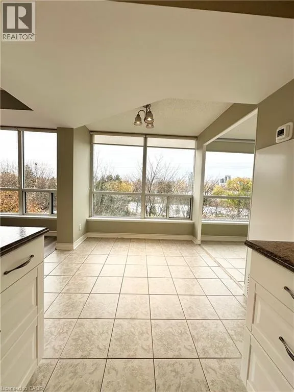 MAPLE AVE TO MAPLE CROSSING BLVD Welcome to this stunning 2-bedroom, 2-bathroom plus den suite in the highly sought-after Grand Regency. This captivating residence offers a perfect blend of comfort, style, & breathtaking views that will make you feel right at home. As you enter, you're greeted by a charming foyer featuring a large double closet with mirrored doors. The fresh white kitchen boasts ample cabinetry & counter space. Enjoy your meals in the cozy dining nook, where you can soak in the picturesque views of Lake Ontario & the vibrant skyline of downtown Burlington. The spacious living room/dining room area creates an inviting atmosphere for entertaining or relaxing. The flex space off the main living space could be a lovely den or office space. The master bedroom is a true retreat, featuring a large window that fills the space with natural light, a walk-in closet for all your storage needs, & a luxurious 3-piece ensuite with a standup glass shower & a generously sized vanity. The second bedroom offers versatility & access to the delightful sunroom, perfect for enjoying morning coffee while overlooking the stunning scenery. An additional 3-piece main bathroom with a stand-up shower ensures convenience for guests. This unit is available immediately & is perfect for those seeking a one-year lease. This is a pet free building. Plus, the suite comes with one underground parking space & a locker for added storage. (id:27476)