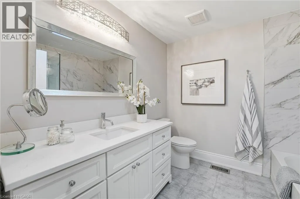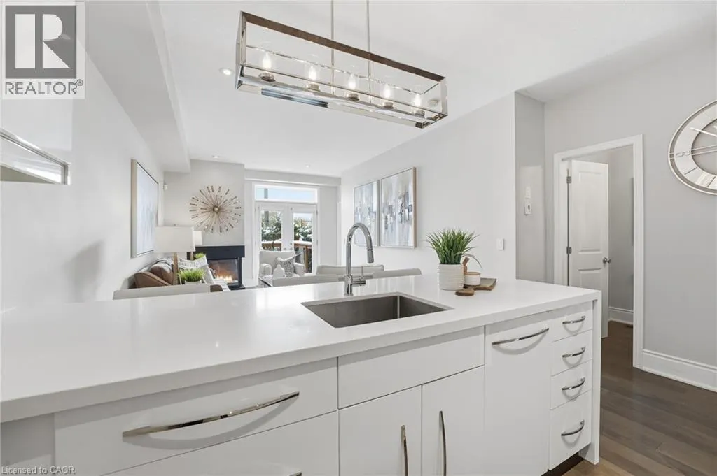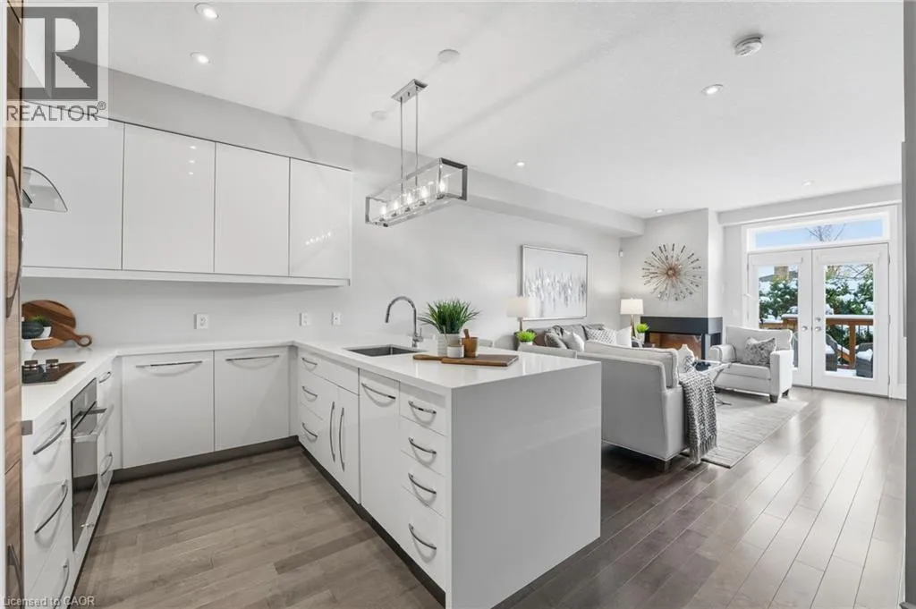 Appleby and New st. Welcome to elegant living in this stunning fully renovated bungaloft townhome, ideally located in the heart of South Burlington. Set well back off the street, this bright and quiet home has been thoughtfully designed with Premium finishes and offers exquisite style, a step above the rest! The main floor features an open concept layout and hardwood throughout with separate DR for formal entertaining! The Kitchen with breakfast bar, has been completely updated including European Appliances, quartz countertops, maximum counter space and clean lines. The large living room with gas fireplace fits all your entertaining needs, with easy access to a private, low-maintenance backyard patio oasis, for enjoying quiet evenings outdoors in the hot tub! The spacious primary suite is located just off the LR with a beautifully appointed ensuite and walk/in closet, offering the ease of main-level living. The Upper-level loft provides a home office w skylight, 2 additional bedrooms and large 4pc bathroom, perfect for growing kids privacy. The well organized fully finished lower level completes your wish list, offering a 2nd Den/study, walk/in closet/storage room, and large Rec room with built-in murphy bed for additional sleeping area. A fully finished large laundry room with 2 nd fridge for entertaining holidays and more pantry storage. With exterior maintenance taken care of, you'll l have more time to focus on what matters most. Whether you're a downsizer or seeking the perfect multi-generational setup, this home offers unmatched versatility and comfort. Walking distance to groceries, restaurants, dental, pharmacy, doctors, physio, gym, hair salons/barber, LCBO, GO train, and more! (id:27476)