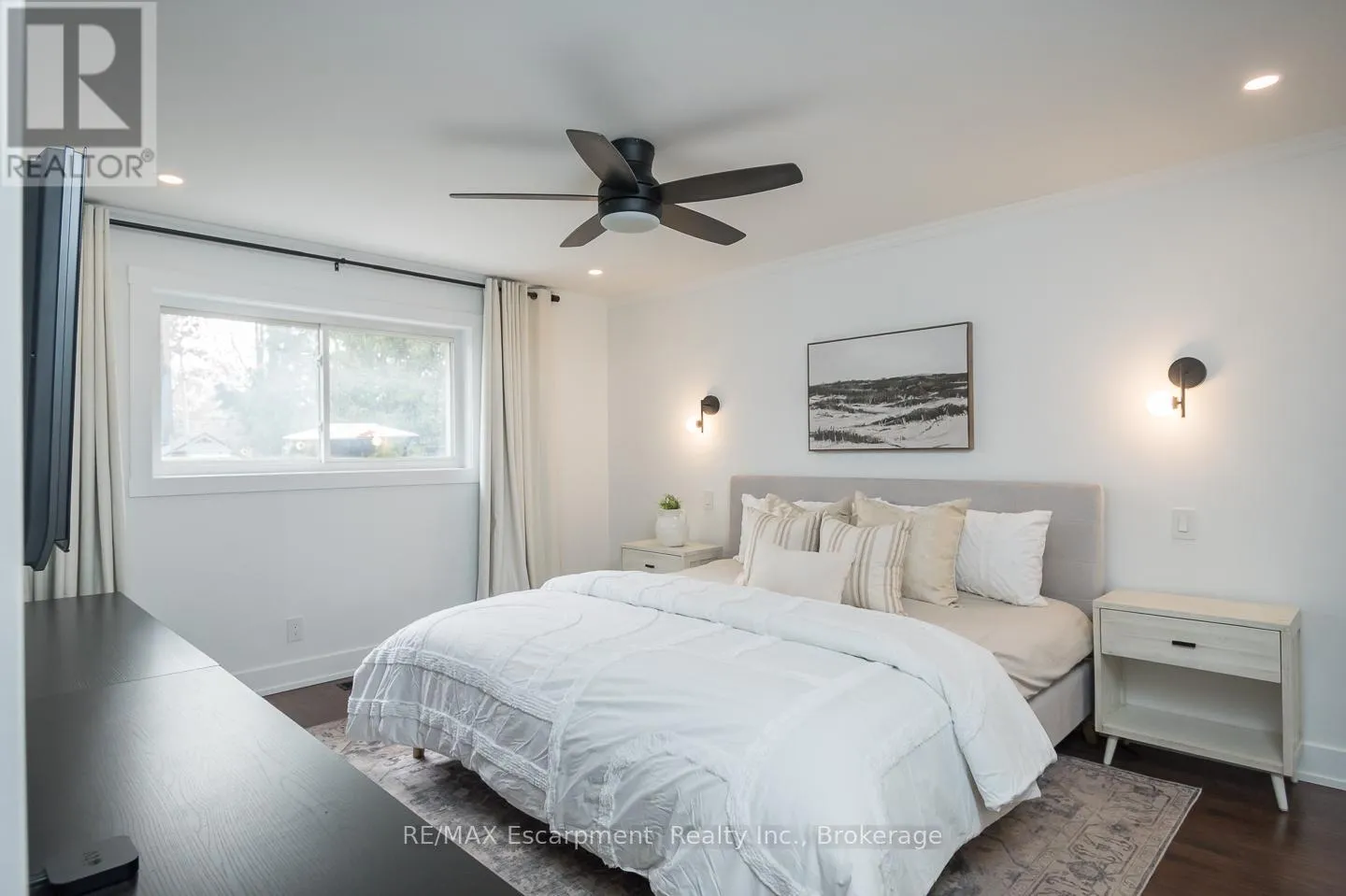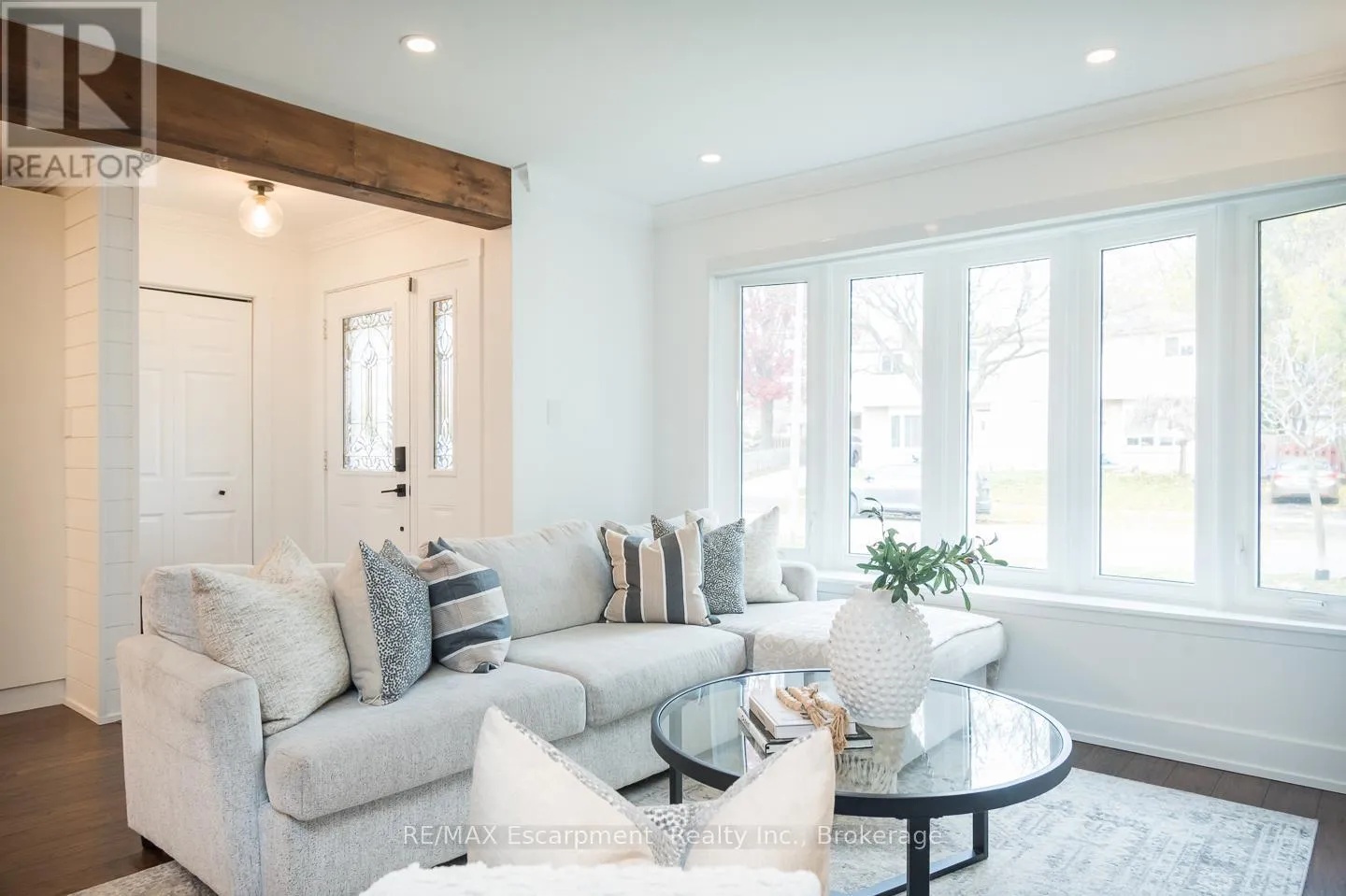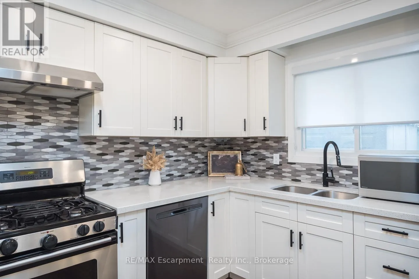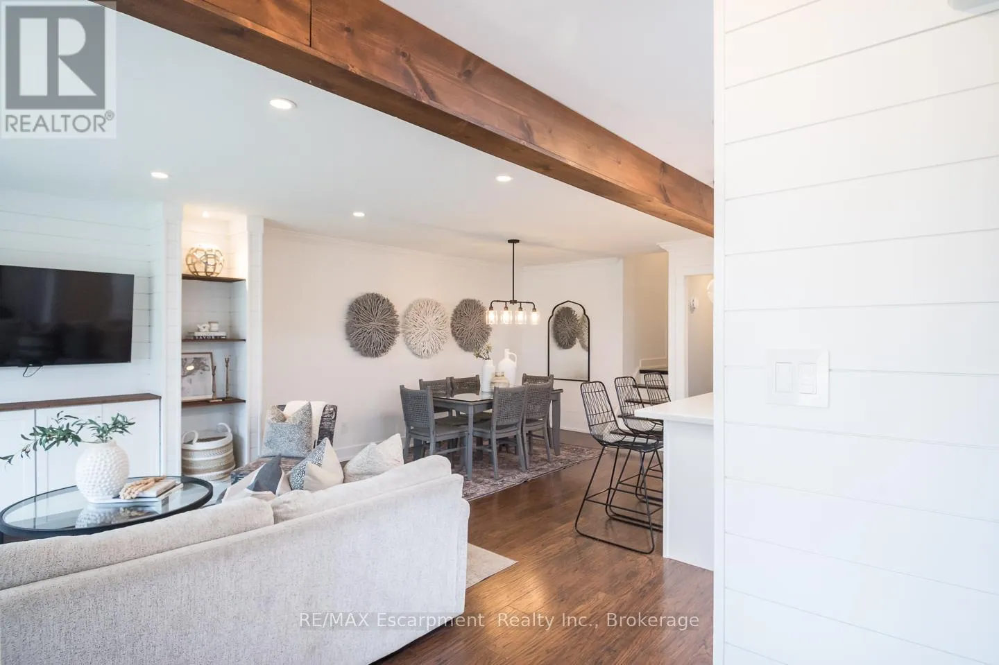 Cross Streets: Mount Forest Dr. ** Directions: Guelph Line to Mount Forest Dr. Beautifully renovated, this four-level back split offers a functional, family-friendly layout with stylish updates throughout. The main level features an open concept living and dining area with smooth ceilings, pot lights, crown molding, and a shiplap feature wall with custom built-ins. The upgraded kitchen is complete with quartz countertops, white shaker cabinetry, stainless steel appliances. A large centre island provides breakfast bar seating for three and a convenient central vacuum kick sweep, while the coffee bar and additional pantry add both storage and function. Upstairs are three bedrooms and a fully renovated five-piece bathroom with a double sink vanity, stylish wall and floor tile, and updated hardware and fixtures. A custom walk-in hallway closet offers smart extra storage, and the bright primary bedroom features updated closet doors and abundant natural light. The finished lower level offers a spacious recreation area with large windows with the addition of a custom three-piece bathroom, showcasing a checkerboard tile floor, glass shower and stylish vanity and hardware for a fresh, modern look. The lowest level provides additional storage and a functional laundry area. Set on a quiet street in a family-oriented Burlington neighbourhood, with a lush, private and fully fenced backyard, this move-in-ready home offers exceptional value and appeal for today's buyer. (id:27476)