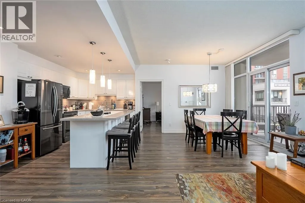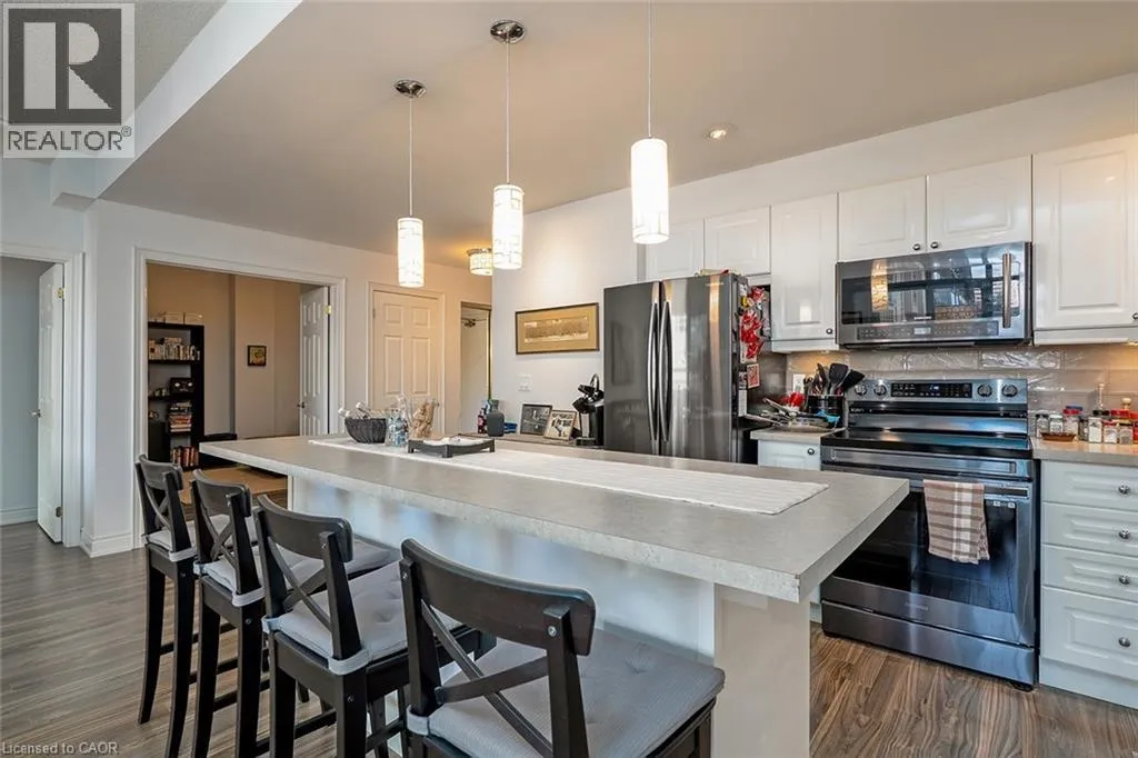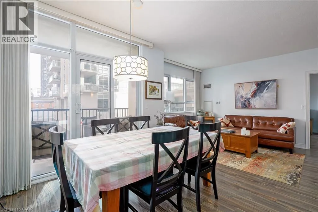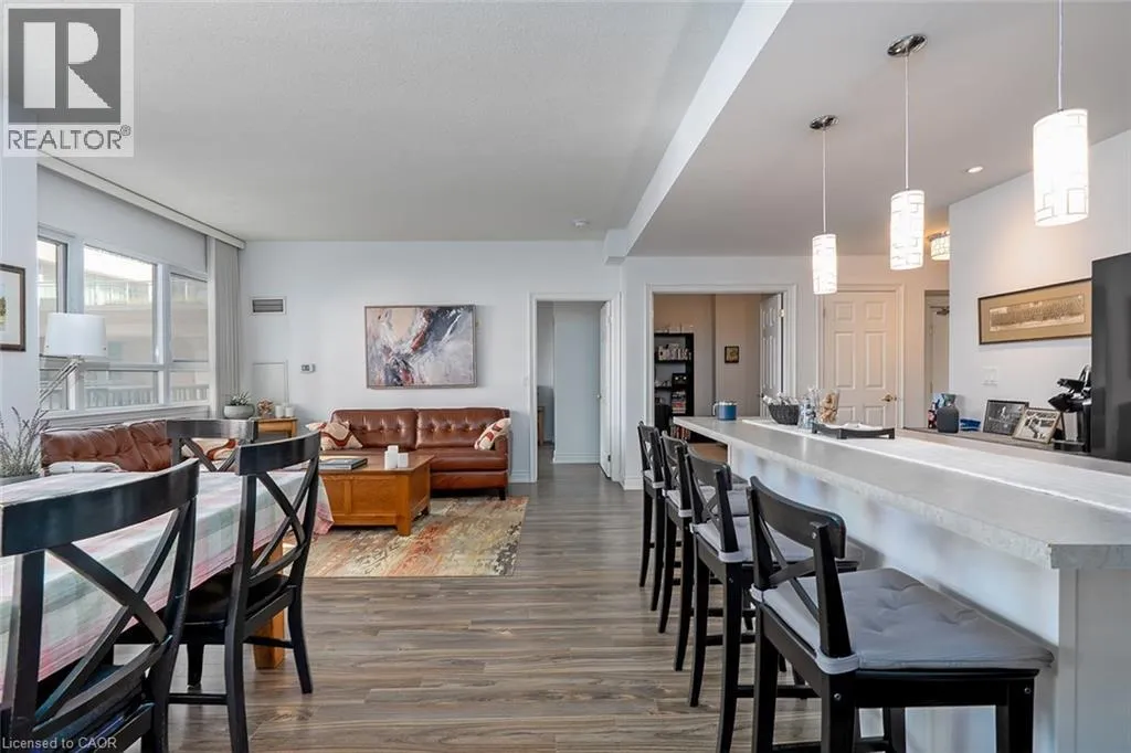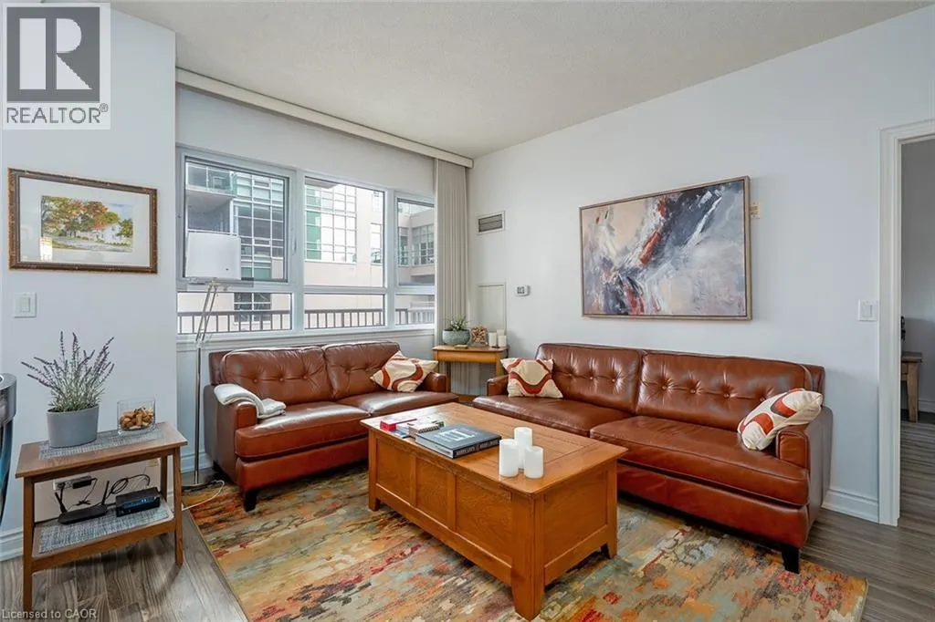 Brant and Lakeshore Rd 2-bedroom PLUS a den, 2 full bath condo in the heart of downtown Burlington! Over 1300 square feet with a sprawling, open concept floor plan! This unit has been beautifully maintained and is situated in the sought-after Baxter building. The unit boasts an oversized living / dining room with plenty of natural light. There is also access to the large terrace with beautiful eastern exposure. The eat-in kitchen features a large island, white cabinetry and stainless-steel appliances. The primary bedroom has a walk-in closet and a spacious 4-piece ensuite with a separate tub and shower. There is also a spacious 2nd bedroom and 3-piece main bath! The oversized den offers several possibilities and is a great added bonus! This unit also includes in-suite laundry and plenty of storage space! Building amenities include a rooftop terrace with BBQs, a party room, a gym, sauna, & carwash! TWO underground parking spots and TWO storage lockers (one on the same floor as the unit). A perfect unit for anyone looking to get downtown Burlington and all it has to offer! (id:27476)