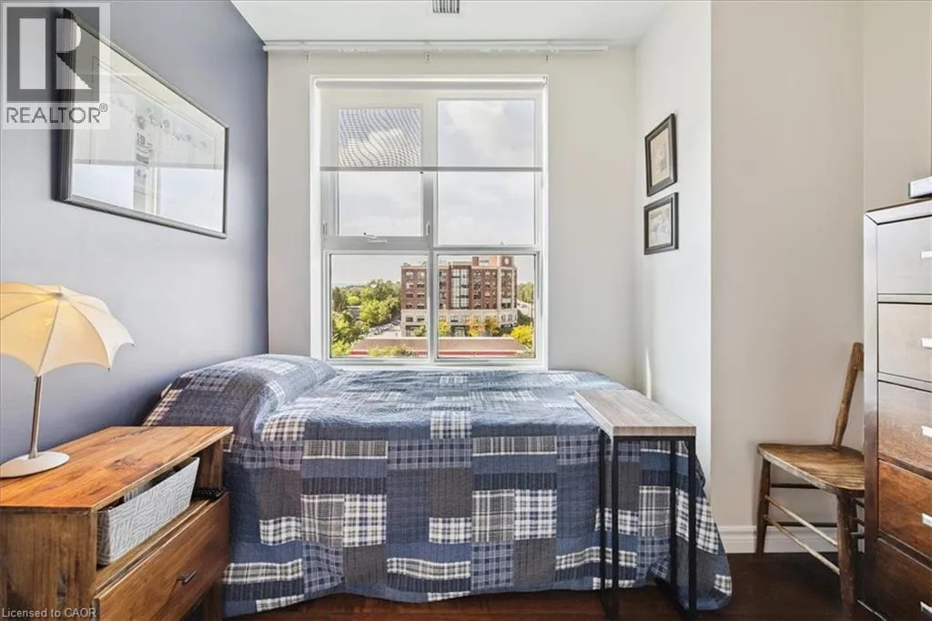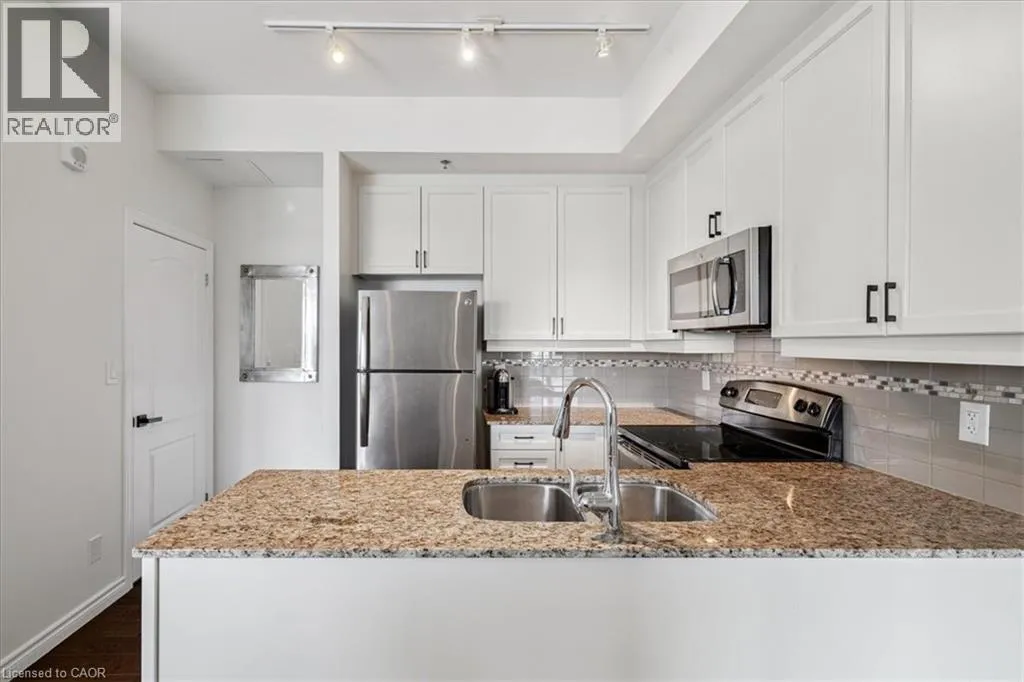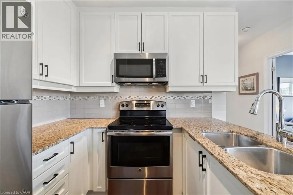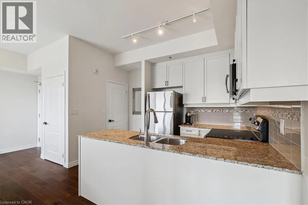 Waterdown Road / Lasalle Park Road East on Plains Road (Building on South Side) A wonderful classic condo unit in Aldershot South! This 2 bedroom 1 bathroom unit has over 700 square feet and a west facing balcony perfect for watching the sun go down. The unit open ups to bright and airy living room with plenty of natural light, a dedicated room for comfort and the perfect gathering space. Walk-out to the private west-facing balcony and enjoy sunsets all year round. The kitchen provides a peninsula configuration with granite countertops, stainless steel appliances and sufficient cupboard space. Down the hallway sits the primary bedroom with western exposure and a walk-in closet. The second bedroom is a flexible space to fit any buyers needs. The unit is complete with hardwood flooring and a neutral colour palette throughout, a spacious 4-piece main bathroom, and in-suite laundry. With exclusive use of one underground parking space and a locker for any extra storage. Ideally located on the edge of the esteemed Aldershot South neighbourhood, enjoy a stroll to LaSalle Park and the Marina, with easy access to the GO Station, major highways and Mapleview Mall! (id:27476)