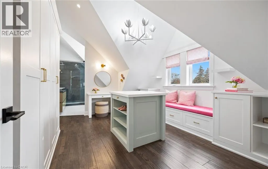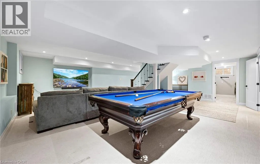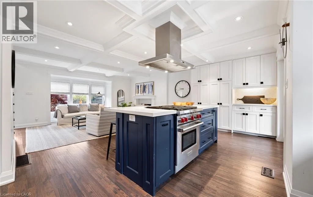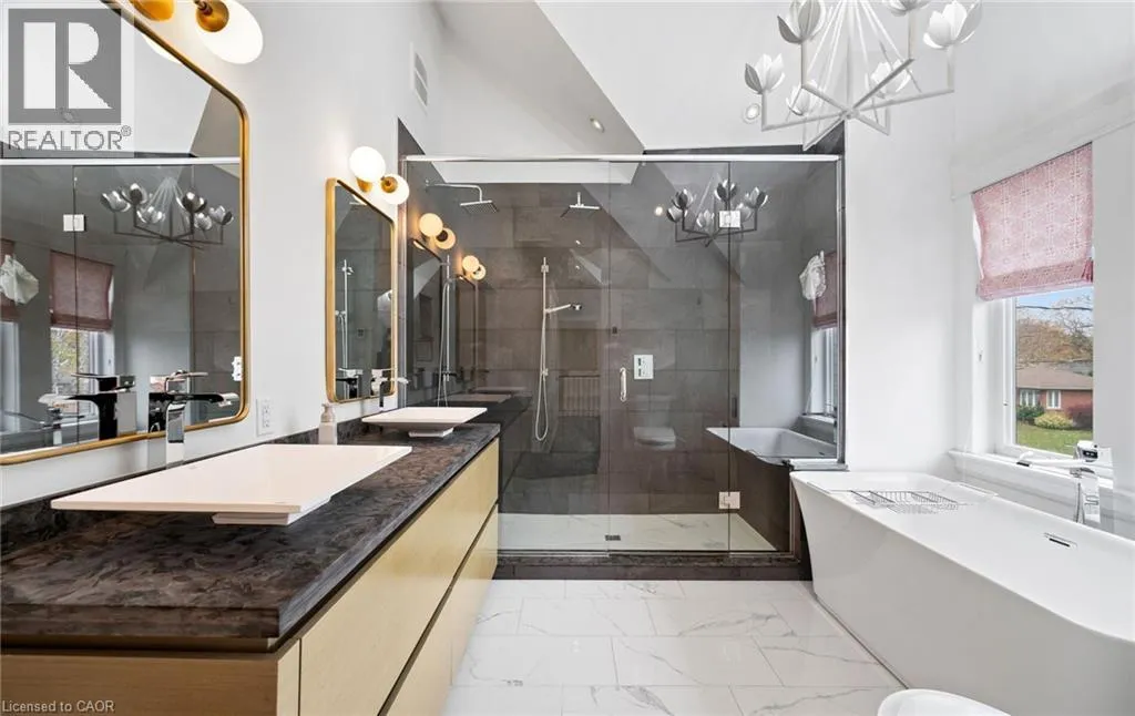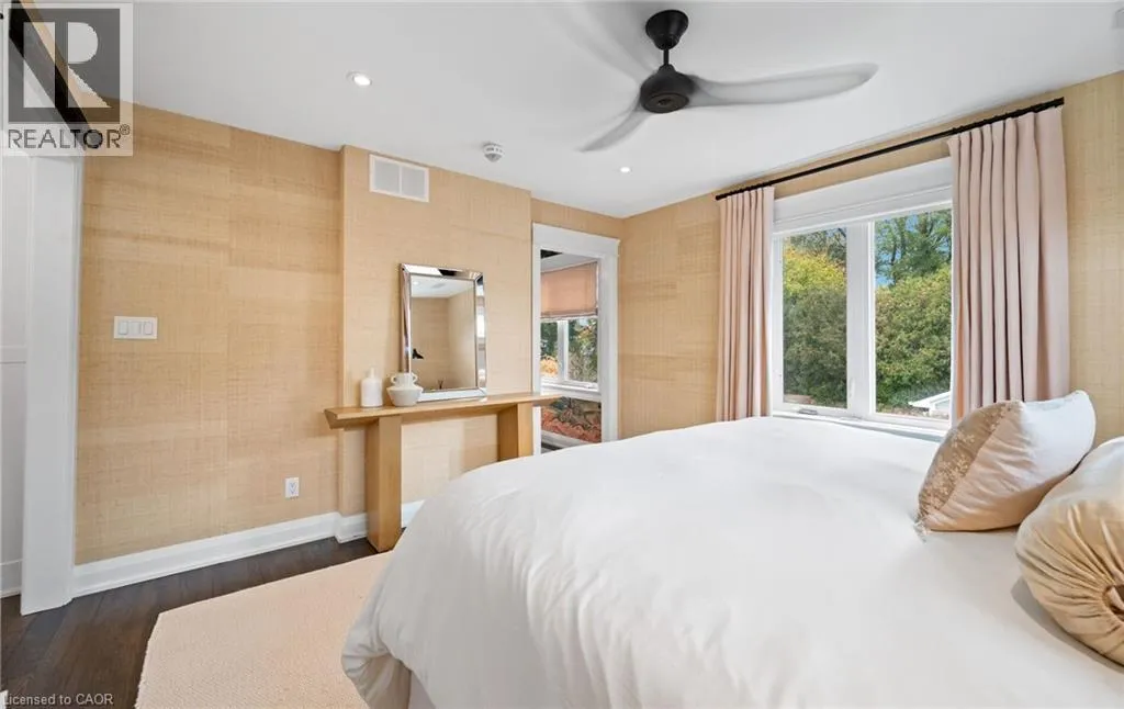 Prospect West of Drury Lane Stunning custom home on a 63' x 136' lot in downtown Burlington. Professionally landscaped yard with heated pool and detached year-round living space, ideal as a nanny suite, office, or guest houseâincludes kitchenette, 3-pc bath, and cozy lounge. Inside features coffered ceilings, 8 hand-scribed hardwood, custom millwork, and gourmet kitchen with quartz counters, bold blue island, premium appliances, and coffee bar. French doors open to a covered deck with sunken hot tub. Family room with wood-burning fireplace. Luxurious primary suite with spa-like ensuite and custom dressing room. Three additional bedrooms and stylish 4-pc bath upstairs. Finished lower level with rec room, 2-pc bath, and laundry/wet bar with granite and full-size fridge. (id:27476)