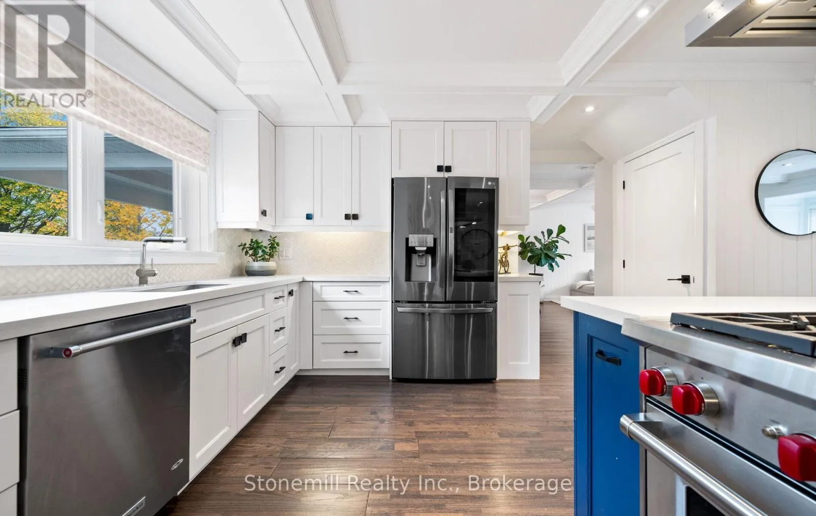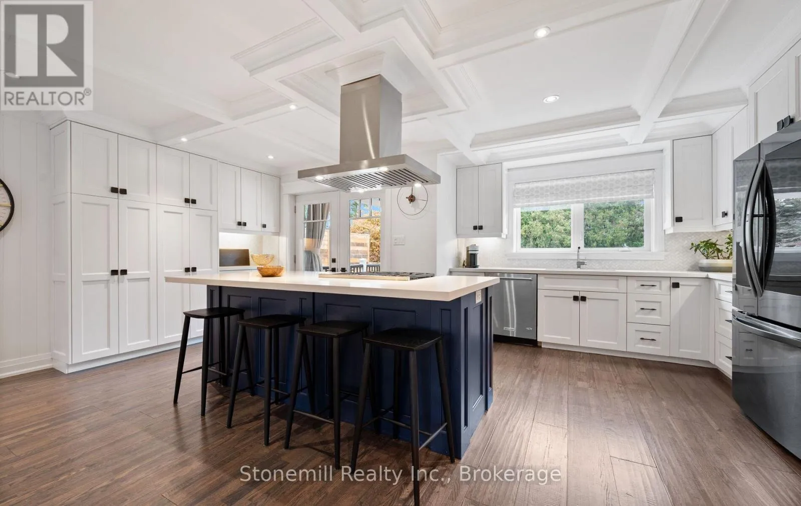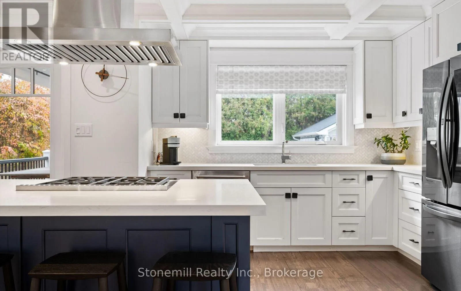Cross Streets: Prospect W. of Drury Lane. ** Directions: Prospect West of Drury Lane. Exceptional Custom-Built Residence in Downtown Burlington Situated on an expansive 63' x 136' lot in the heart of downtown Burlington, this distinguished custom-built home blends sophistication, craftsmanship, and resort-inspired living.The professionally designed grounds feature an inground heated pool and an exquisite, fully winterized studio-style pool house. Perfect as a nanny suite, private office, or luxurious guest retreat, it includes a kitchenette, spa-inspired 3-pc bath, and inviting lounge. A retractable pool safety cover adds an important safety feature for small children and enhances energy efficiency, extending the pool season into spring and fall. Inside, every detail reflects refined luxury. Coffered ceilings, 8" hand-scribed hardwood floors, and custom millwork create an elegant atmosphere throughout. The chef-inspired gourmet kitchen is a true center piece, featuring quartz countertops, a striking blue island, premium appliances, and a dedicated coffee bar. French doors open to a covered, timber-accented deck with a sunken hot tub, offering a seamless indoor-outdoor sanctuary.The family room exudes warmth with its fireplace-currently set up as natural gas but easily convertible to wood-burning-perfect for cozy gatherings. Upstairs, the opulent primary suite offers a spa-like ensuite and a custom-designed dressing room. Three additional bedrooms and a luxurious 5pc bath complete the upper level.The fully finished lower level provides additional living and entertaining space, including a stylish rec room, 2-pc bath, and designer laundry/wet bar with granite countertops and a full-size refrigerator.A rare offering that combines elegance, comfort, and modern luxury, this home is just steps from Burlington's vibrant waterfront, boutique shopping, and fine dining (id:27476)