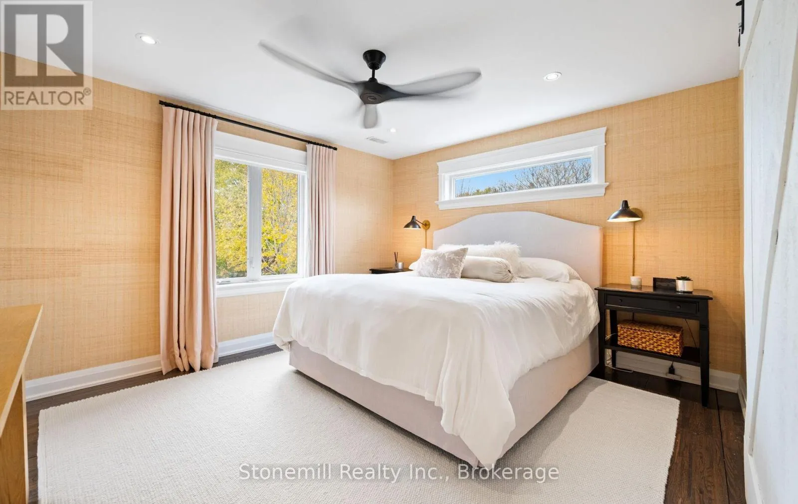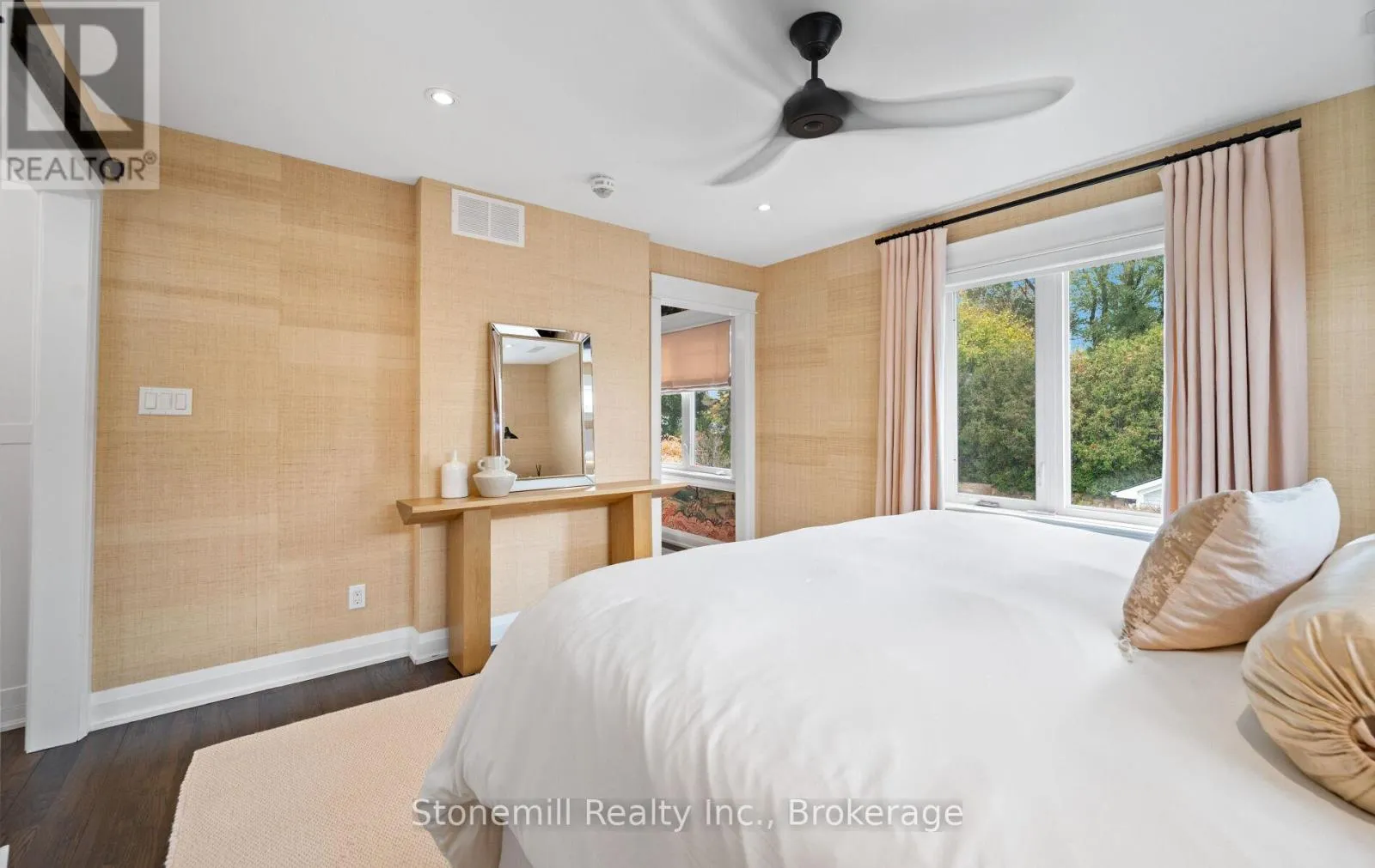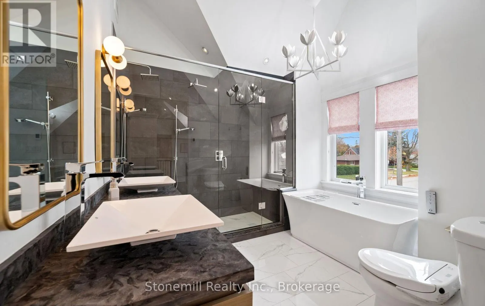 Cross Streets: Prospect W. of Drury Lane. ** Directions: Prospect West of Drury Lane. Exceptional Custom-Built Residence in Downtown Burlington Situated on an expansive 63' x 136' lot in the heart of downtown Burlington, this distinguished custom-built home blends sophistication, craftsmanship, and resort-inspired living.The professionally designed grounds feature an inground heated pool and an exquisite, fully winterized studio-style pool house. Perfect as a nanny suite, private office, or luxurious guest retreat, it includes a kitchenette, spa-inspired 3-pc bath, and inviting lounge. A retractable pool safety cover adds an important safety feature for small children and enhances energy efficiency, extending the pool season into spring and fall. Inside, every detail reflects refined luxury. Coffered ceilings, 8" hand-scribed hardwood floors, and custom millwork create an elegant atmosphere throughout. The chef-inspired gourmet kitchen is a true center piece, featuring quartz countertops, a striking blue island, premium appliances, and a dedicated coffee bar. French doors open to a covered, timber-accented deck with a sunken hot tub, offering a seamless indoor-outdoor sanctuary.The family room exudes warmth with its fireplace-currently set up as natural gas but easily convertible to wood-burning-perfect for cozy gatherings. Upstairs, the opulent primary suite offers a spa-like ensuite and a custom-designed dressing room. Three additional bedrooms and a luxurious 5pc bath complete the upper level.The fully finished lower level provides additional living and entertaining space, including a stylish rec room, 2-pc bath, and designer laundry/wet bar with granite countertops and a full-size refrigerator.A rare offering that combines elegance, comfort, and modern luxury, this home is just steps from Burlington's vibrant waterfront, boutique shopping, and fine dining (id:27476)