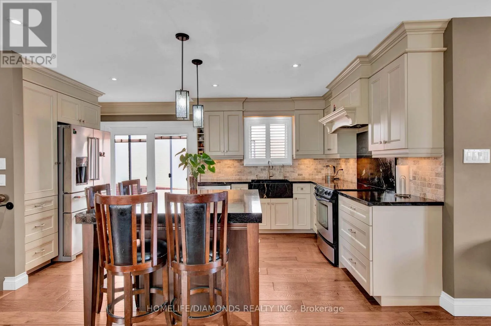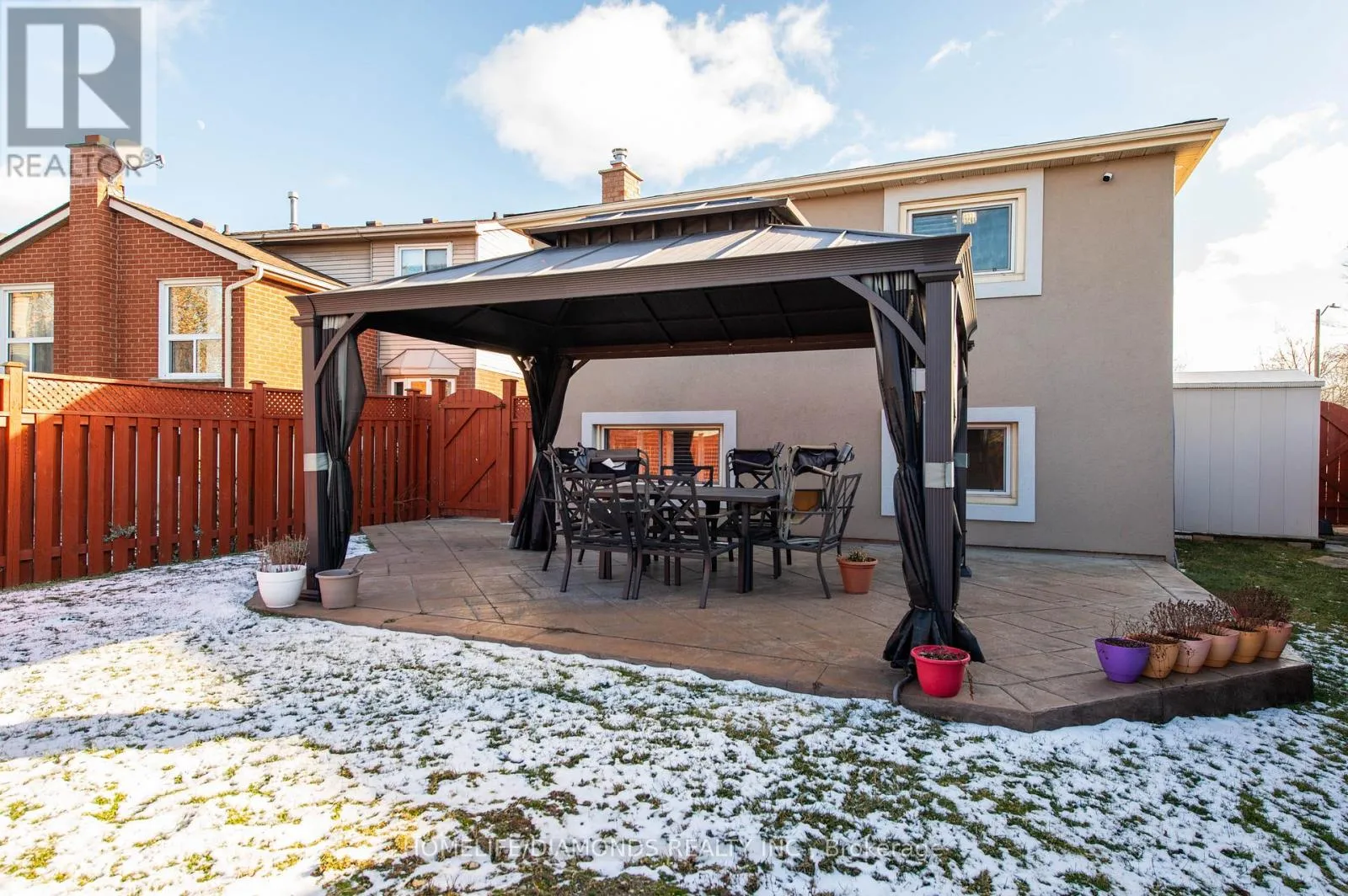 Headon Forest Drive Welcome to this Gorgeous Home! Nestled on a quiet court in the prestigious Headon Forest neighbourhood, this stunning 3-level detached backsplit offers 3 spacious bedrooms and 2 fully updated bathrooms featuring granite countertops and custom cabinetry. With over $100K in recent upgrades, this home showcases a custom gourmet kitchen complete with soapstone countertops, KitchenAid stainless steel appliances, a large island, and a beautiful stone backsplash. The bright, open-concept main floor boasts hand-scraped hardwood floors, California shutters, and a formal dining area with a built-in buffet. The lower level provides even more living space, including a cozy family room with a fireplace, a generous rec room with custom storage, and convenient inside garage access. Professionally landscaped front and backyards featuring stamped concrete patios and a new gazebo create an ideal setting for outdoor entertaining in the private backyard. Additional upgrades include new flooring, smart LED lighting, a new insulated garage door with smart opener, new stucco on the back and sides of the home, an owned water softener, reverse osmosis system, a new roof, and much more (floor plan and full upgrade list attached) .Located close to parks, trails, top-rated schools, and shopping, this home is completely move-in ready and offers exceptional comfort and convenience. (id:27476)