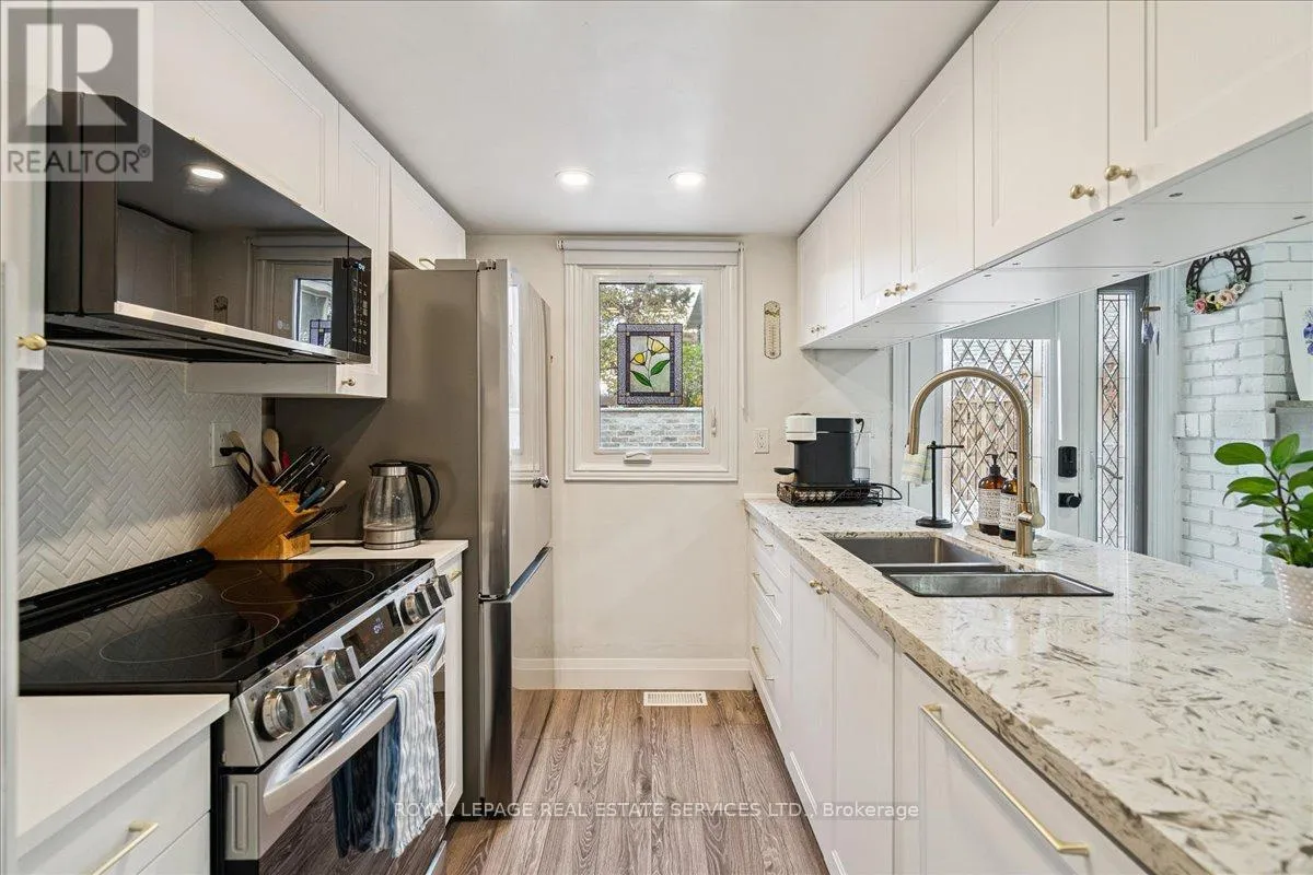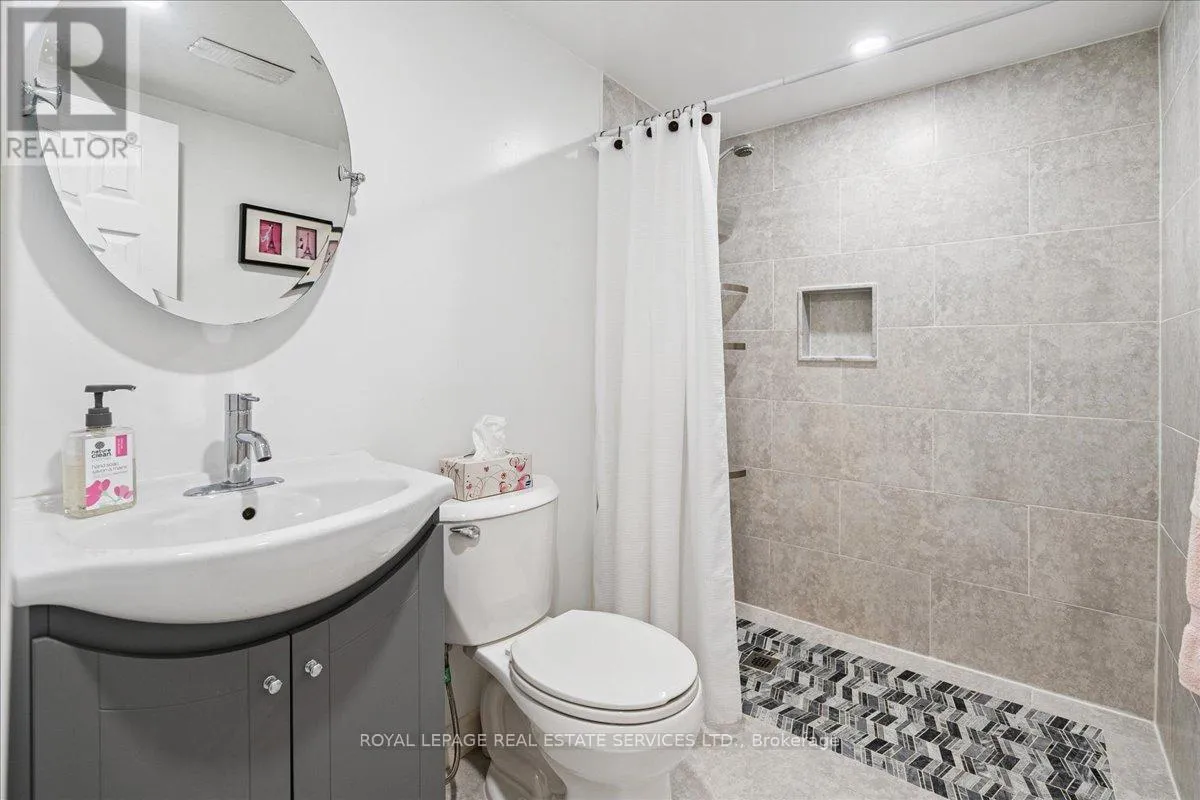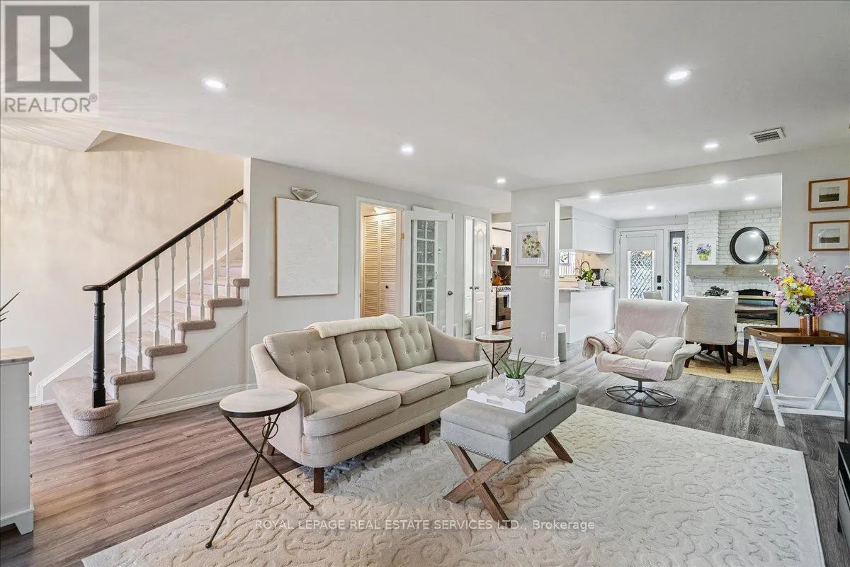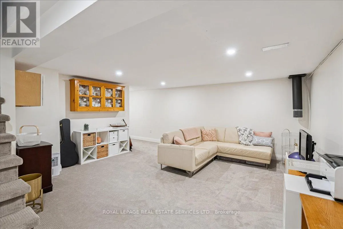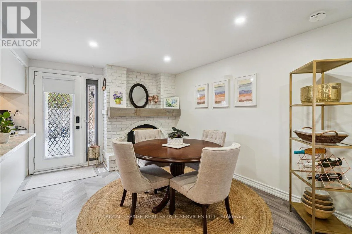 Brant St. & Upper Middle Welcome to this spacious 1444 sq. ft. townhome offering 2 bedrooms plus finished basement and 4 bathrooms, located in the highly desirable Tyandaga neighbourhood. Set within the beautifully maintained Wellington Green community, residents enjoy manicured grounds and outstanding amenities, including a large indoor pool with sauna and hot tub.The main level features a modern, light-filled open concept space with pot lights, a 2-piece powder room, and a bright open kitchen with quartz countertops, stainless steel appliances and a breakfast bar overlooking the dining room with a cozy gas fireplace. A walkout to a generous private patio with new fencing and a feature brick privacy wall make this space perfect for everyday living and entertaining. Upstairs, you'll find 2 bedrooms where the primary includes a 3-piece ensuite bathroom. Additionally there is a 4-piece main bathroom. Additional features include HVAC (baseboard heating removed and converted to gas/HVAC), easy access to highways, shopping, golf, and more, plus underground two parking spots with direct private entrance to the unit. (id:27476)