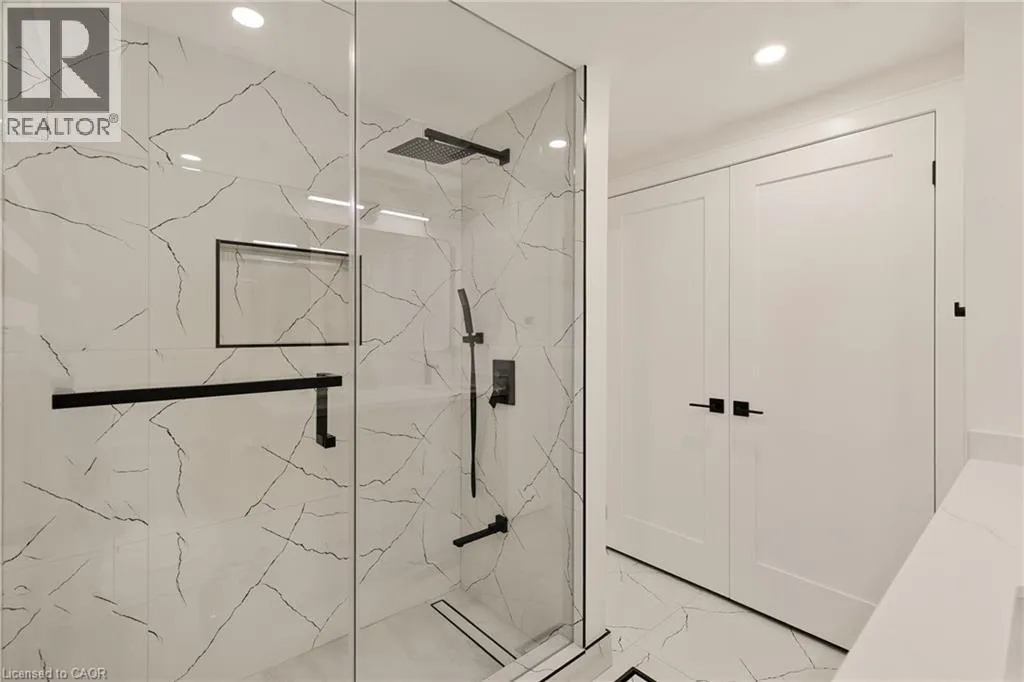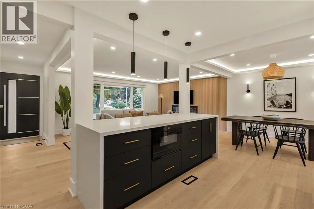 Lakeshore Road or Spruce Avenue to Strathcona Drive Welcome to this updated family home in the heart of Shoreacres. RECENTLY ADDED JACK-AND-JILL BATH ON UPPER LEVEL and updated throughout in 2024 with over 2000 square feet of finished living space, this home has been transformed with custom finishes throughout. The open-concept main floor is greeted by a functional entrance with custom built-ins and storage (including closet with bench) that lead into the living room, dining area, and kitchen. The kitchen features panelled Fisher & Paykel appliances, a waterfall quartz island with seating, and sleek cabinetry offering ample counter and storage space. Upstairs, you'll find three spacious bedrooms , all with their own private ensuites. The lower levels extend your living space with two family/rec rooms, wet bar area, and in-wall wiring ready for a home theatre setup - ideal for movie nights or a teen hangout space. This level also includes a fourth bedroom with a 4-piece ensuite, perfect for teens, extended family, and guests. Updates include engineered hardwood floors, fluted feature walls, built-in fireplace, custom and motorized blinds, and integrated wall lighting, newer windows throughout, refreshed landscaping, garage door (2025), & owned hot water heater. Just steps to the lake, this is an opportunity to move into a turnkey, designer-finished home in a true family-friendly neighbourhood. Welcome to one of South Burlingtons most sought-after neighbourhoods, known for its top-rated schools, parks, and strong community feel. (id:27476)