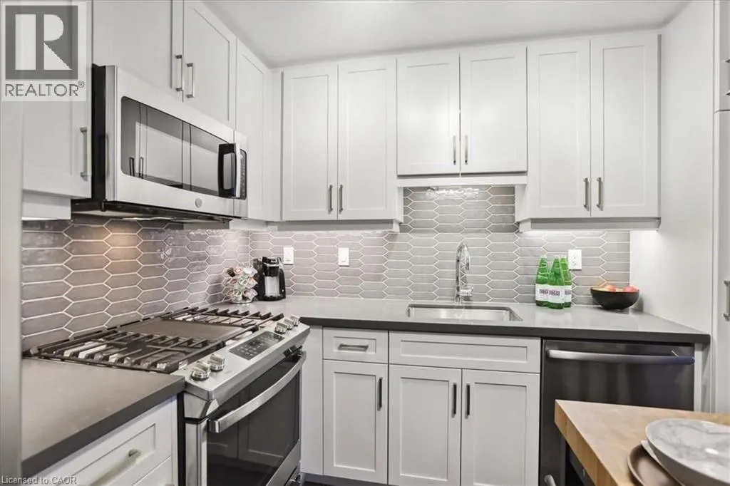 Brant Street to James Street Experience unparalleled lakeside luxury in the heart of downtown Burlington in this newer luxury condominium. Perched on the 12th floor, this quiet, well-situated, pet-free unit is conveniently located closer to the elevators and stairwell, and offers one of the building's most coveted layouts. Upon entering, it welcomes you through a private entrance hallway and then opens up into a sleek designer kitchen with stone countertops and a warm, multifunctional island that doubles as a dining table, all seamlessly flowing into an open-concept living space framed by floor-to-ceiling windows and doors. What makes this unit special is each bedroom thoughtfully positioned on opposite sides of the unit, each with its own bathroom for maximum convenience and privacy. This units offers a full walk-in laundry room, making even laundry day an effortless task. From the living room, entertain or peacefully enjoy your huge balcony with gas BBQ hookup and unobstructive views overlooking the twinkling night city lights illuminating Burlington's vibrant core. Indulge in resort-style amenities including a 24-hour secure concierge, a stunning indoor pool, yoga studio, fully equipped fitness centre, private dining room and upscale lounge, and a breathtaking rooftop terrace with panoramic city-to-lake views and outdoor entertaining spaces. All this - just steps from Burlington's waterfront, boutique shopping, acclaimed dining, Spencer Smith Park, and lively festivals. A rare opportunity to own the city's finest address - sophisticated, elevated, and effortlessly chic. (id:27476)
