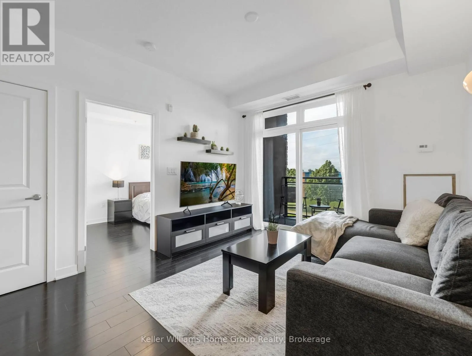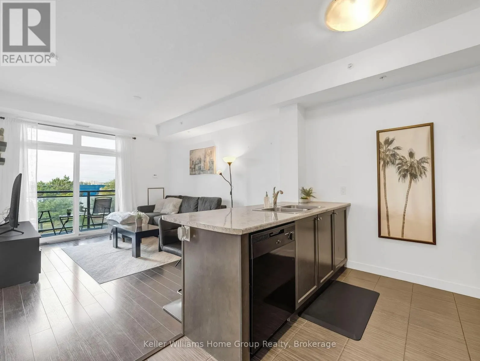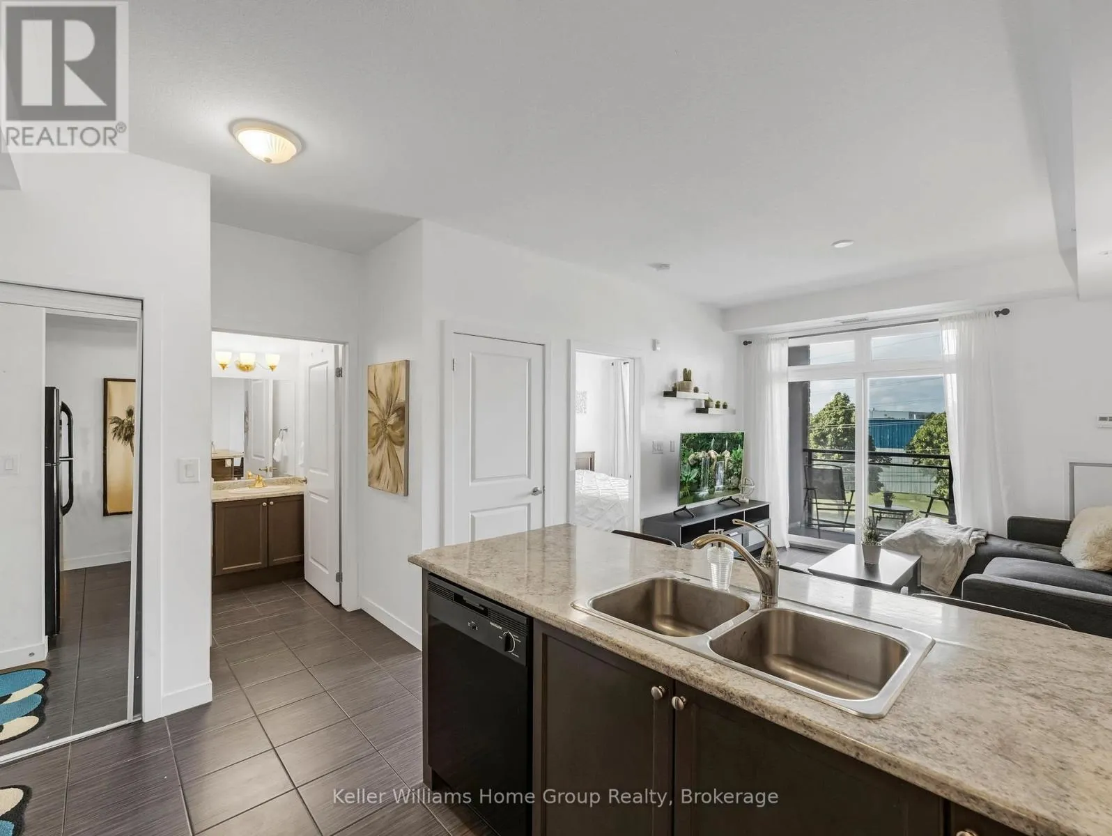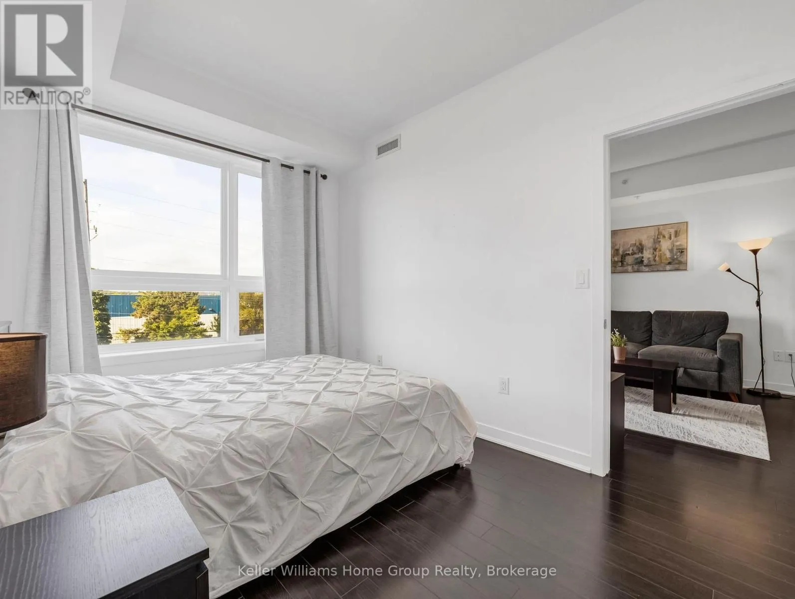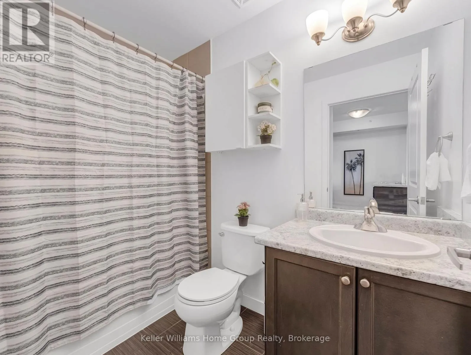 Cross Streets: Appleby and Corporate. ** Directions: Appleby Dr To Corporate. Welcome to Vibe Condos, where modern luxury meets intelligent living. This opportunity to own a well-managed residence is designed for comfort, efficiency, and an unparalleled lifestyle. This property is perfect for first-time buyers seeking a smart entry into the market, those looking to downsize without sacrificing quality, or the astute investor building a strong portfolio. Step into a bright, West-facing sanctuary that greets you with 9' ceilings and beautiful upgraded flooring that flows throughout. The open-concept layout is perfect for both entertaining and everyday living. Unwind in the living area, where a glass door leads to your private balcony, the ideal perch to enjoy morning coffees and sunsets. The kitchen is both stylish and functional, featuring a sleek breakfast bar for casual dining, a contemporary updated backsplash, and reliable appliances. Retreat to the spacious and bright bedroom, a peaceful haven offering ample space for rest and relaxation. The elegant four-piece bathroom is appointed with timeless finishes, and the ultimate convenience is delivered with in-suite laundry. This home is powered by a cutting-edge geothermal heating and cooling system, a premium feature that ensures year-round comfort and sustainable condo fees. The condo fees also cover heat, water and parking, presenting incredible value. This investment includes one underground parking space and one storage locker, both steps from the elevator. Indulge in a host of premium building amenities without leaving home. There is a spacious gym, party room for hosting gatherings, a stunning rooftop terrace with panoramic views, and ample visitor parking. Experience the ultimate in convenience with an unbeatable location. You are just minutes from a myriad of boutiques, cafes, and restaurants, easy access to public transit for a seamless commute, grocery stores for all your essentials, and quick access to the QEW and Highway 407, putting the entire Greater Toronto Area within reach. (id:27476)