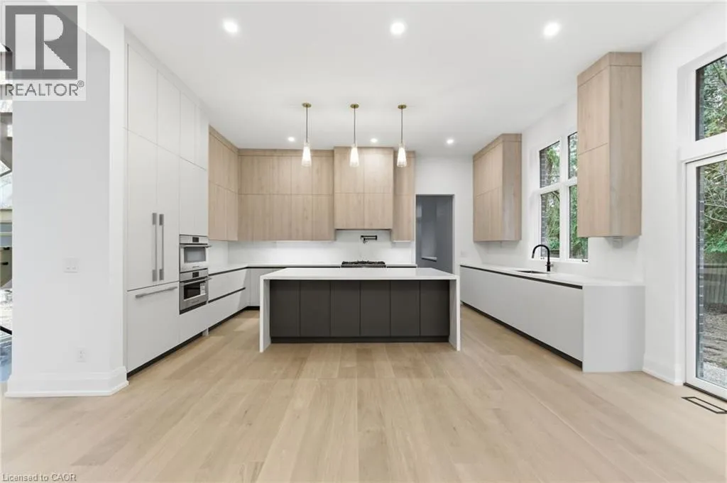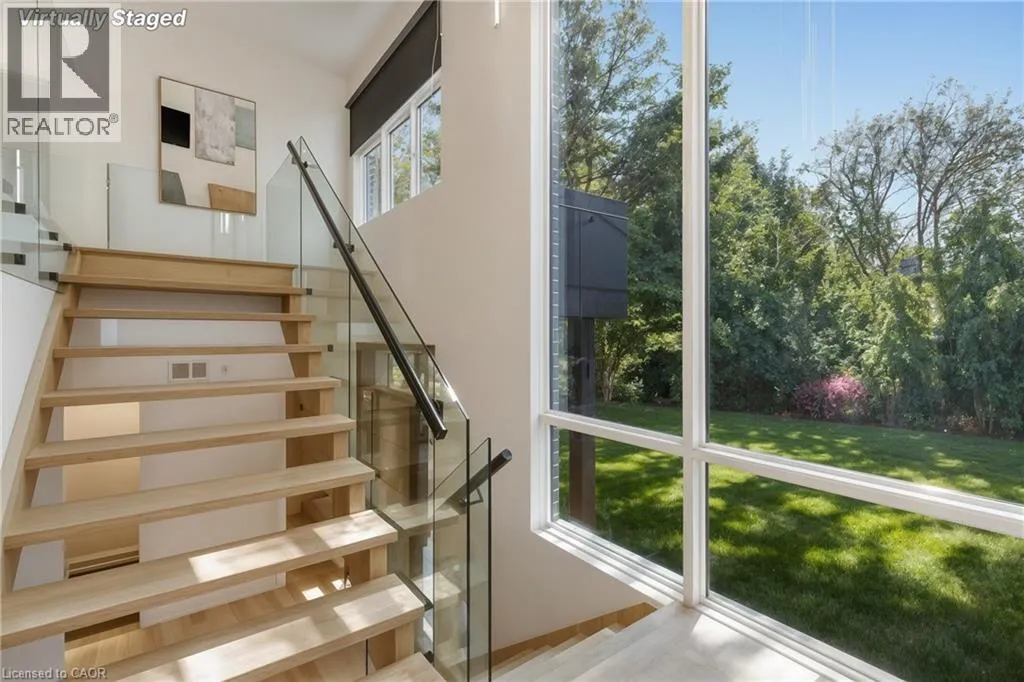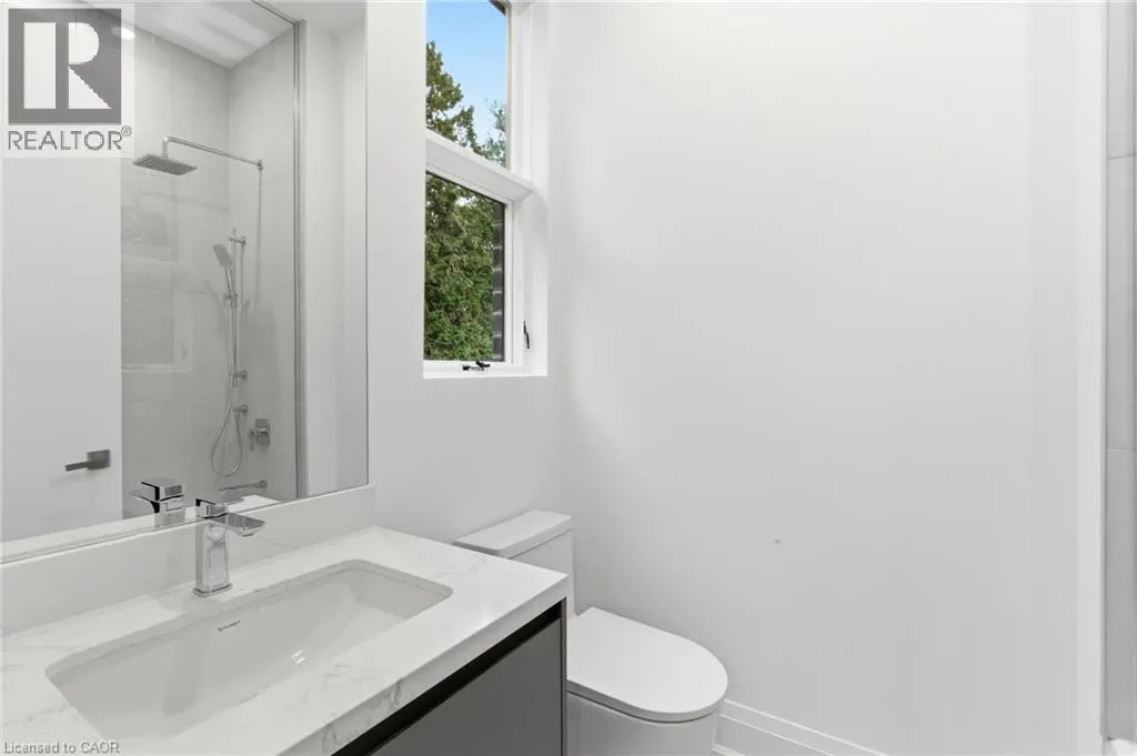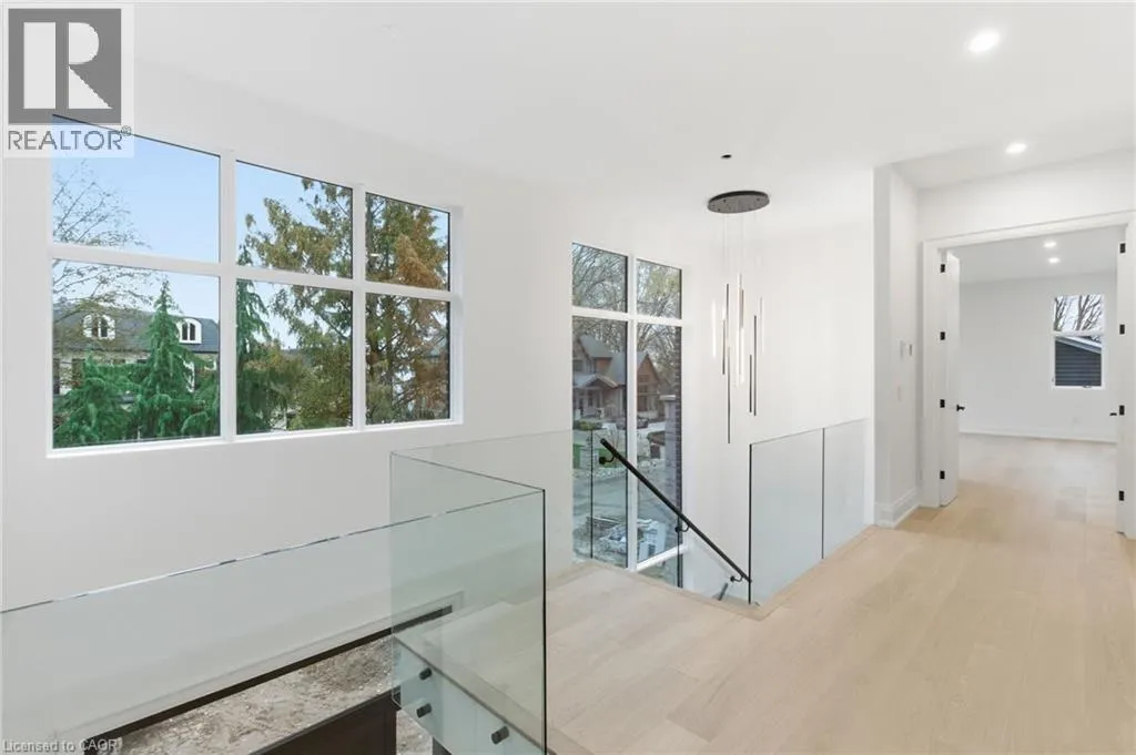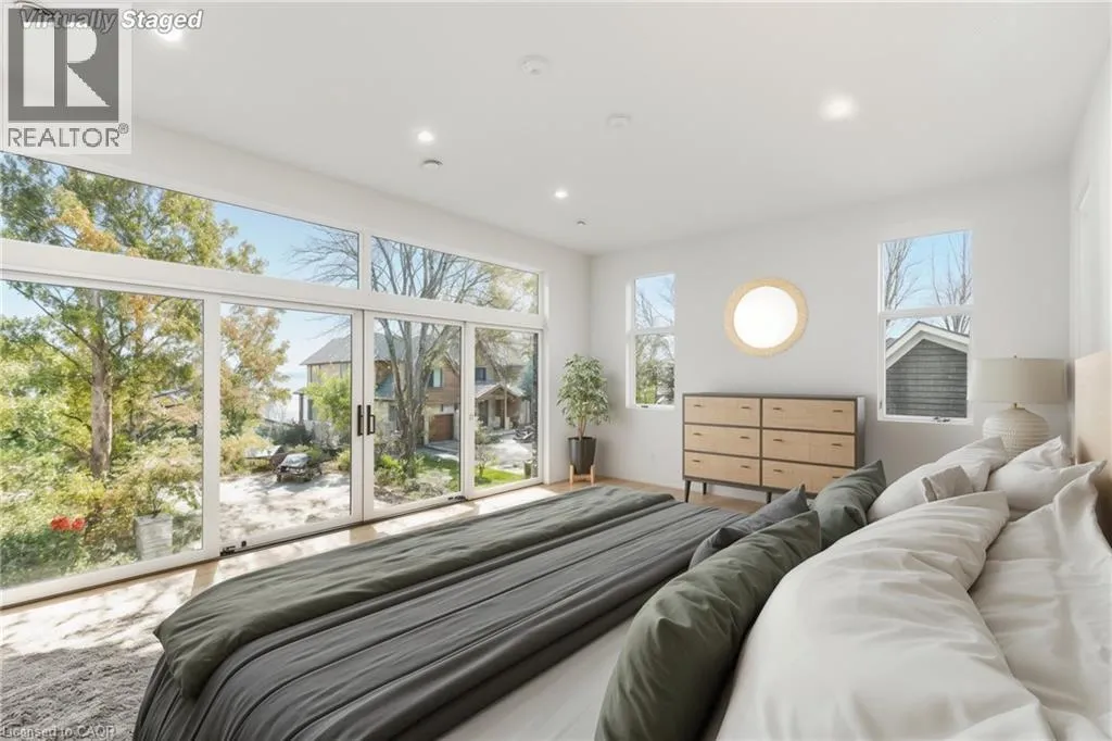 Lakeshore Drive, south on Secord Lane Introducing an exceptional luxury residence steps from Lake Ontario at 135 Secord Lane. This newly built 2,950 sq. ft. modern home sits at the end of a private laneway south of Lakeshore Road, offering exclusive water access. A sleek exterior, expansive windows, and a soaring open-to-below foyer set the tone for the light-filled interior. The main level features an elegant open-concept layout with a designer kitchen, waterfall island, gas range with pot filler, built-in ovens, and full-height cabinetry, with double walkouts to a covered stone patio. A corner bedroom/office and stylish pantry & laundry complete the level. Upstairs, the resort-inspired primary suite boasts lake views, a custom walk-in, makeup vanity, and spa-calibre ensuite, plus three additional bedrooms with walk-ins and ensuite or shared baths. Surrounded by mature trees and near Paletta Park, this home defines Burlington luxury. (id:27476)