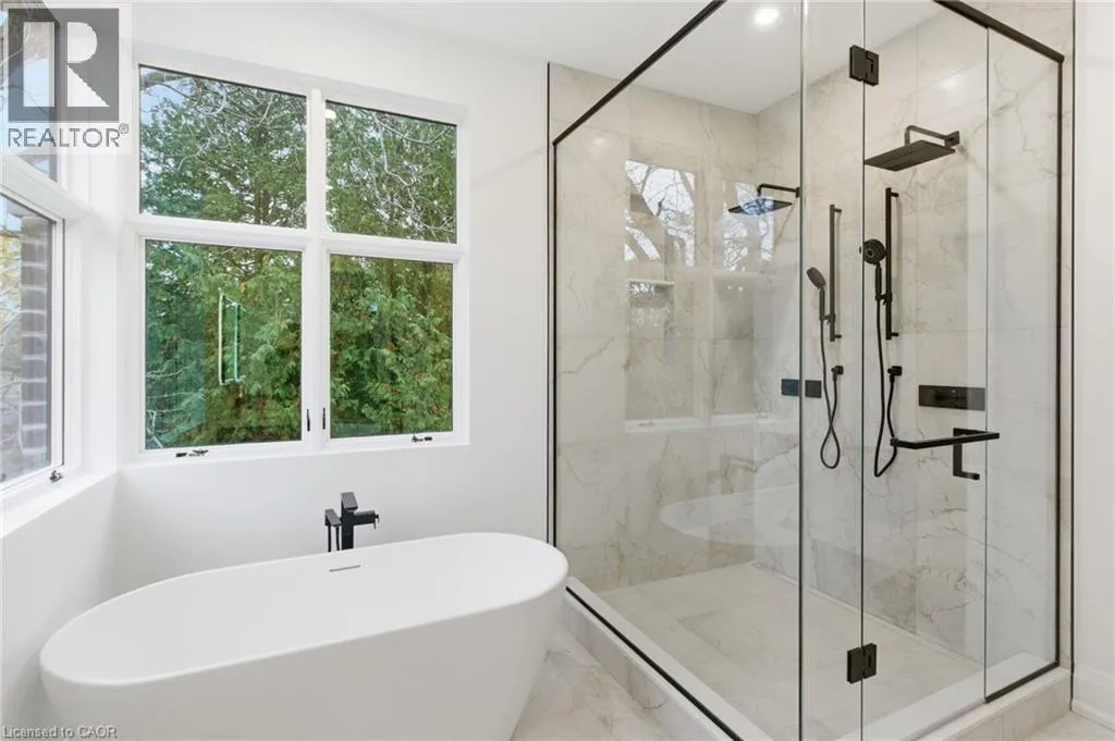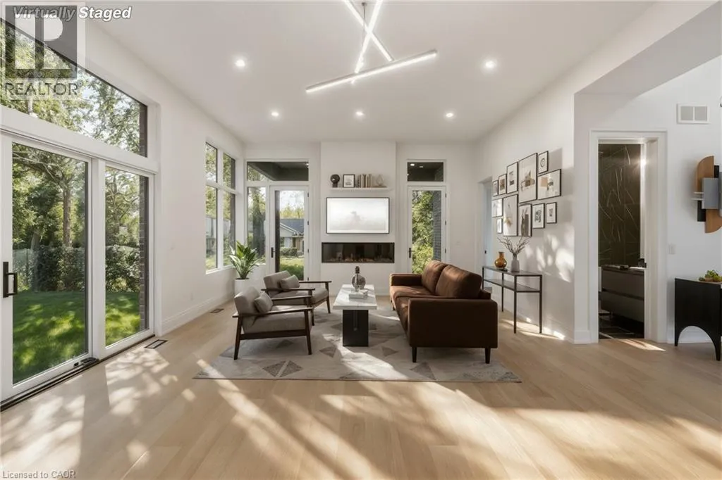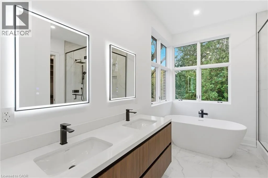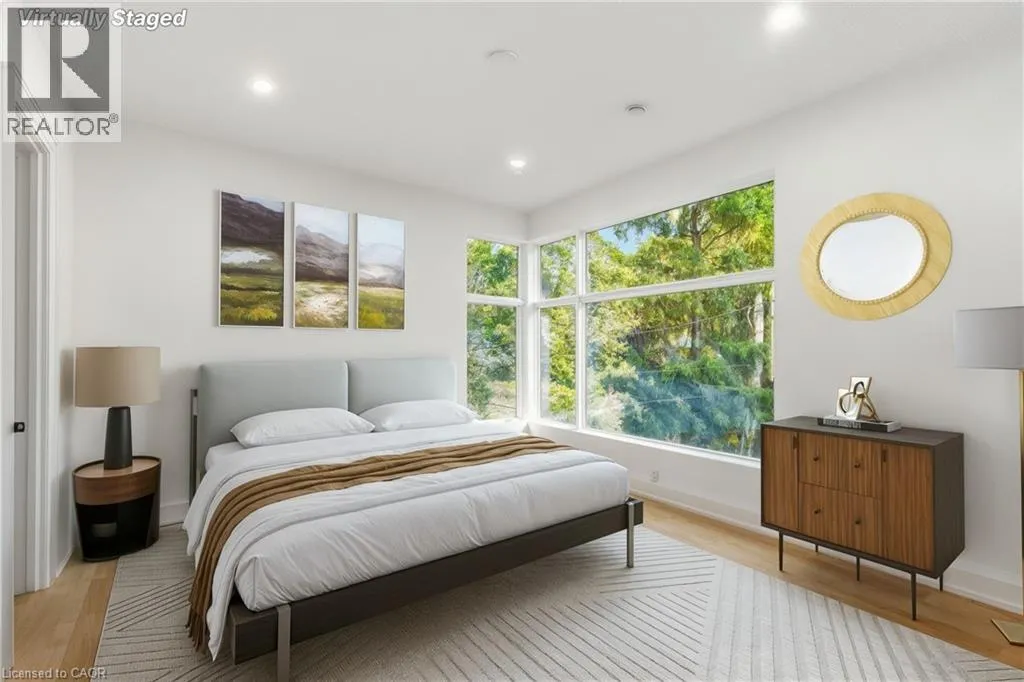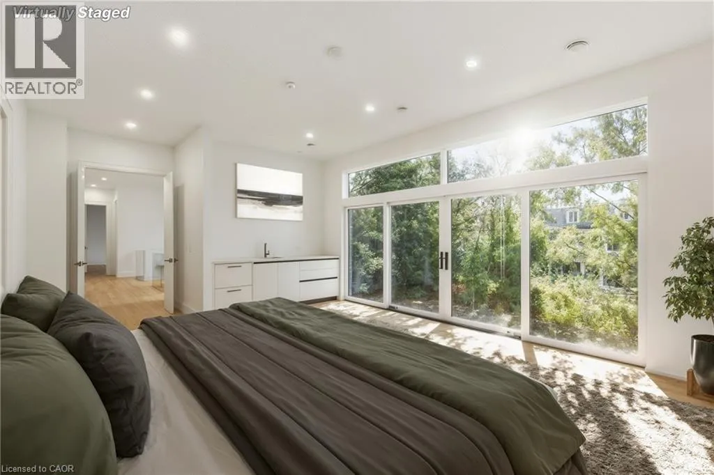 Lakeshore Drive, south on Secord Lane Introducing an exceptional luxury residence steps from Lake Ontario at 135 Secord Lane. This newly built 2,950 sq. ft. modern home sits at the end of a private laneway south of Lakeshore Road, offering exclusive water access. A sleek exterior, expansive windows, and a soaring open-to-below foyer set the tone for the light-filled interior. The main level features an elegant open-concept layout with a designer kitchen, waterfall island, gas range with pot filler, built-in ovens, and full-height cabinetry, with double walkouts to a covered stone patio. A corner bedroom/office and stylish pantry & laundry complete the level. Upstairs, the resort-inspired primary suite boasts lake views, a custom walk-in, makeup vanity, and spa-calibre ensuite, plus three additional bedrooms with walk-ins and ensuite or shared baths. Surrounded by mature trees and near Paletta Park, this home defines Burlington luxury. (id:27476)
