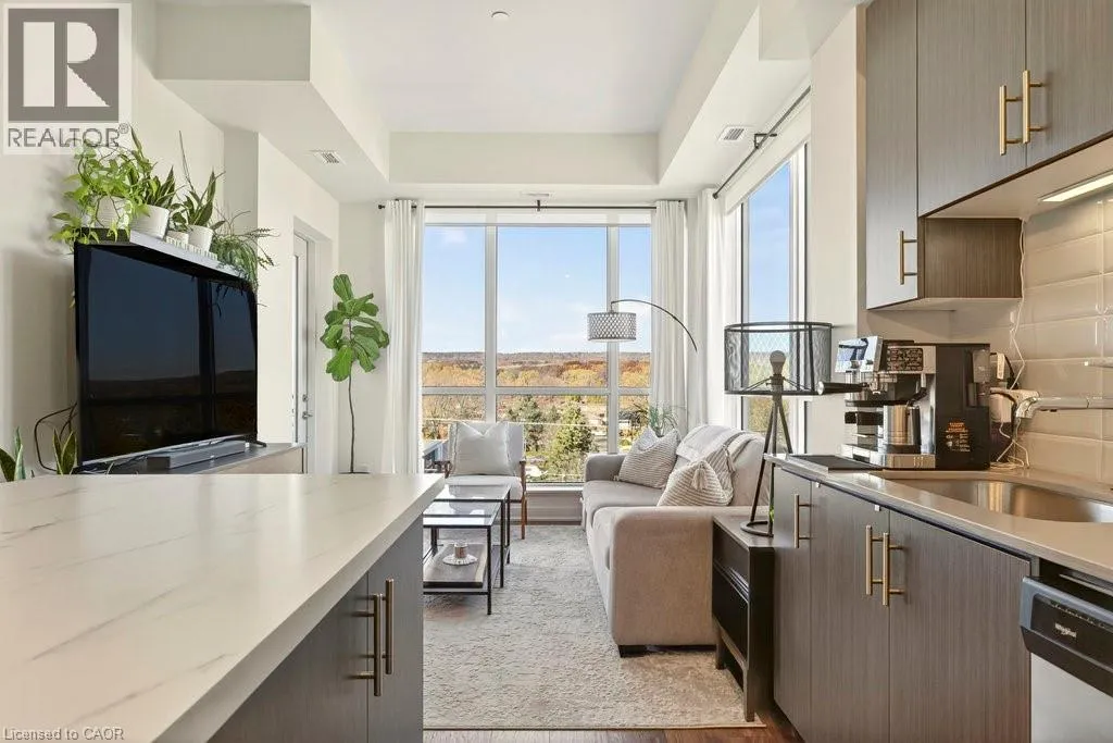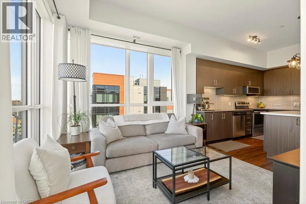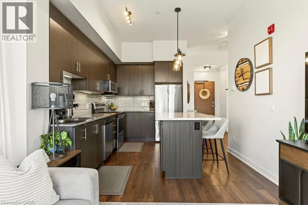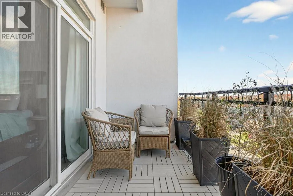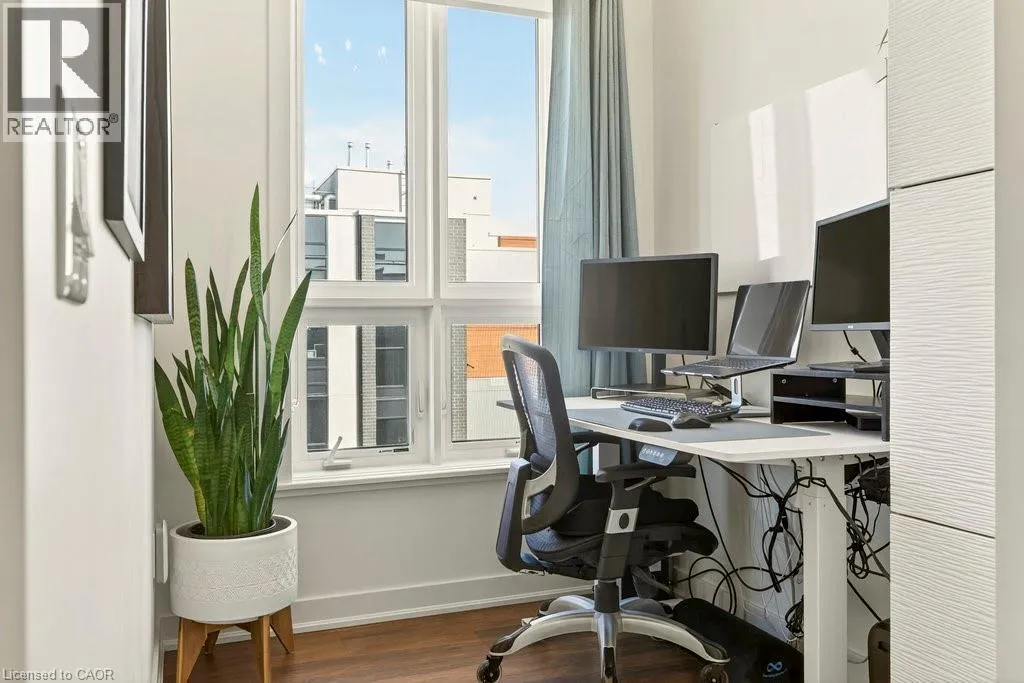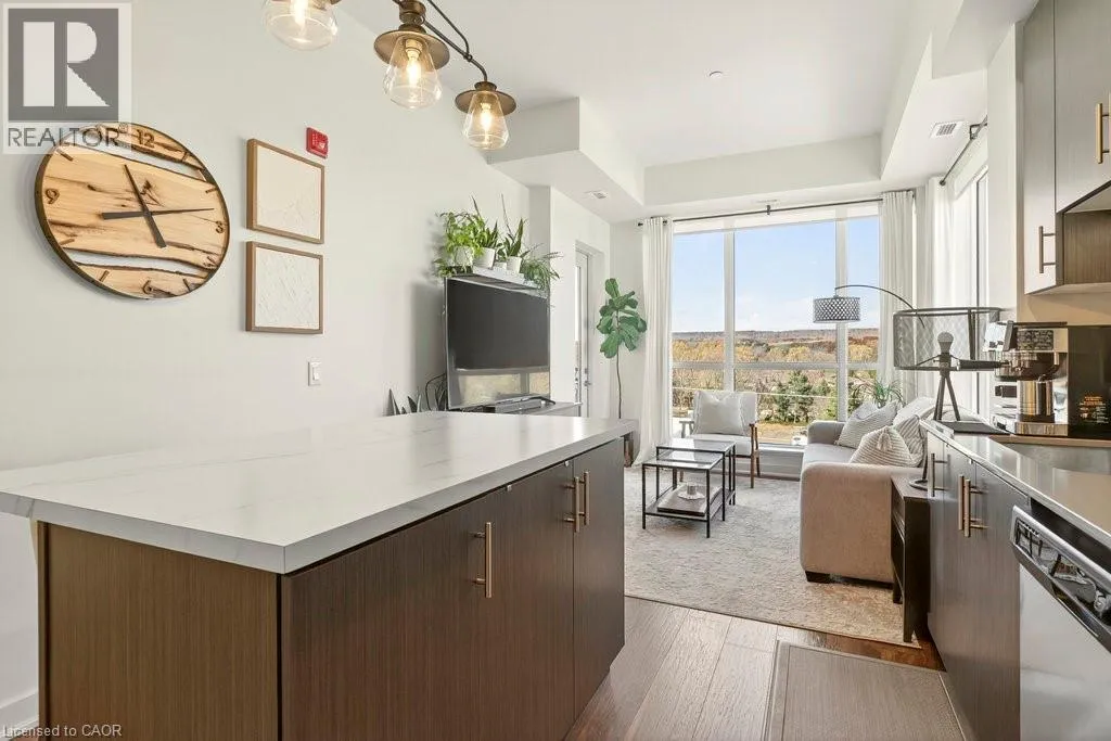 Plains Road E/Filmandale Road Unique opportunity to own a gorgeous one bedroom + den top floor corner suite at sought-after Affinity in Aldershot! Floor to ceiling windows with stunning views of the escarpment and beyond! Upgraded kitchen with stainless steel appliances, quartz countertop, island, subway tile backsplash and under-cabinet lighting. Open and extremely bright living space with 10' ceilings, upgraded wide plank flooring, upgraded lighting, in-suite laundry, 3-piece bathroom, walkout to a private balcony and a cozy den perfect for a home office. The spacious bedroom features a second walkout to the balcony and a large closet with built-ins and motion sensor lighting. Just steps to the GO station, RBG, marina, library, schools and Burlington Golf & Country Club. One underground parking space and one storage locker on unit level. Building amenities include an electric car charging station, rooftop terrace with BBQs, gym, yoga room, party room and loads of visitor parking! (id:27476)