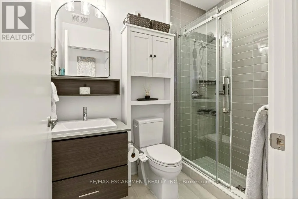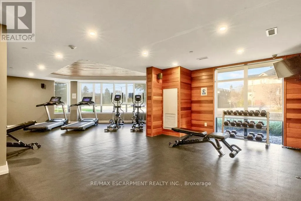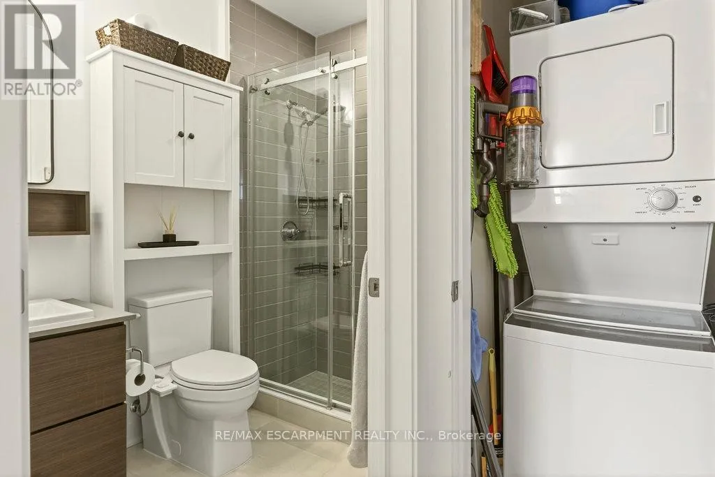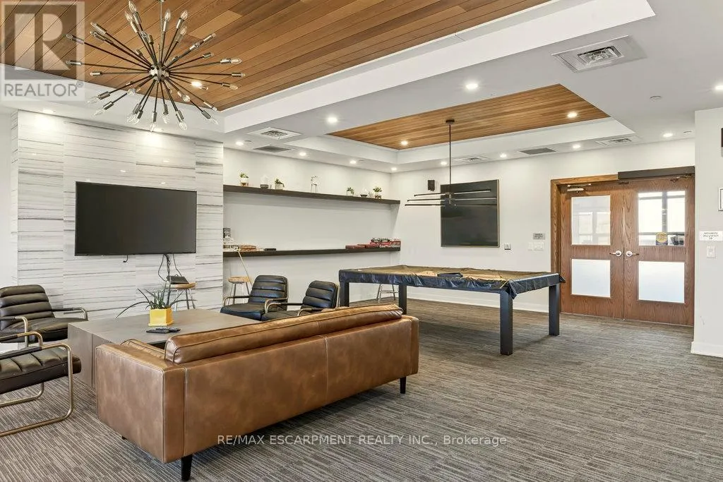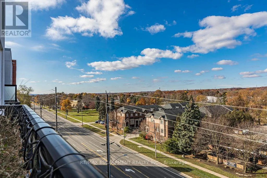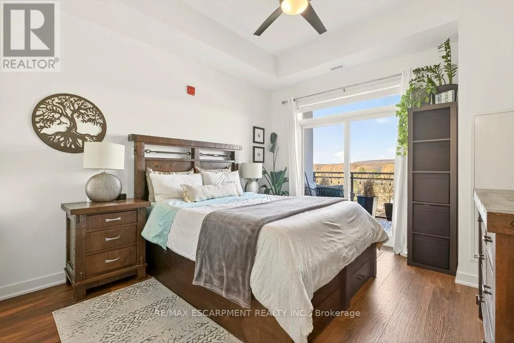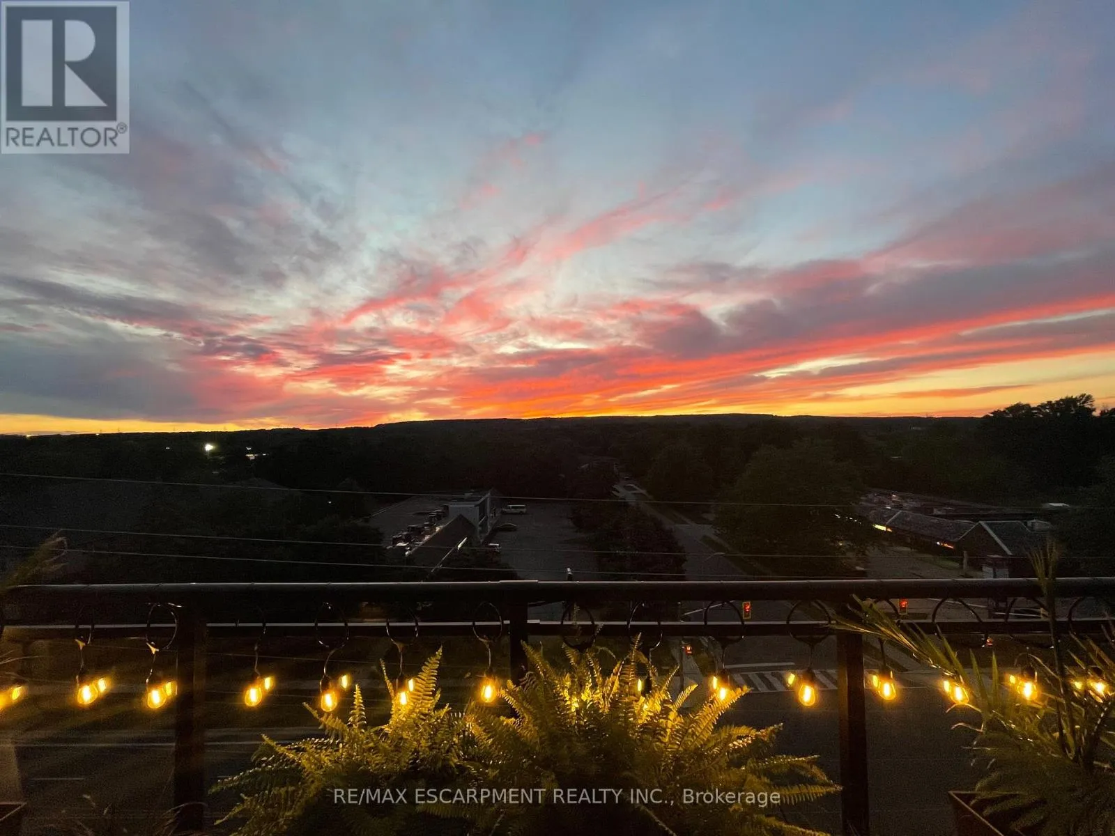 Cross Streets: Filmandale Road. ** Directions: Plains Road E/Filmandale Road. Unique opportunity to own a gorgeous one bedroom + den top floor corner suite at sought-after Affinity in Aldershot! Floor to ceiling windows with stunning views of the escarpment and beyond! Upgraded kitchen with stainless steel appliances, quartz countertop, island, subway tile backsplash and under-cabinet lighting. Open and extremely bright living space with 10' ceilings, upgraded wide plank flooring, upgraded lighting, in-suite laundry, 3-piece bathroom, walkout to a private balcony and a cozy den perfect for a home office. The spacious bedroom features a second walkout to the balcony and a large closet with built-ins and motion sensor lighting. Just steps to the GO station, RBG, marina, library, schools and Burlington Golf & Country Club. One underground parking space and one storage locker on unit level. Building amenities include an electric car charging station, rooftop terrace with BBQs, gym, yoga room, party room and loads of visitor parking! (id:27476)
