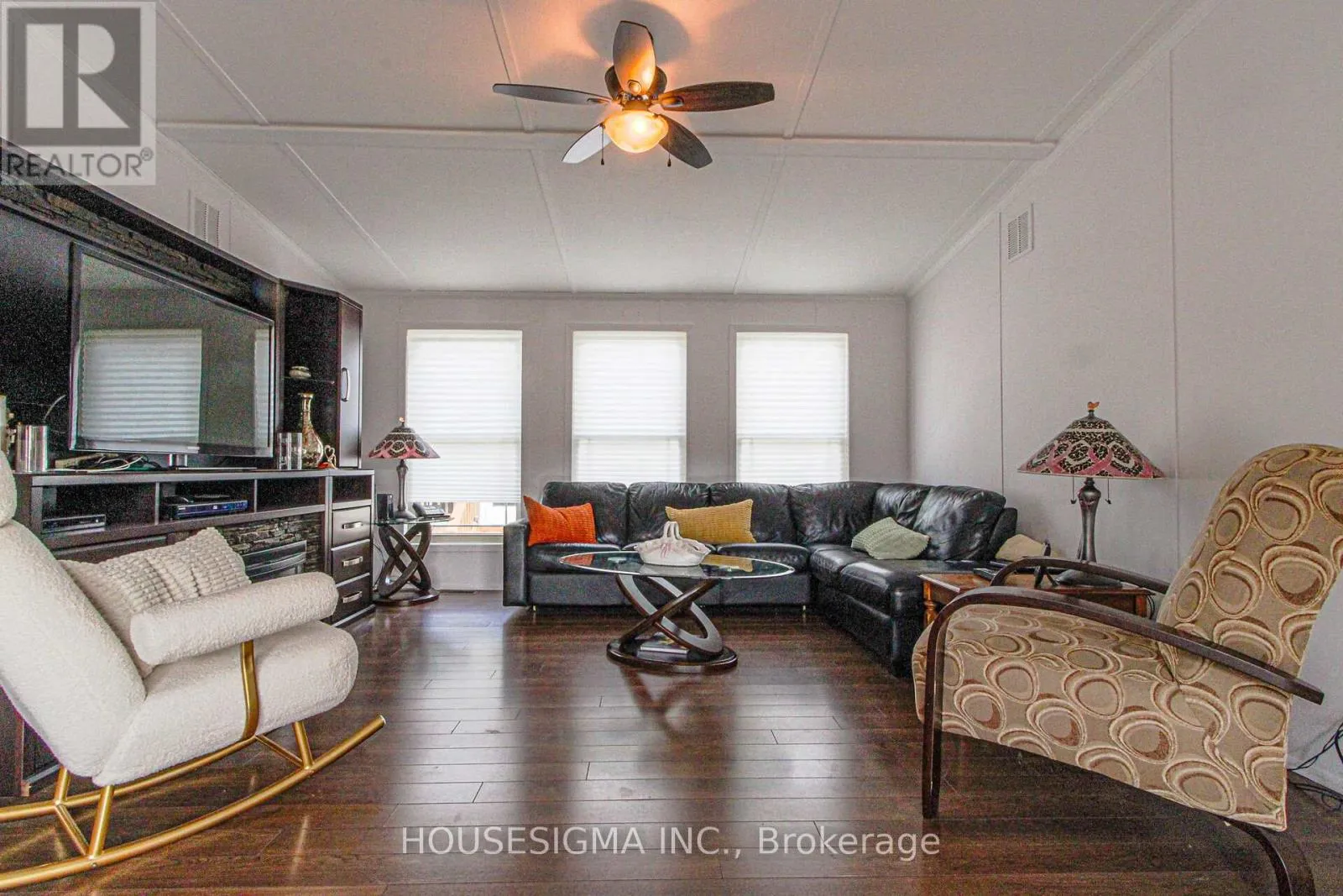 Cross Streets: Milburough Line & 6th Concession. ** Directions: britannia to Milburough, go south into forest past 6th concession. Welcome to Lost Forest! Discover a low maintenance lifestyle in this stunning custom designed 2 bedroom, 2-bath modular home with cathedral ceilings and stunning family sized kitchen with warm decor and a flowing layout. Located in a desirable gated community and built just 12 years ago, it offers 1,046 square feet of bright, open-concept living space. This home combines modern comfort with a welcoming design in a gorgeous setting that far exceeds other types of ownership at an affordable price. The spacious kitchen features plenty of cabinetry including pull out drawers in the pantry, a large dining area is open to a cozy living room complete with an entertainment wall unit with electric fireplace. Enjoy your morning coffee or relax at sunset on the large deck with 3 access doors to the your home including sliding doors that lets the natural light brighten your home. There is ample storage within plus a handy oversized garden shed to utilize as well. Additional highlights include a B/I desk in the 2nd bedroom, tall toilets, solid wood doors, a generator and parking for 2 vehicles on a concrete pad. Lost Forest Park residents enjoy outstanding amenities including an inground pool, community centre/pavilion, pickle ball court, an area to enjoy horse shoes, a play area for the kids and walking trails. The low monthly fee ($550) conveniently covers the land lease, water, septic, property taxes and year-round maintenance. Located just minutes from shopping in Burlington, Waterdown and nearby Carlisle, dining, golf courses and major highways. This is the perfect blend of comfort, convenience and community that any one would thrive in. Make the move today and start living the lifestyle you deserve! (id:27476)