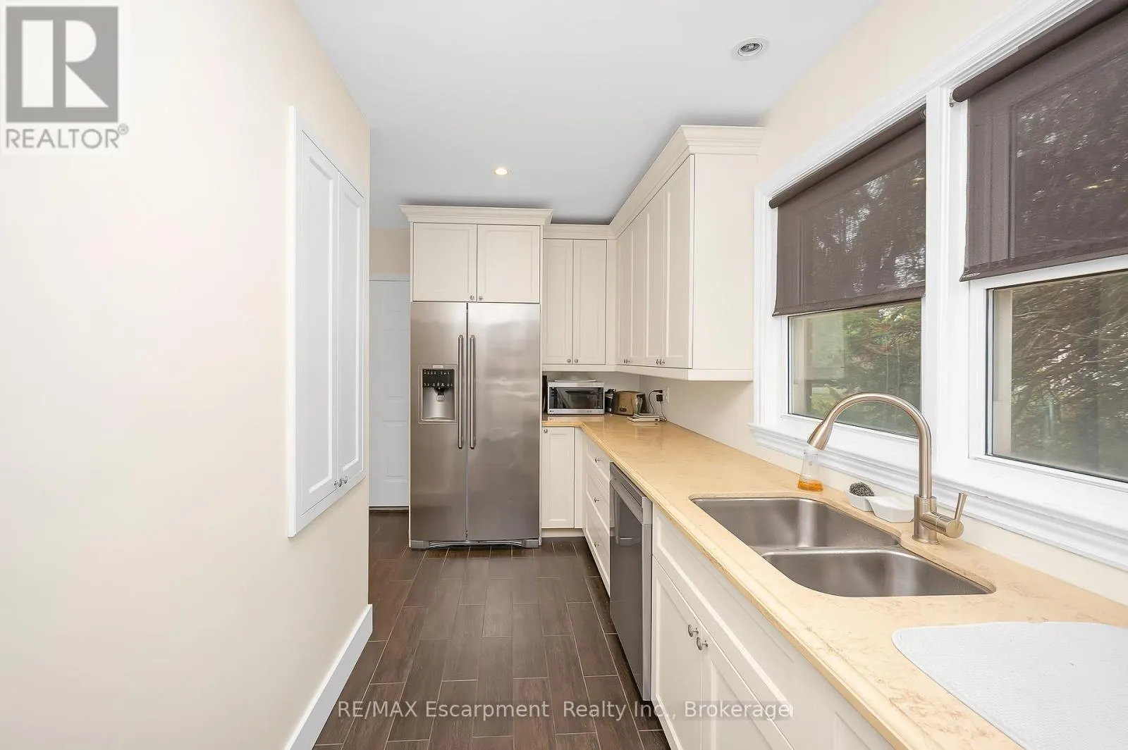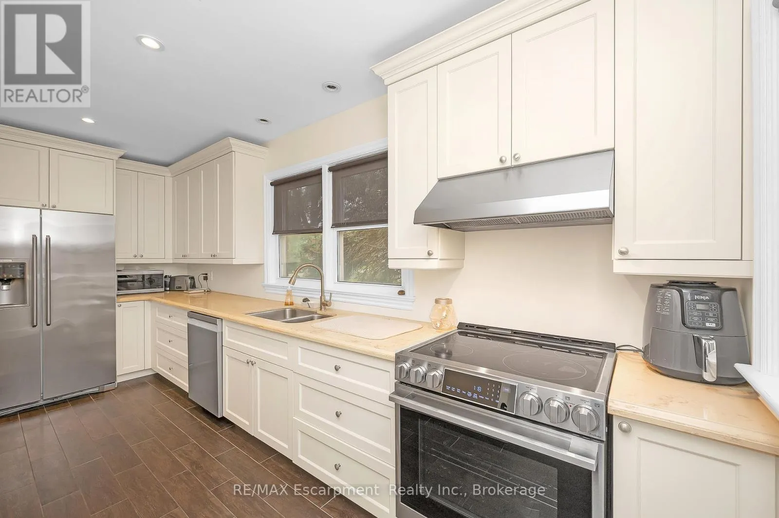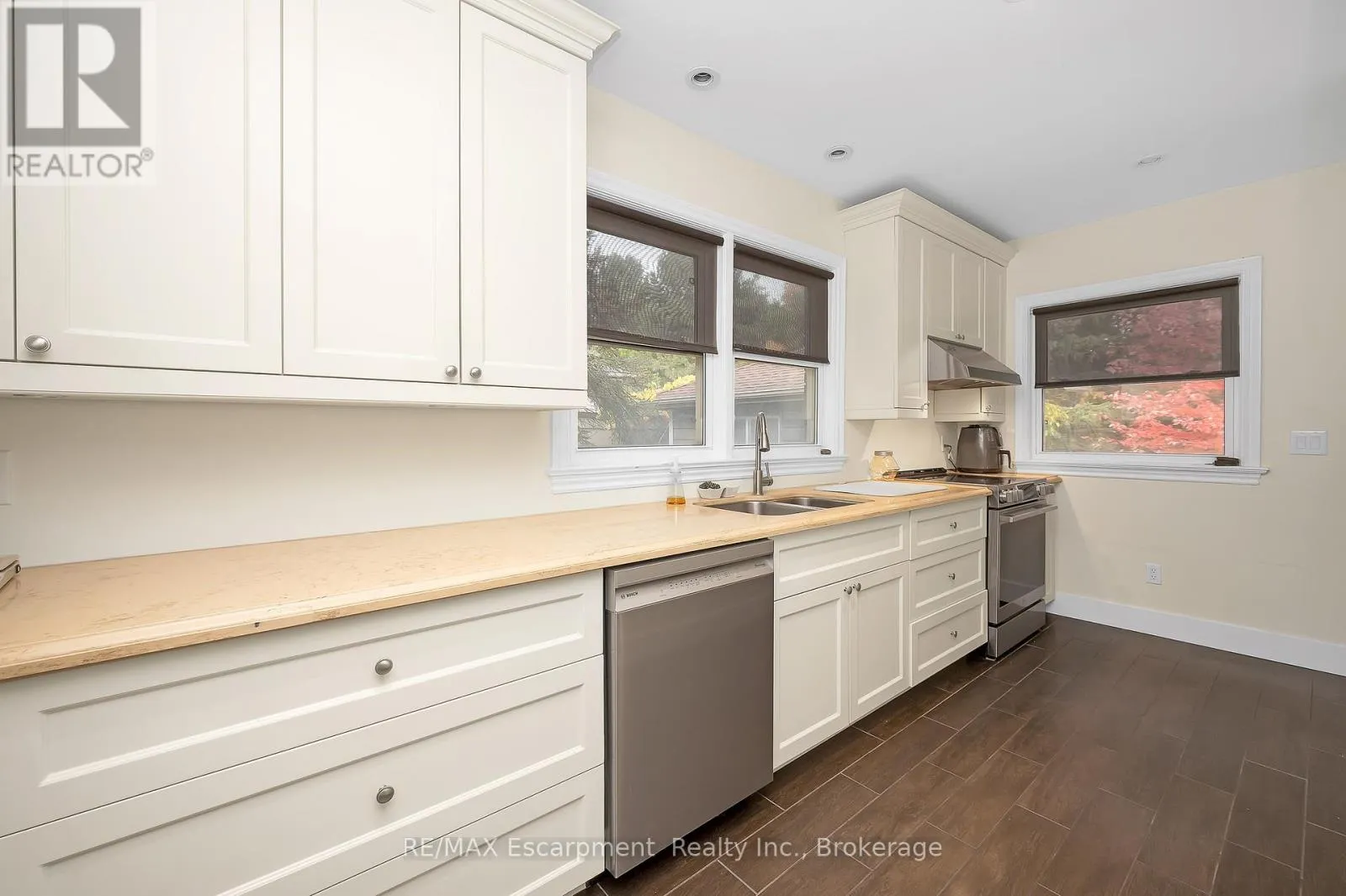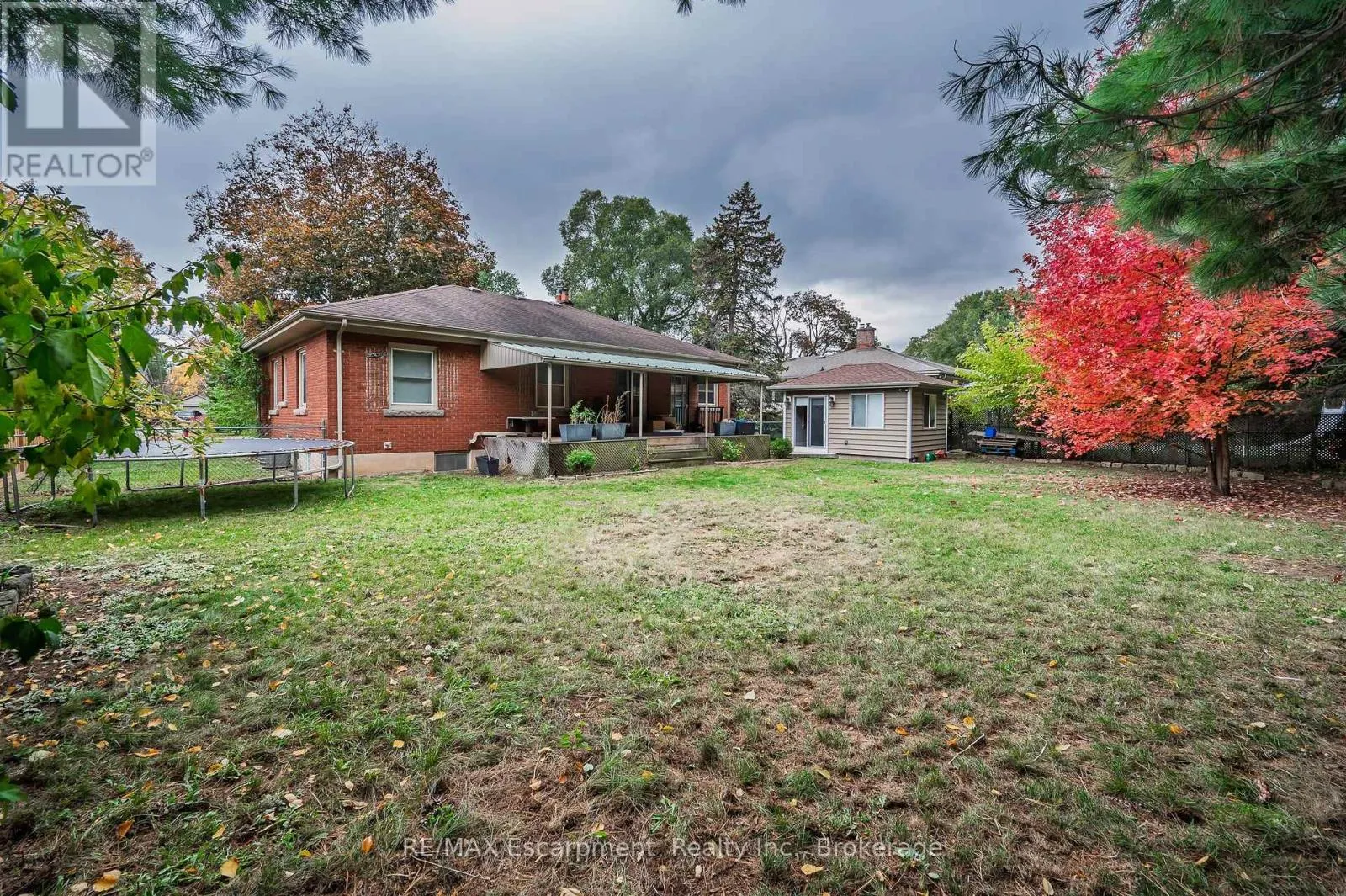 Cross Streets: Francis Rd & Glen View Ave. ** Directions: Plains Rd & Francis Rd. Step into a home brimming with potential in the sought-after South Aldershot community. Filled with natural light and solid, timeless bones, this property offers a rare opportunity to reimagine a classic residence on a 75 x 135 ft lot framed by mature trees and ravine views. The welcoming front porch sets the tone with charming red brick, white trim, and wood-plank flooring. Inside, the main floor features a practical, light-filled layout. The living room anchors the space with its generous proportions, original character, and classic brick fireplace-large windows brighten the room throughout the day. Adjacent to the kitchen, the dining area offers easy flow for everyday living and entertaining. Expansive windows and glass doors connect to the backyard, showcasing the lot's depth and privacy. The kitchen blends charm and function with cream cabinetry, warm wood accents, stainless steel appliances, and abundant natural light. The bedrooms are bright and comfortable with hardwood floors, neutral finishes, and practical layouts suited to any style. The main bathroom features a clean, updated aesthetic with a four-piece layout and ensuite privilege from the primary bedroom. A standout feature is the detached studio-an adaptable space ideal for a home office, creative studio, gym, or hobby room. With durable flooring, neutral finishes, and an as-is heating/cooling system, it expands your possibilities. The open, unfinished basement offers a generous footprint for future customization. With concrete floors, exposed ceiling joists, natural light, and a four-piece bathroom (as-is), it's a solid base for your vision. Outdoors, the backyard is truly special. Backing onto a lush ravine and surrounded by mature trees, it offers privacy and serenity. A covered deck extends the living space outdoors-perfect for quiet mornings or relaxed entertaining. With its level lawn and generous size, the property provides ample room for gardening, play, or future projects. (id:27476)