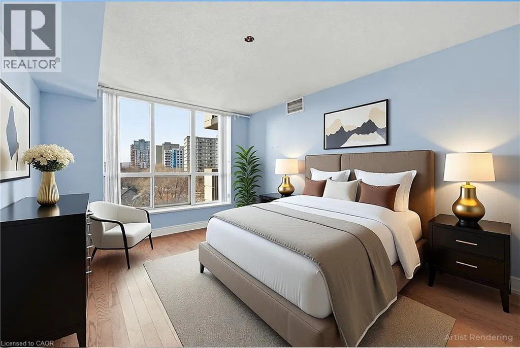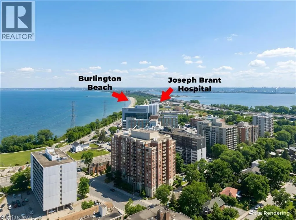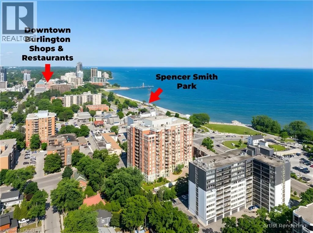 Maple Ave at Northshore Blvd Beautiful 978 square feet two bedroom, two bathroom condo in Spencers Landing. Located across from Spencer Smith Park and the Lake. The second bedroom comes equiped with a hide away Murphy Bed,hardwood floors,five appliances and easy access to the 9.9ft x11.5 balcony.The storage locker is conveniently located steps away from the underground parking space.Amazing ammenities include an indoor pool,sauna,well equiped ground level exercise room,overnight guest suite and party and games room.The front desk concierge provides access and security for the owners and their guests. Immediate possession Call for an appointment to view. (id:27476)